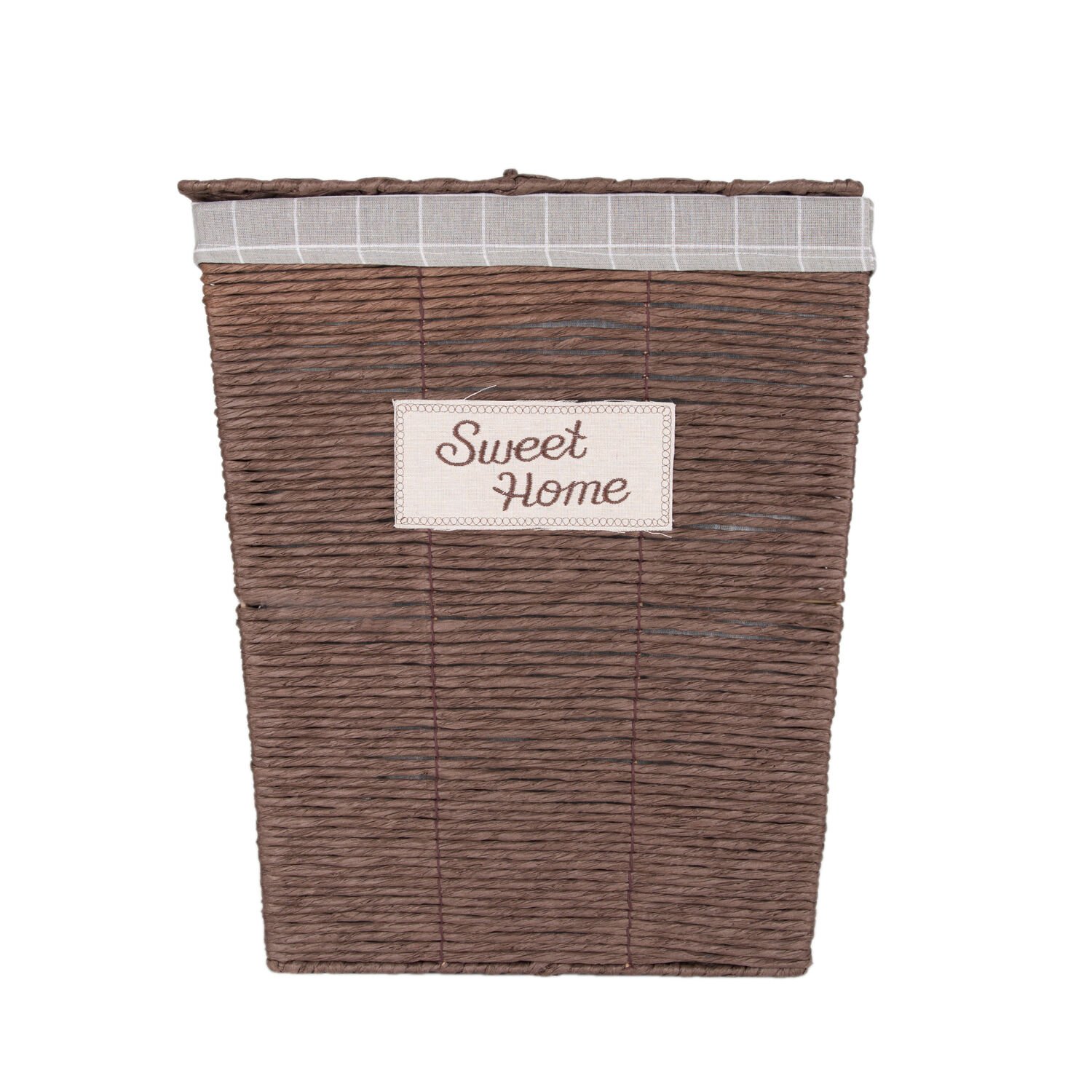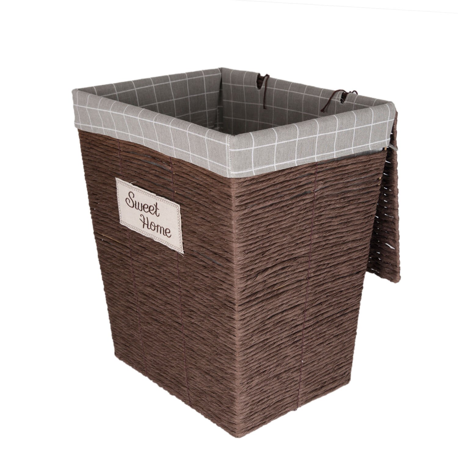 Dekoratif Dikdörtgen Sweethome Kapaklı Hasır Çamaşır Sepeti (Gri Kare Kumaş İçli) Kahverengi 38 X 48 X 30 Cm.