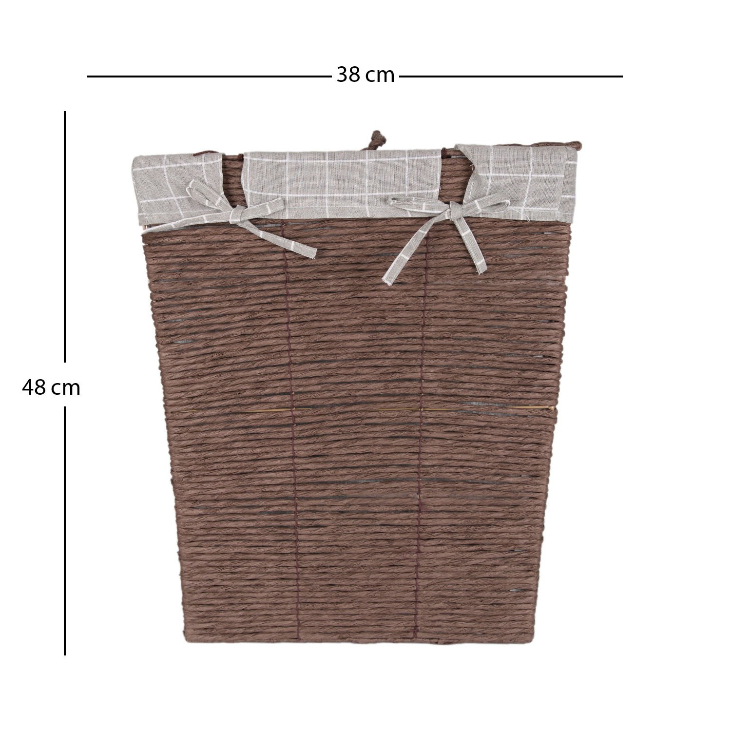 Çamaşır Sepeti, Dikdörtgen, Sweethome, Kapaklı, Hasır, Kahverengi - Gri Kare Kumaş İçli, 38 x 48 x 30 cm
