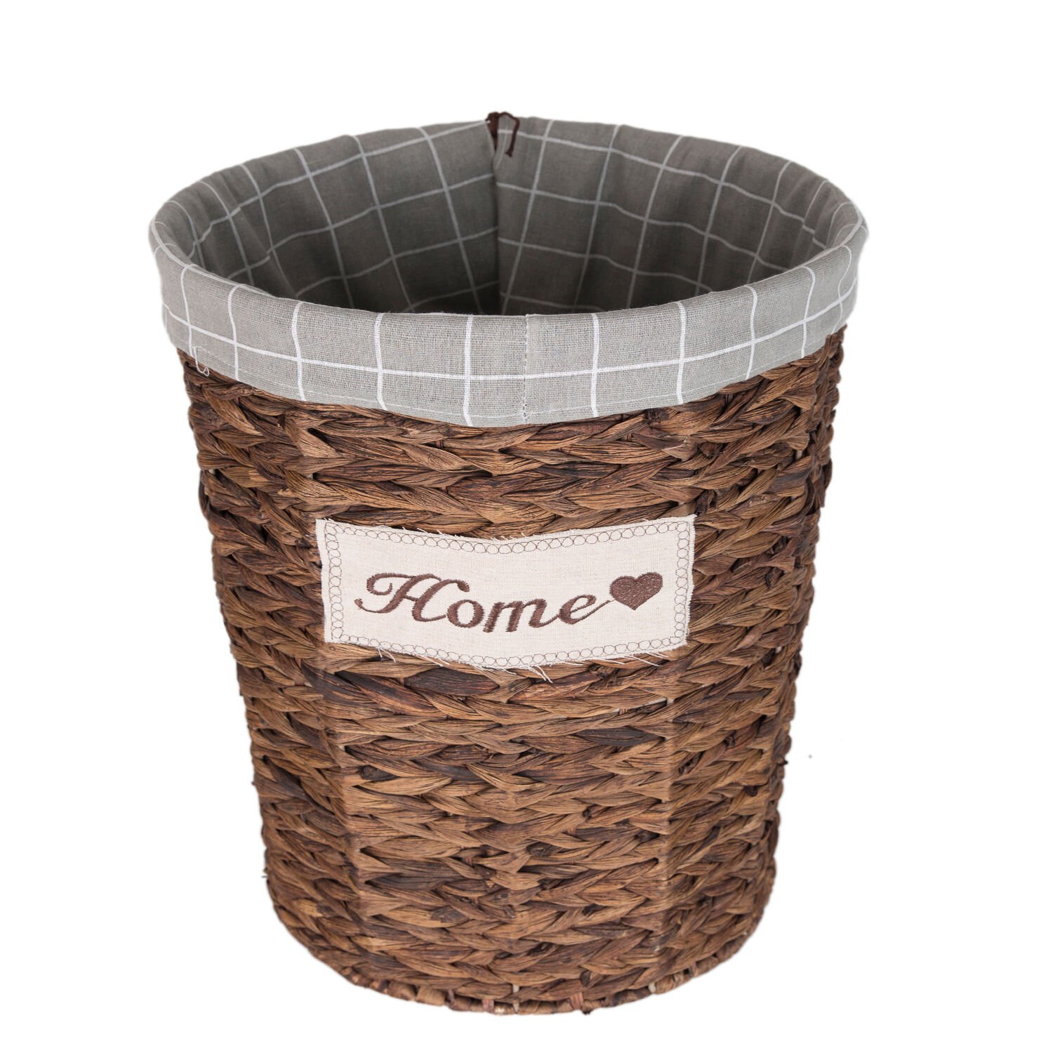 - Bir adet Dekoratif Oval Home Kapaklı Hasır Çamaşır Sepeti (Gri Kare Kumaş İçli)