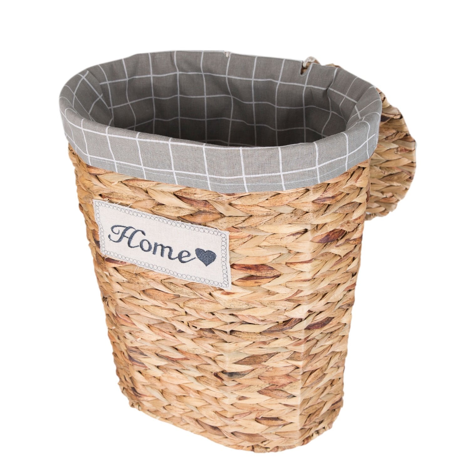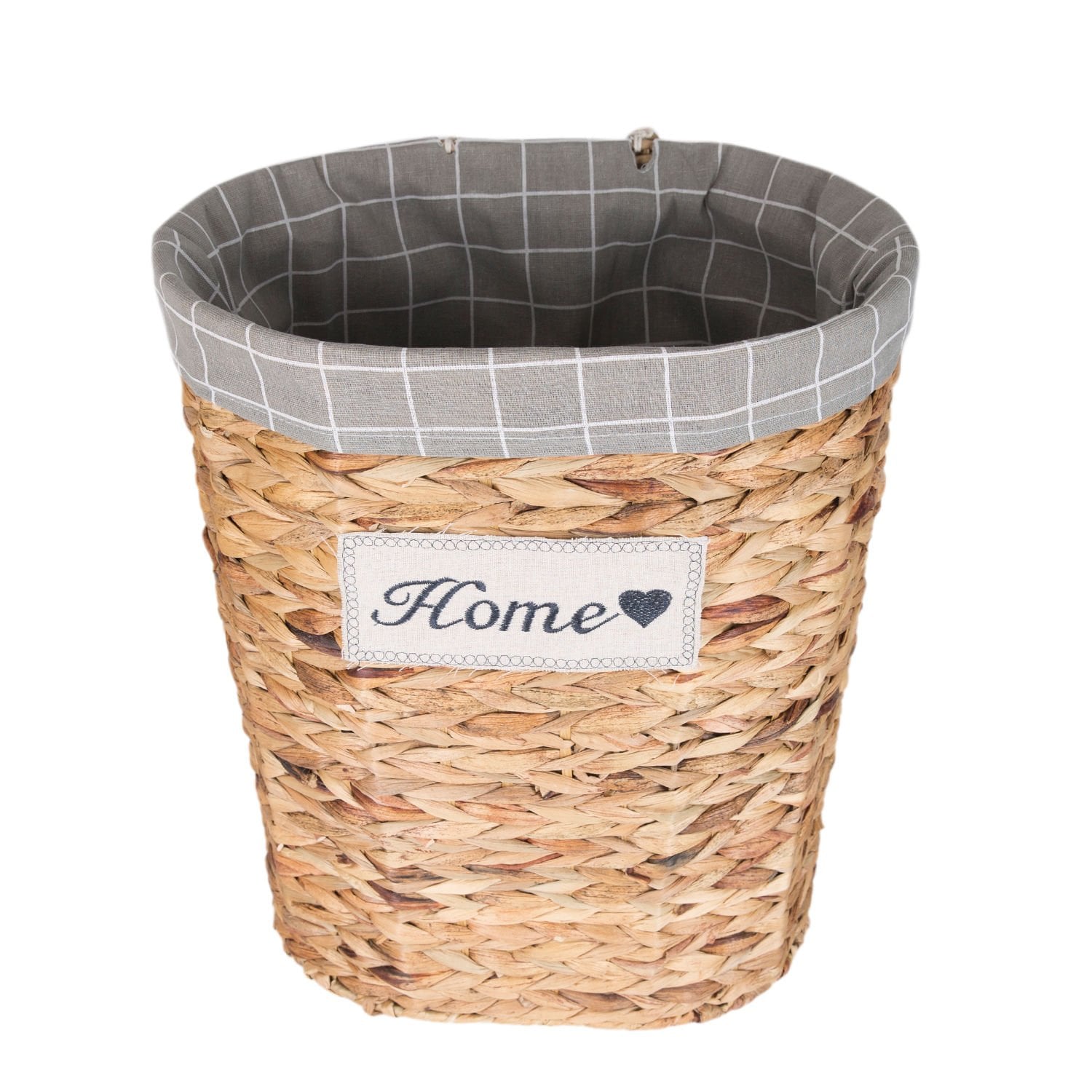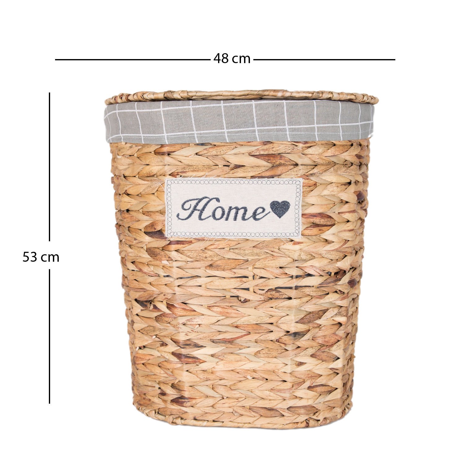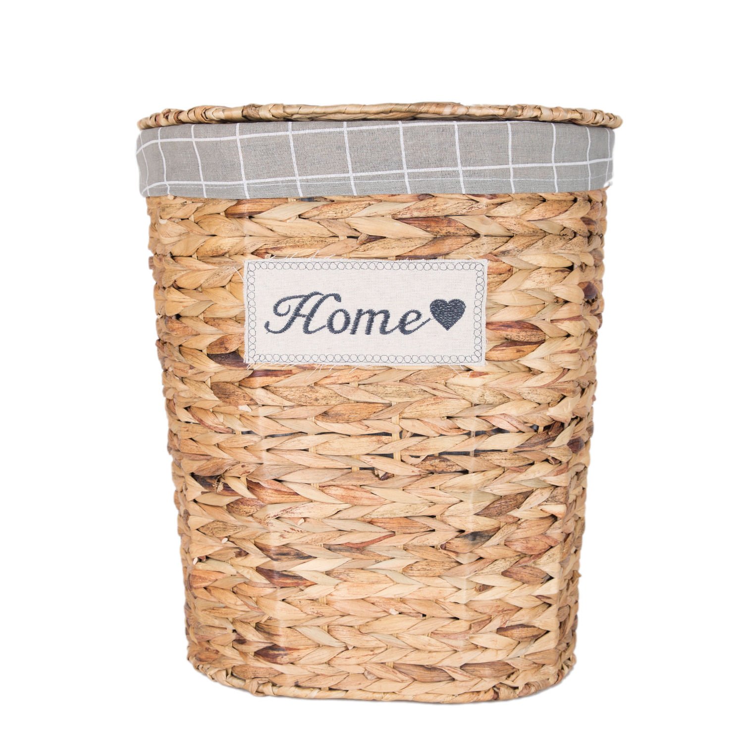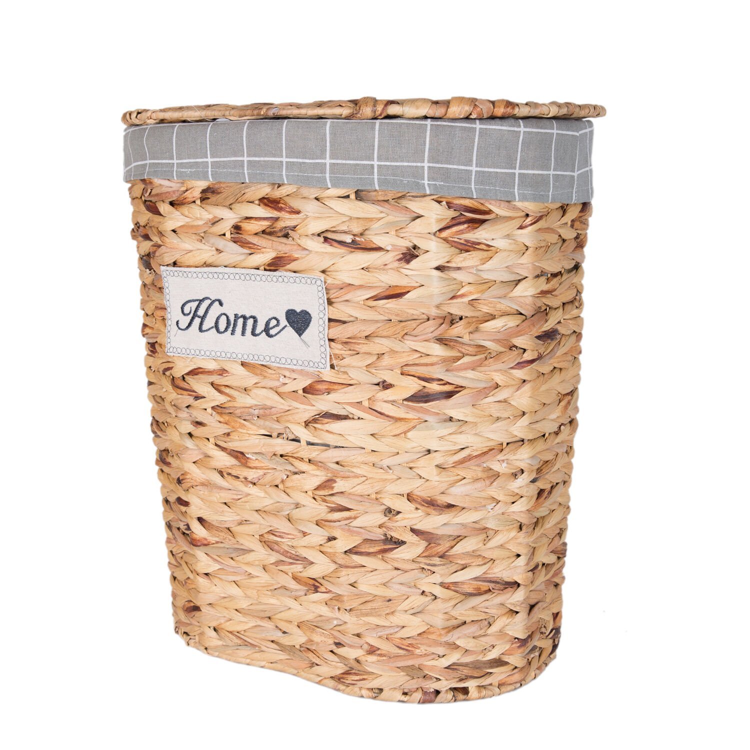 - Bir adet Dekoratif Oval Home Kapaklı Hasır Çamaşır Sepeti (Gri Kare Kumaş İçli)