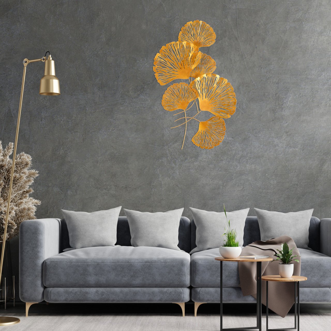 Çiçek Desenli Metal Dore Duvar Panosu 75x100 Cm