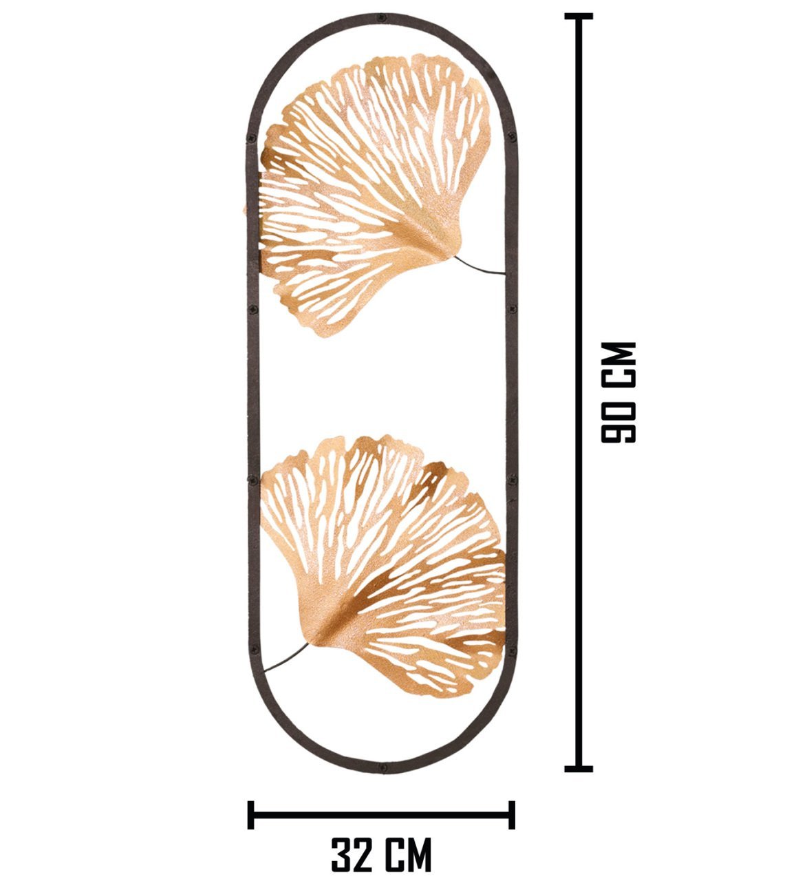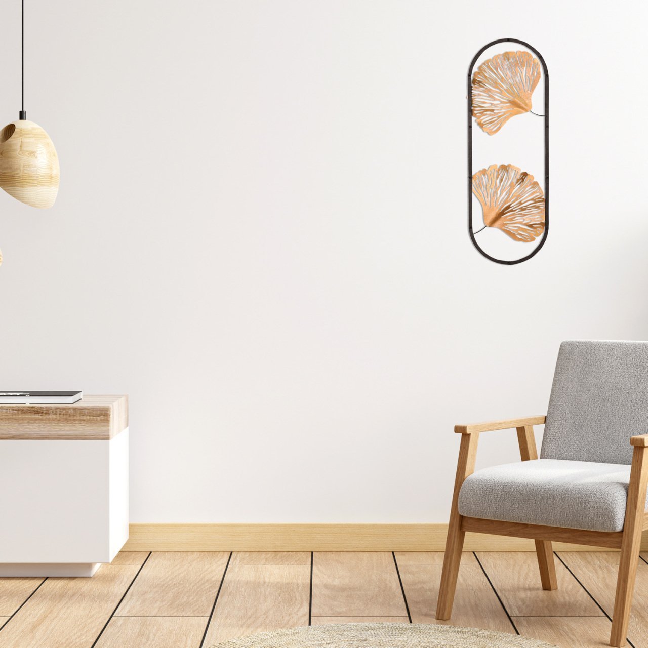 Çiçek Desenli Oval Bakır Rengi Metal Duvar Panosu 32x90 Cm