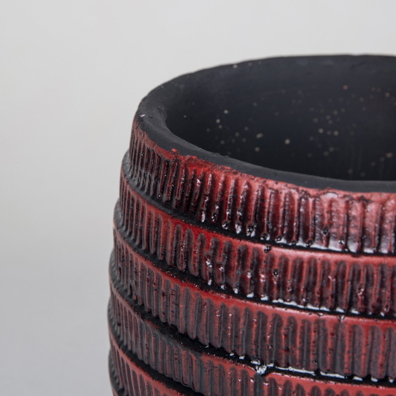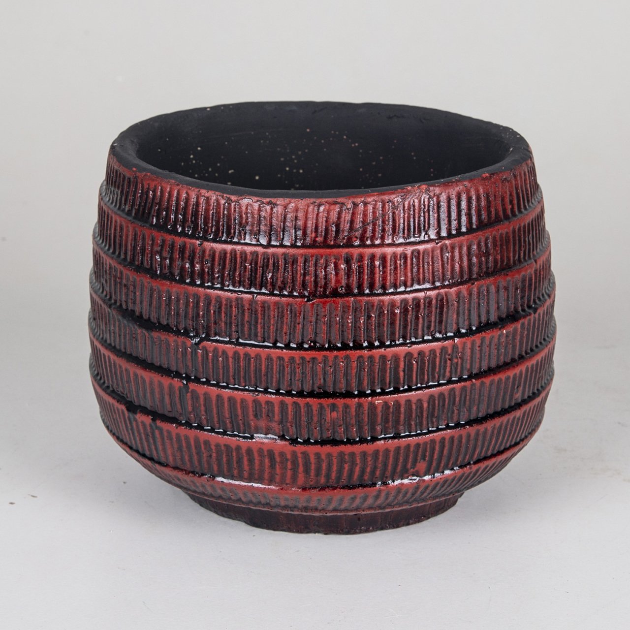 Çizgi Desen Büyük Boy Bordo Siyah Beton Saksı 2,5 Lt