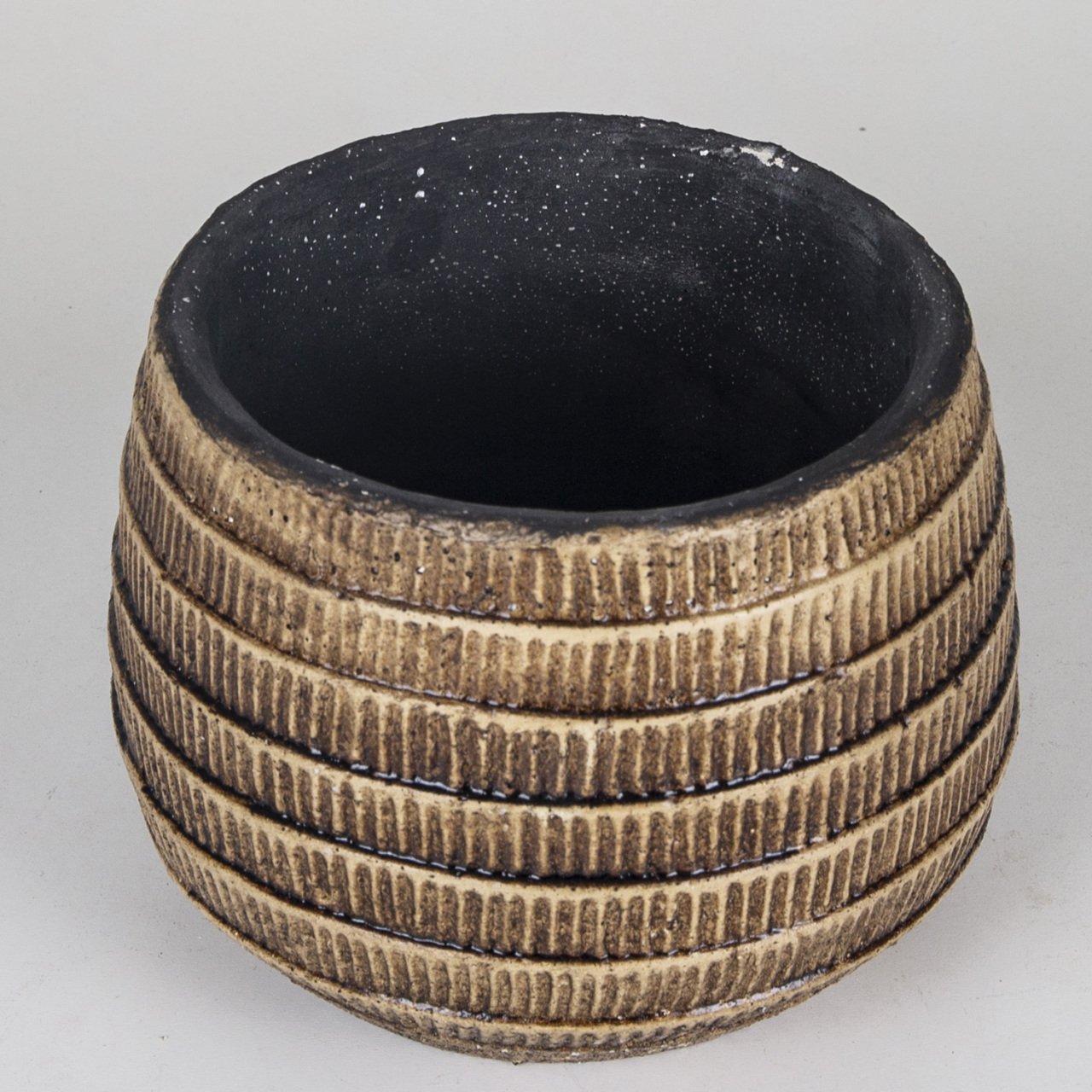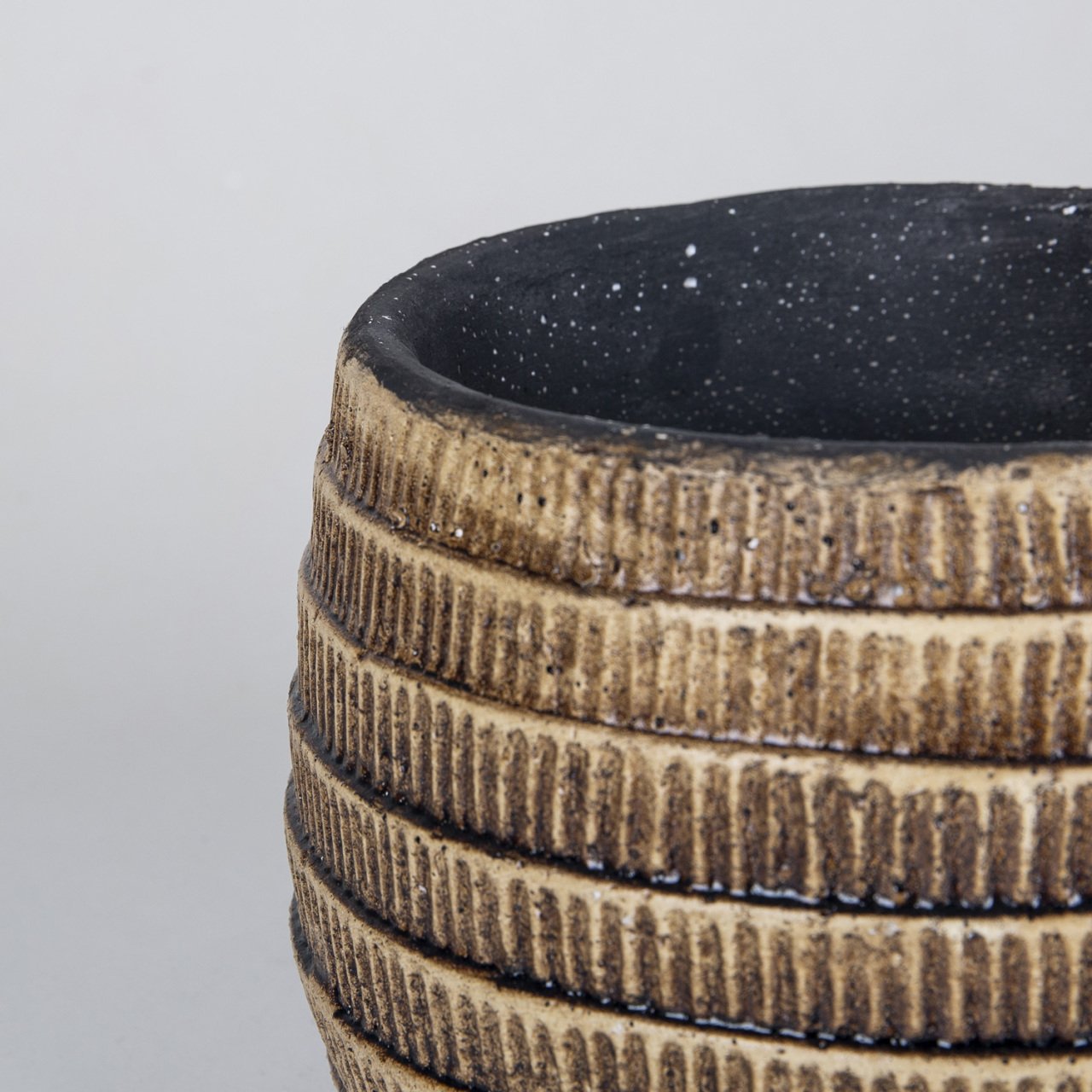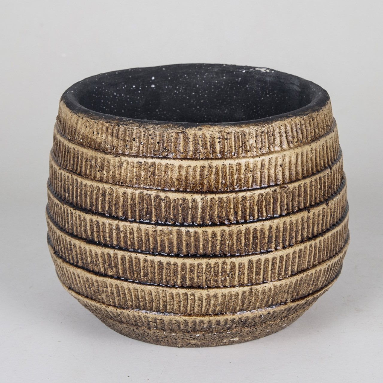 Çizgi Desen Büyük Boy Kahverengi Beton Saksı 2,5 Lt