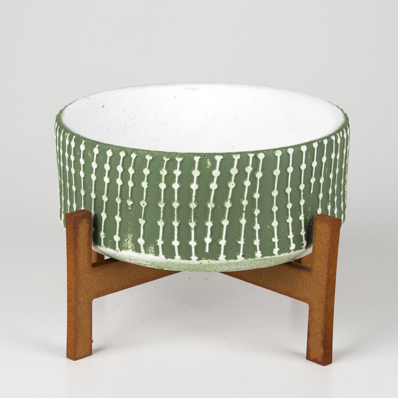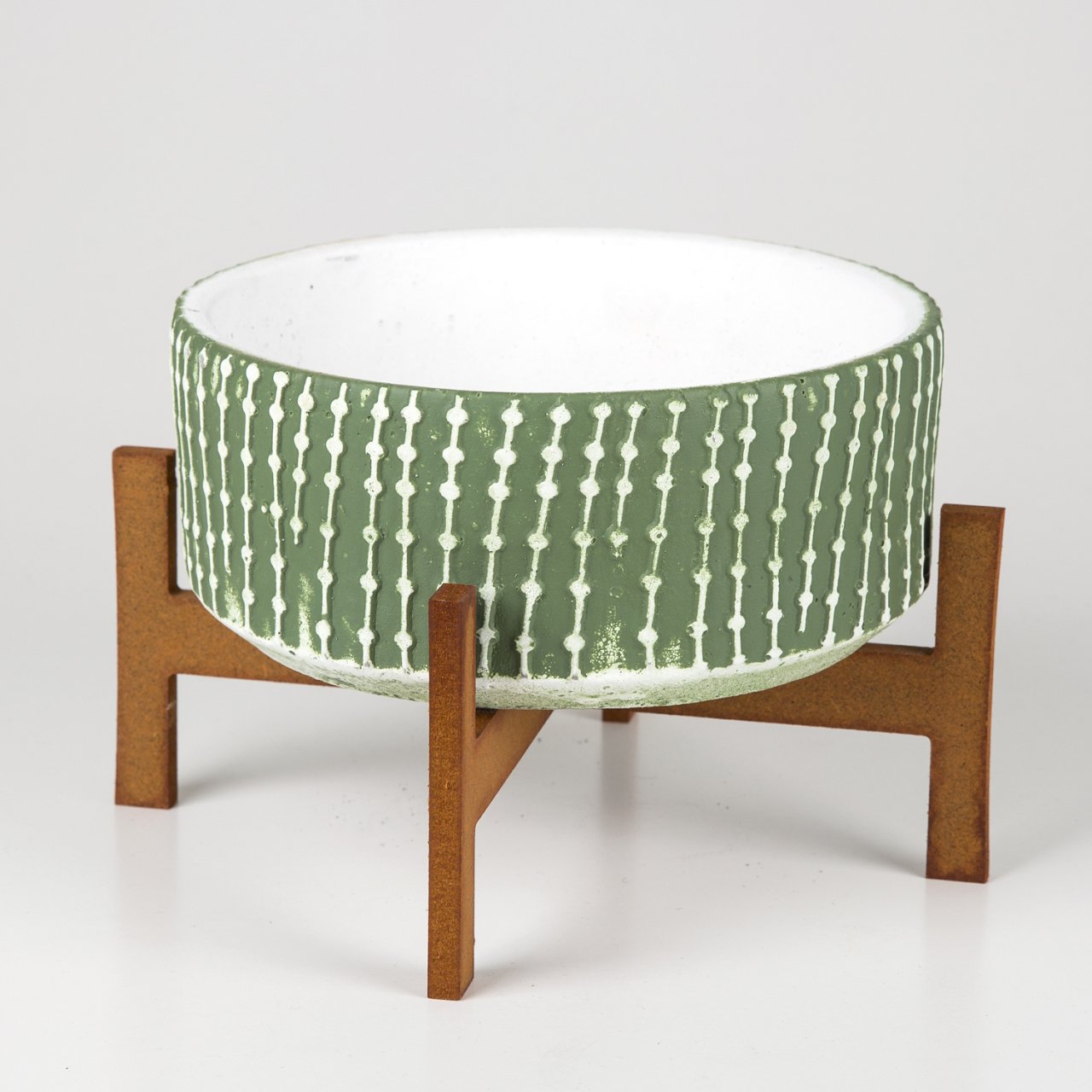 Çizgili Aranjman Yeşil Beton Saksı Ayaklı