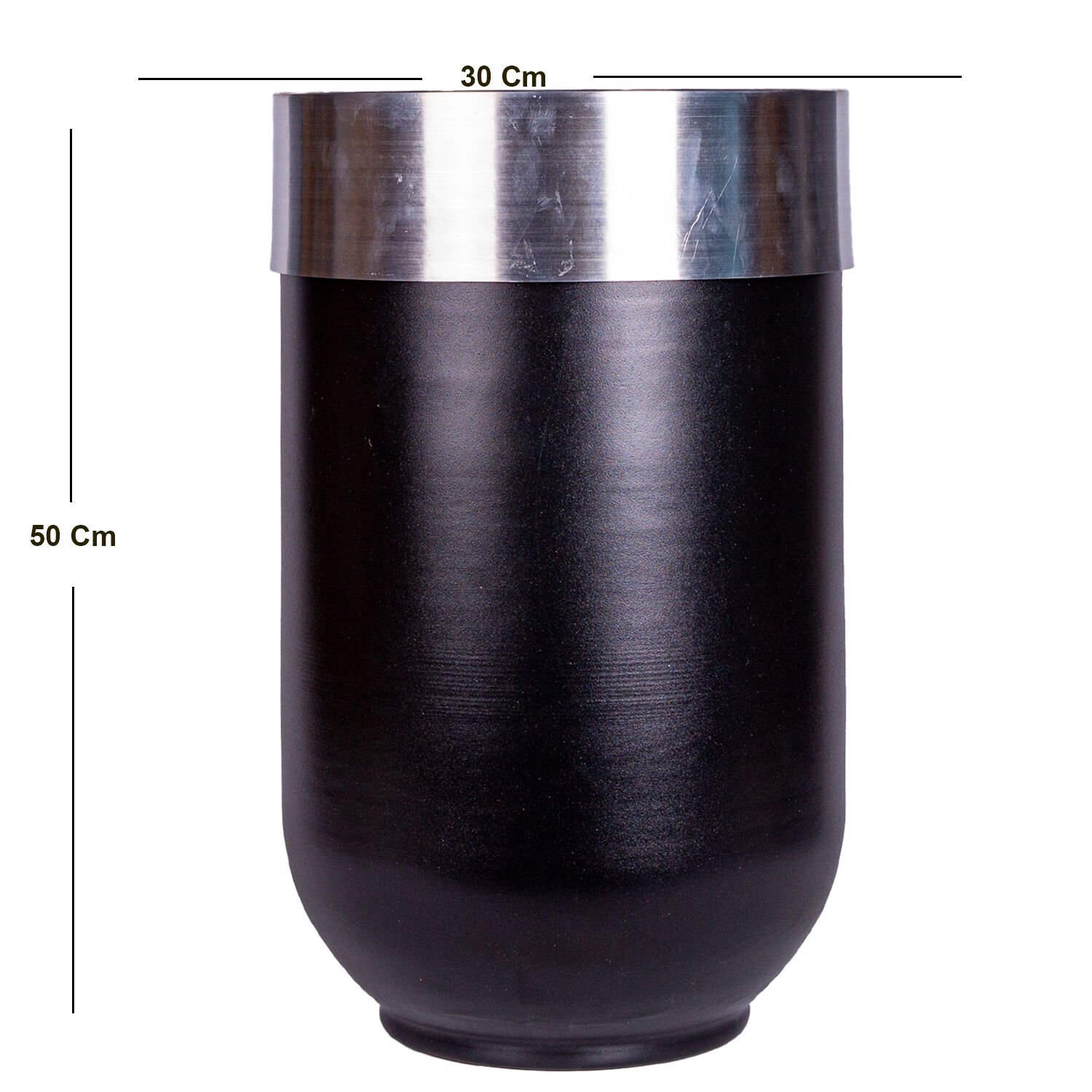 Darbuka Saksı, Alüminyum Çemberli, Siyah-Lame - 30x50 cm