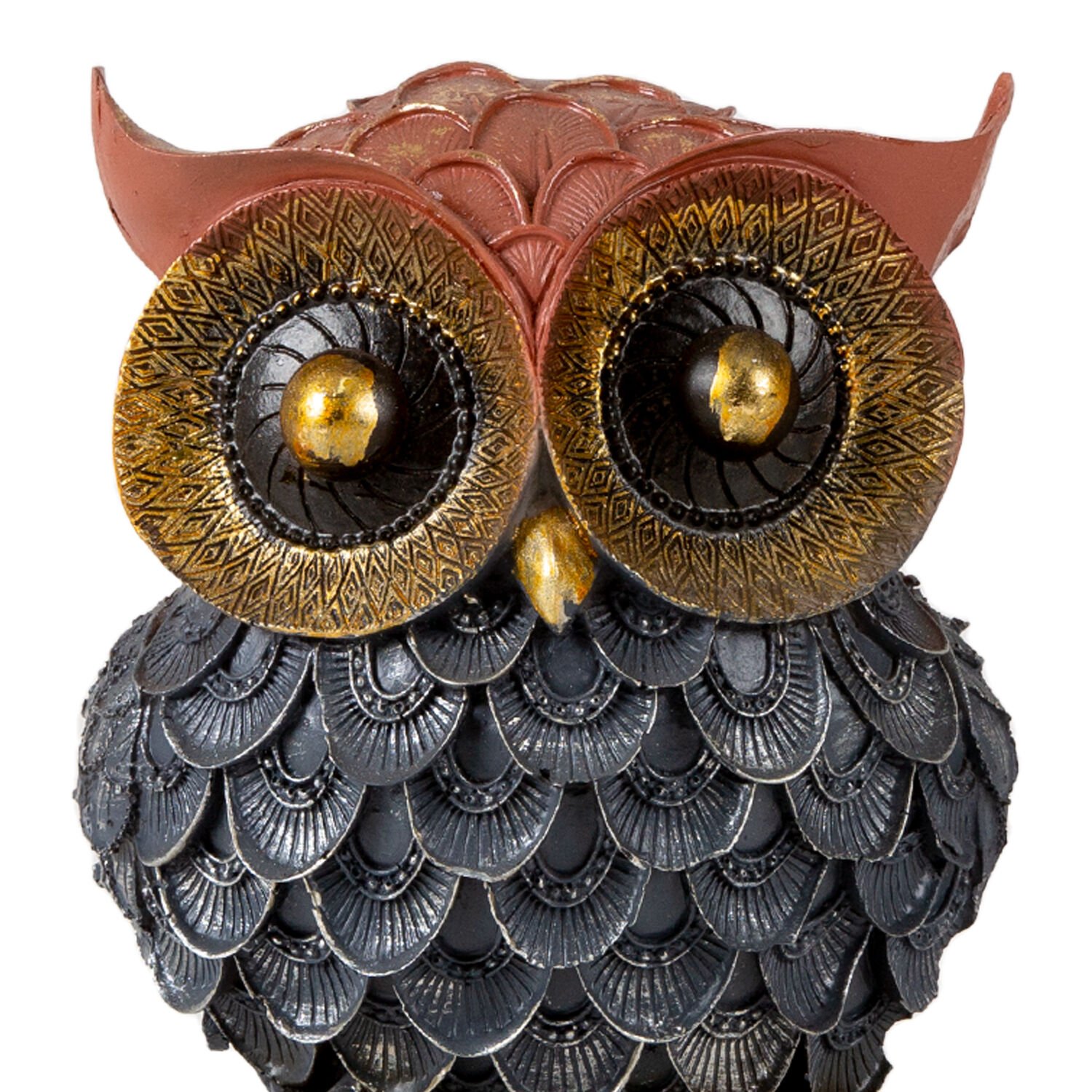 Dekoratif Baykuş Biblo, Gri-Turuncu - Üçlü Set