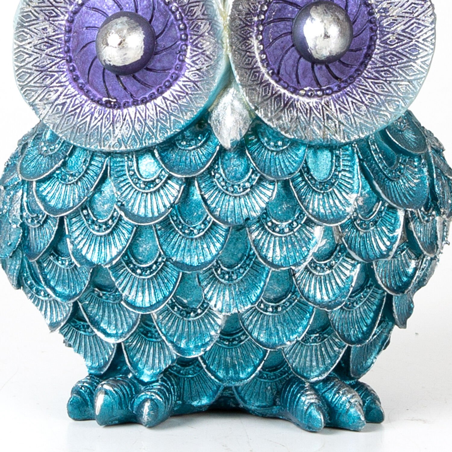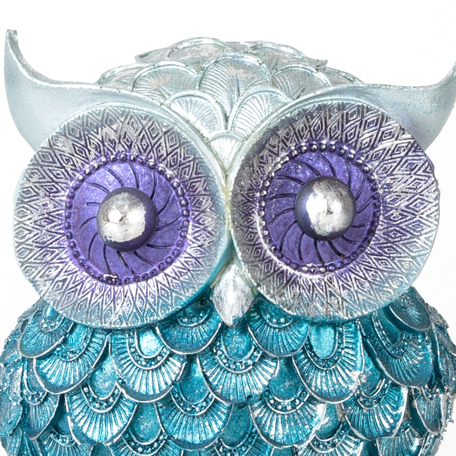 Dekoratif Baykuş Biblo, Mavi-Lame - Üçlü Set