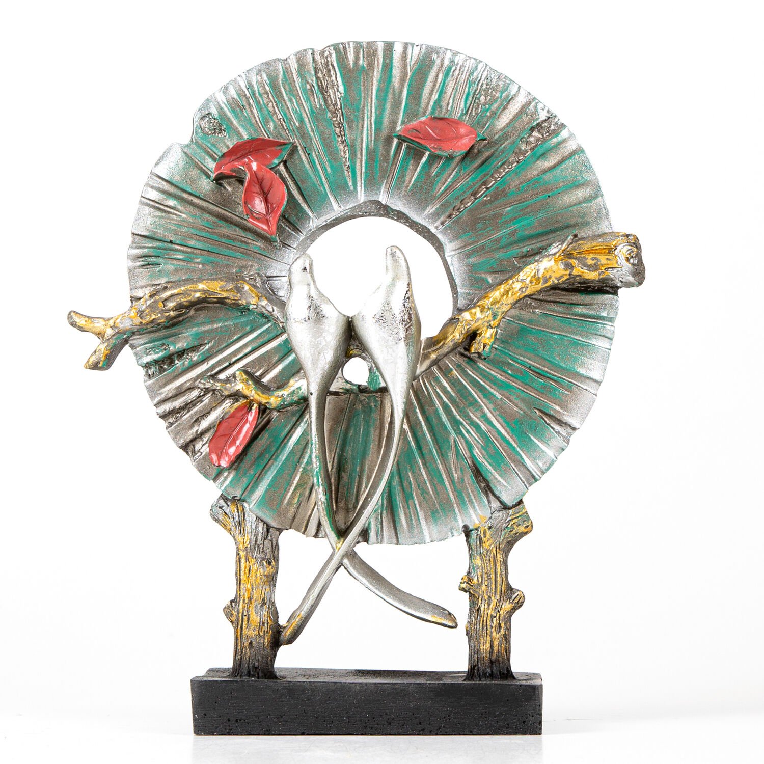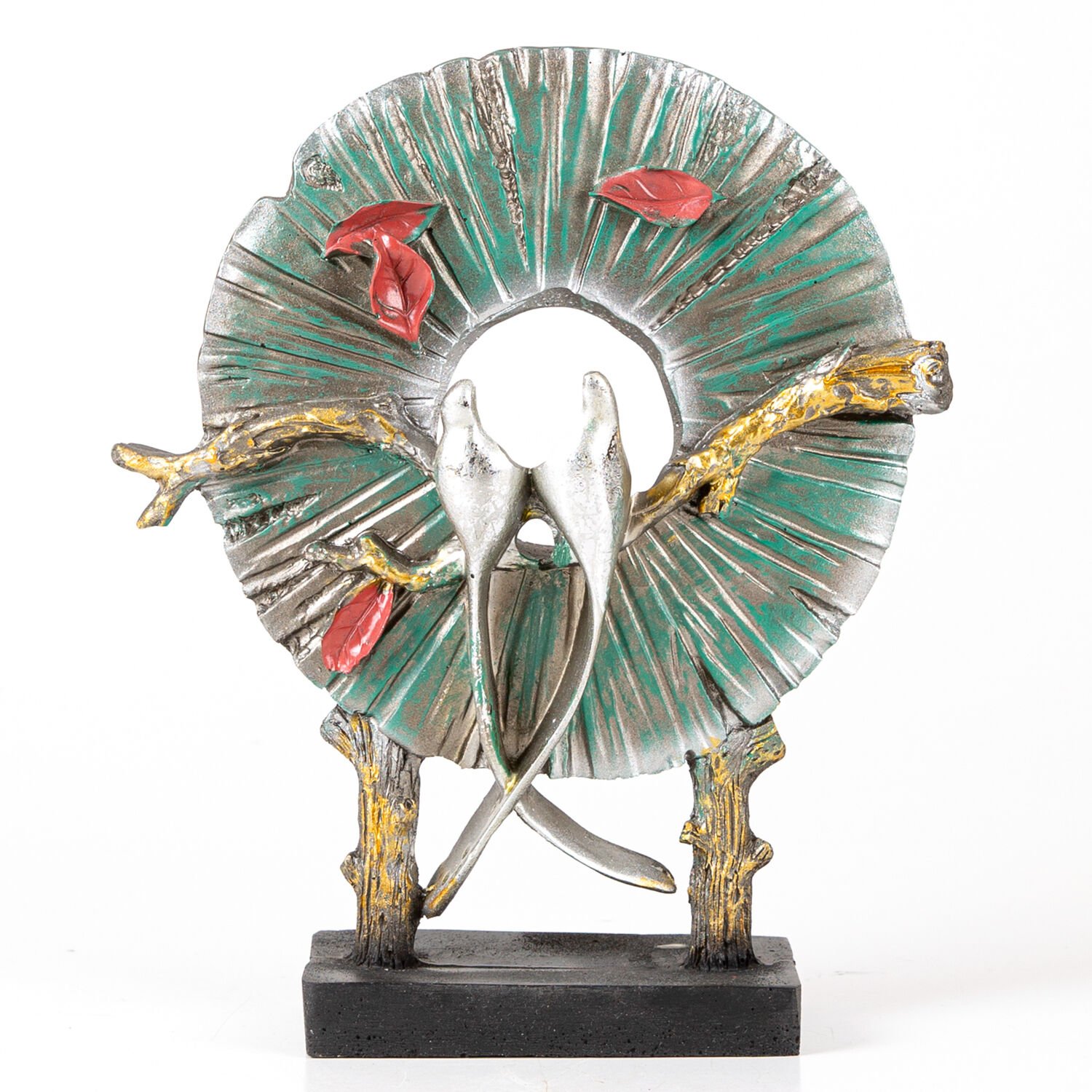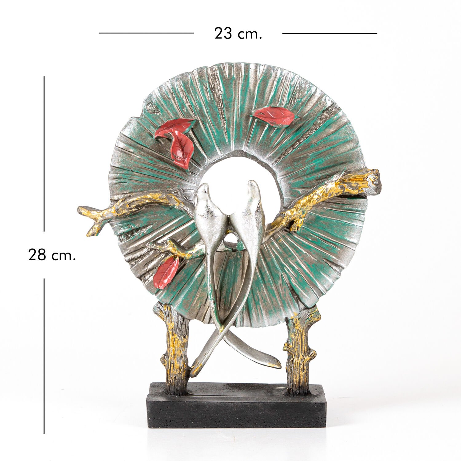 Dekoratif Biblo, İki Güvercin, Lame-Turkuaz - 23x28x7,5 cm