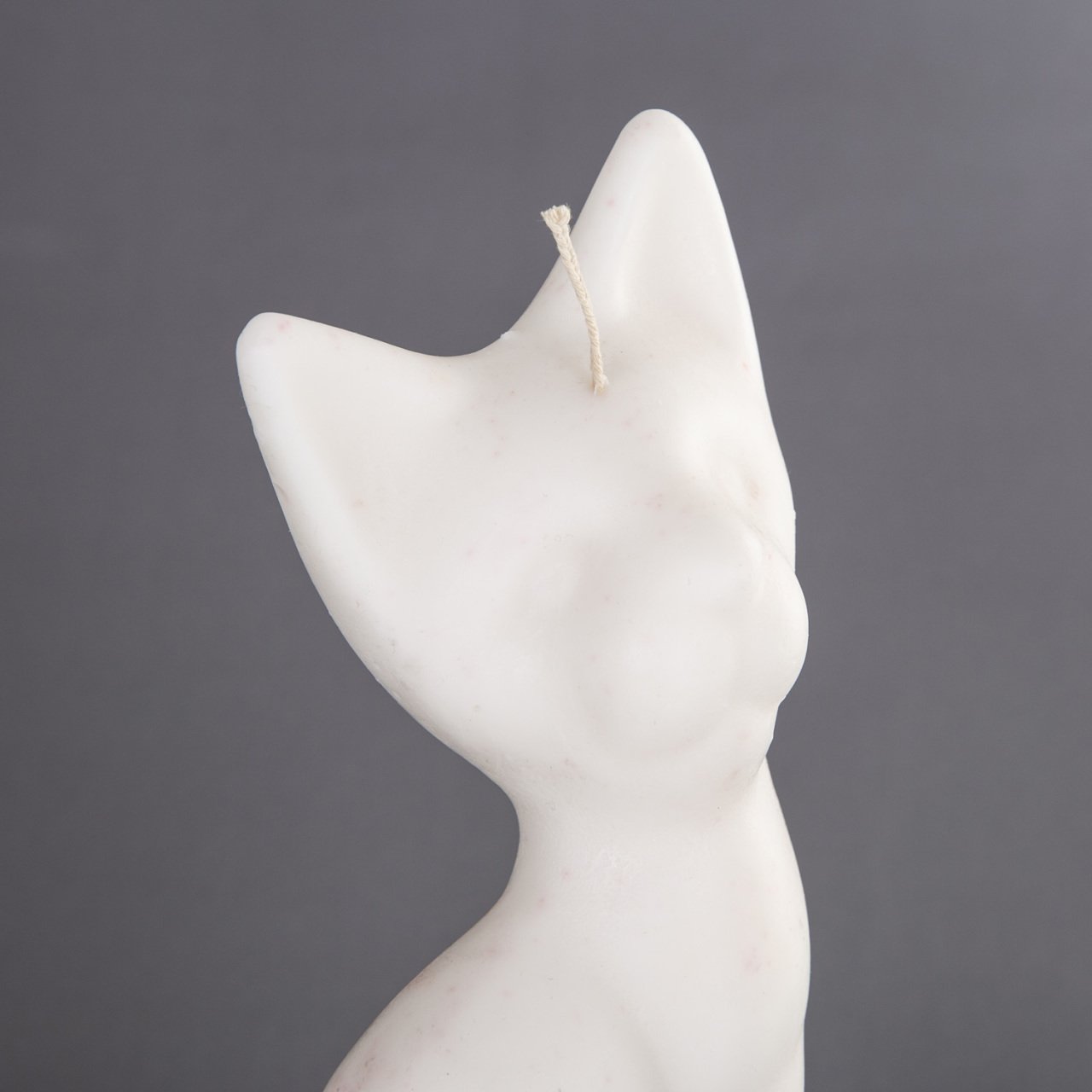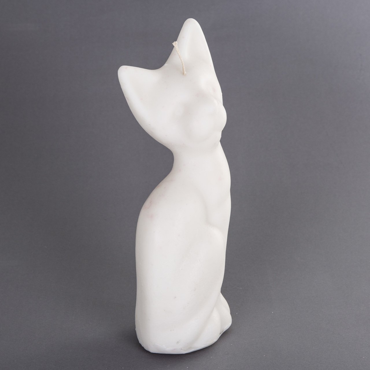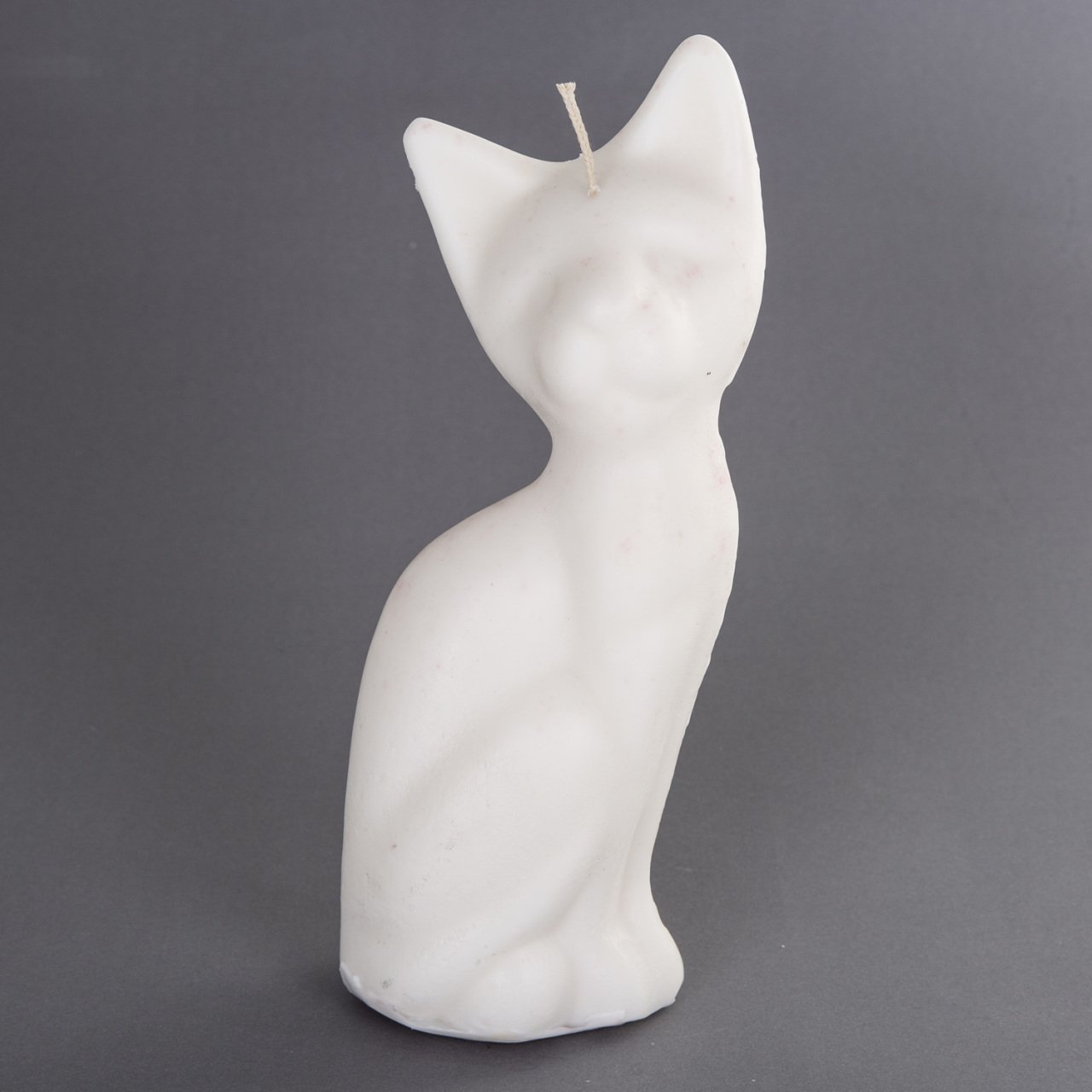 Dekoratif Kedi Mum Beyaz 23 Cm
