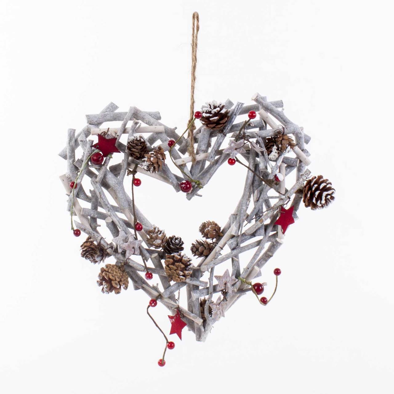 Dekorlu yılbaşı süsü dal kalp 31x31 cm - Dekorlu yılbaşı süsü dal kalp 31 cm - Yılbaşında konuklarınıza sevgi dolu bir karşılama! Kozalak ve yapay bitkilerle süslü natürel dal kalp kapı süsü modelleri ile şıklık kapınızda! Üstelik sadece bir tıkla!