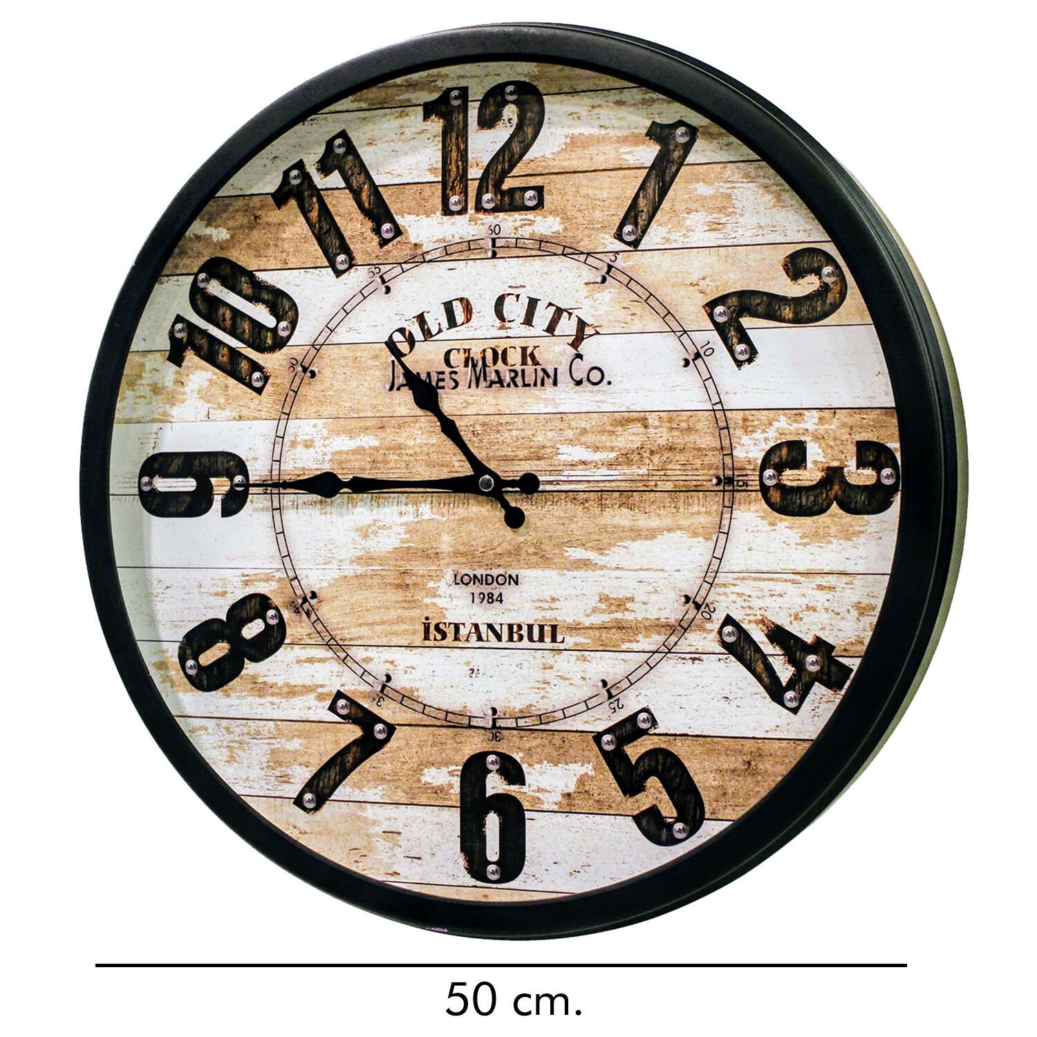 Duvar Saati, Ahşap Desenli, Siyah - Rakamlı, 50 cm