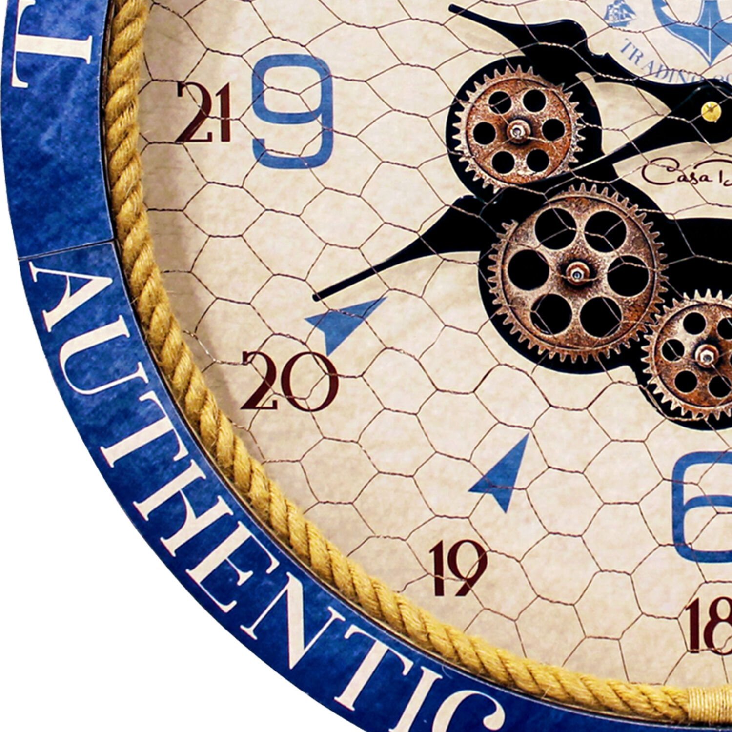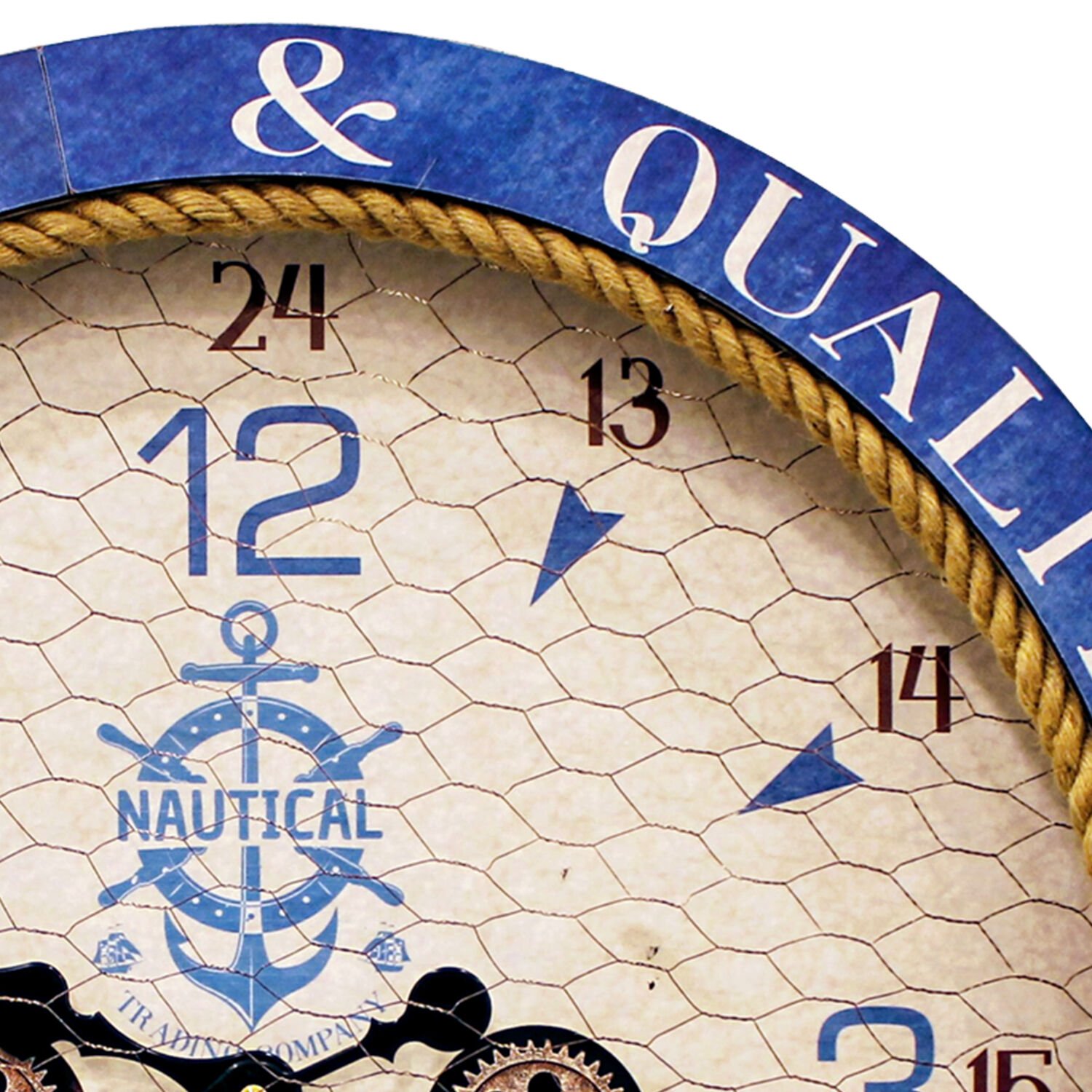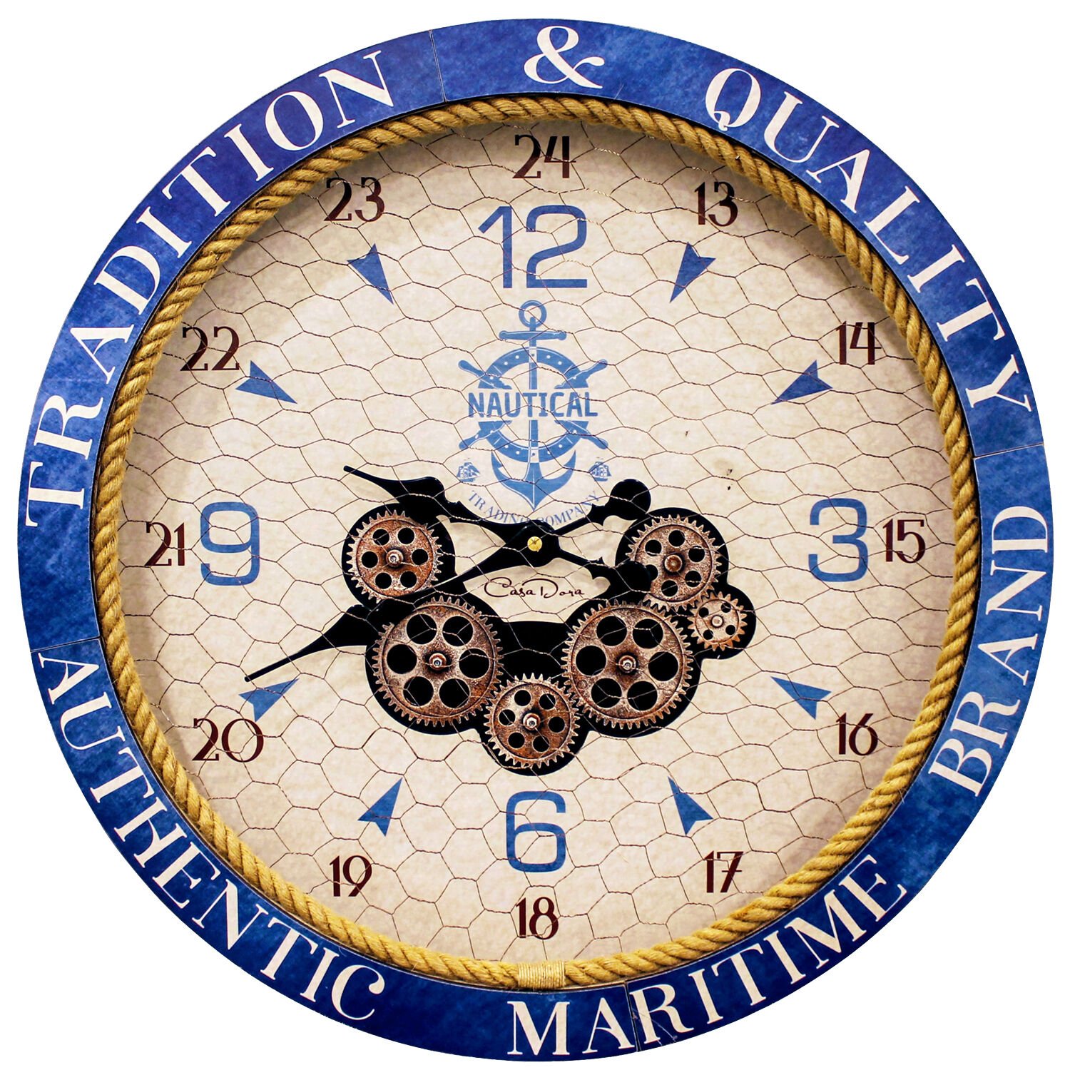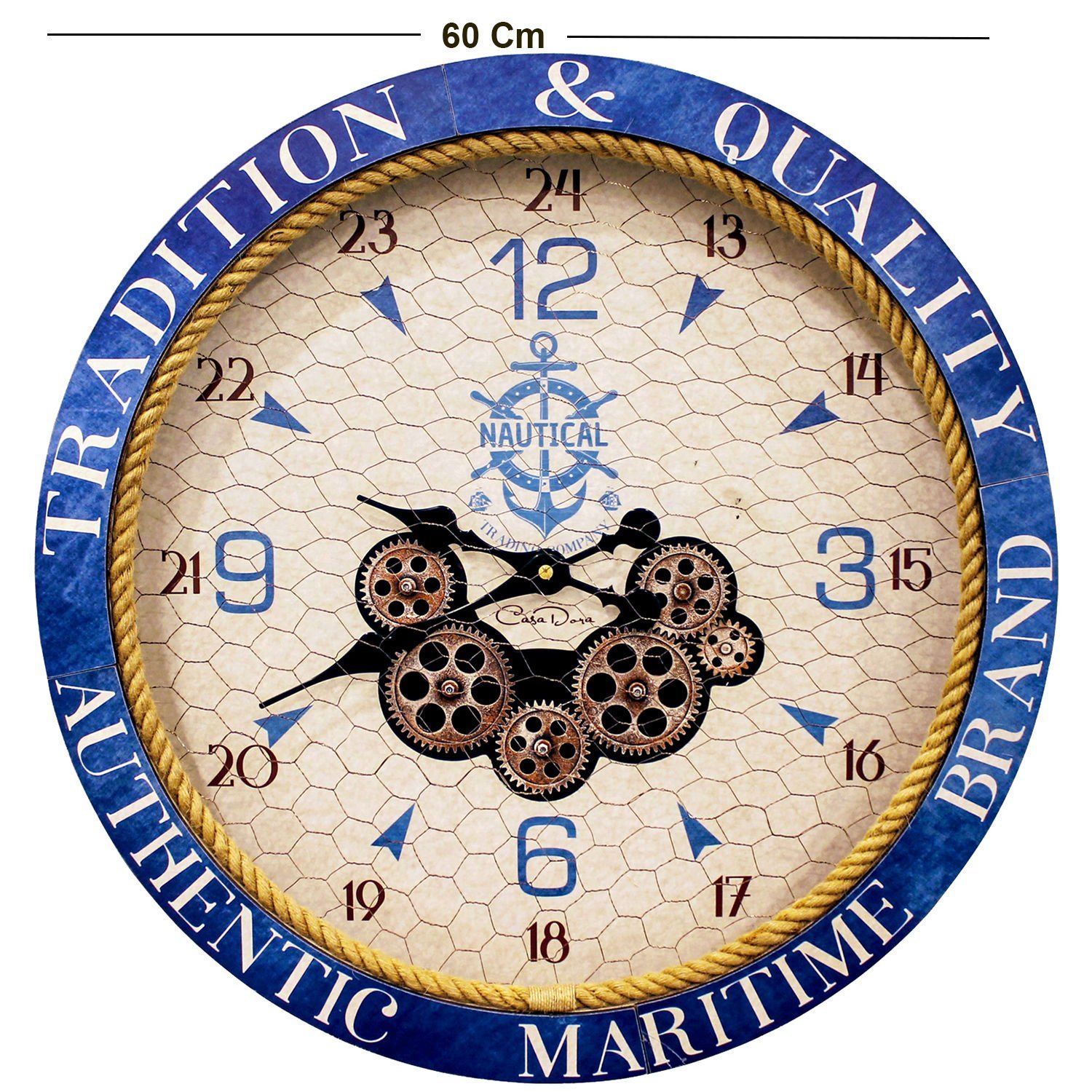 Duvar Saati, Rakamlı, Ahşap Çarklı, Krem Mavi - 60 cm