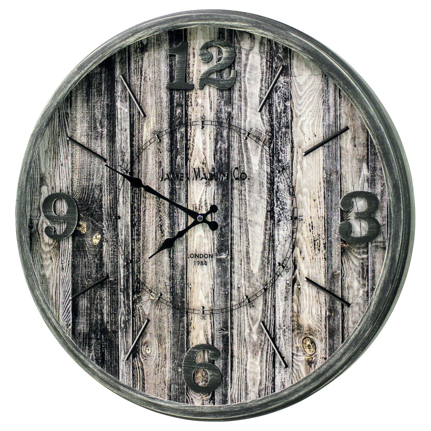 Duvar Saati, Rakamlı, İçi Ahşap Görünümlü, Gri-Krem Eskitme - 45 cm