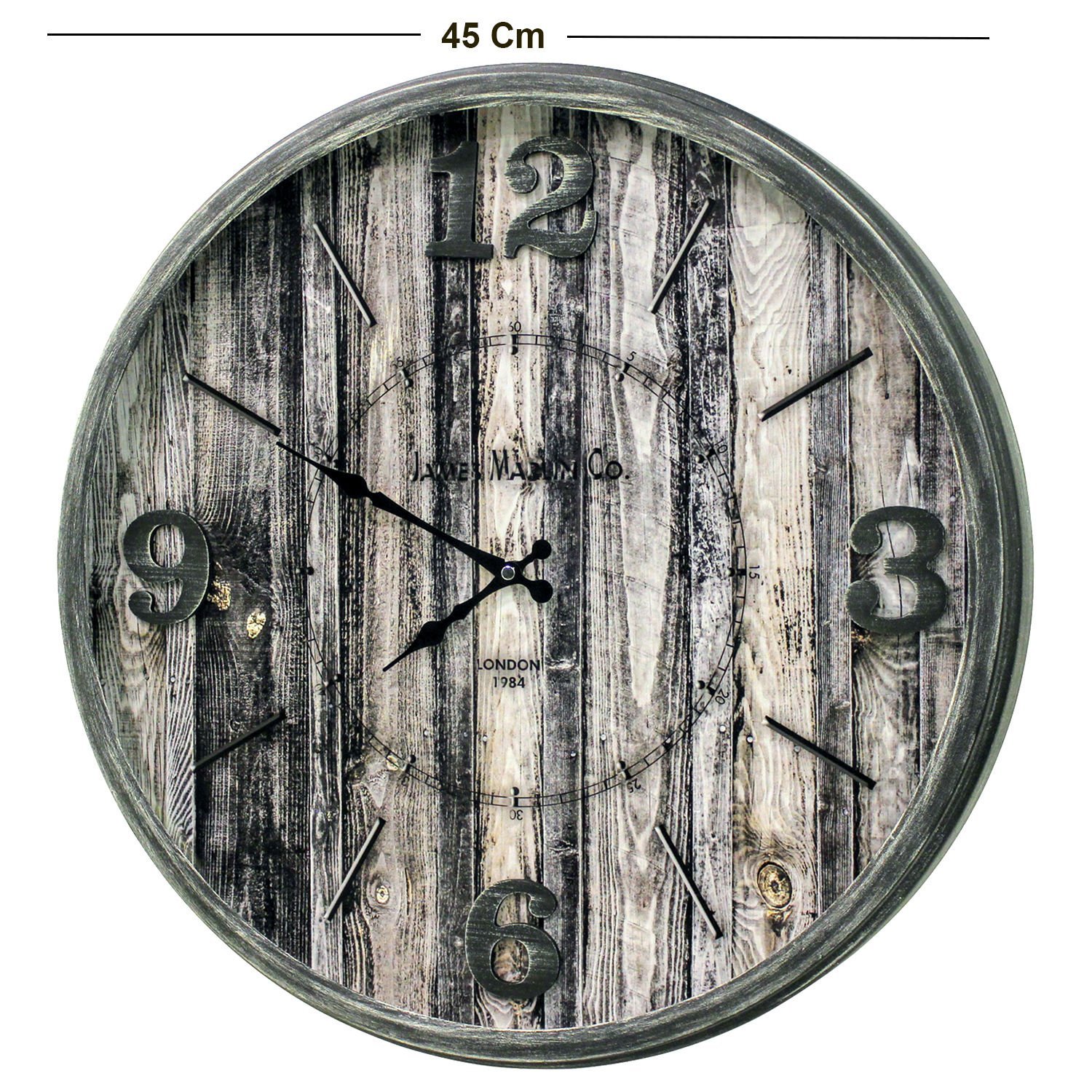 İçi Ahşap Görünümlü Rakamlı Duvar Saati Gri-Krem Eskitme 45 Cm.