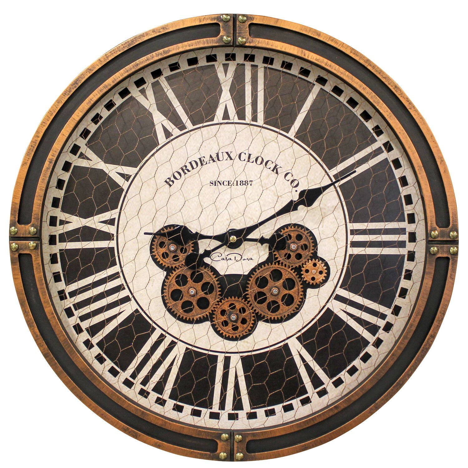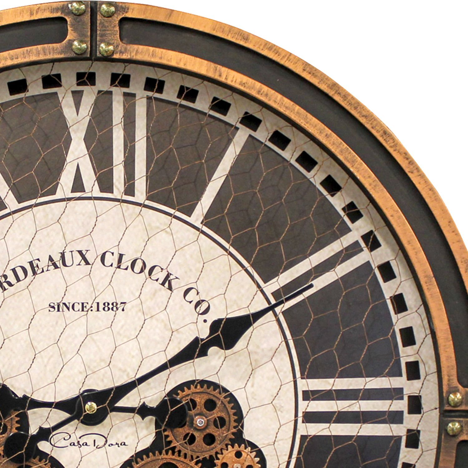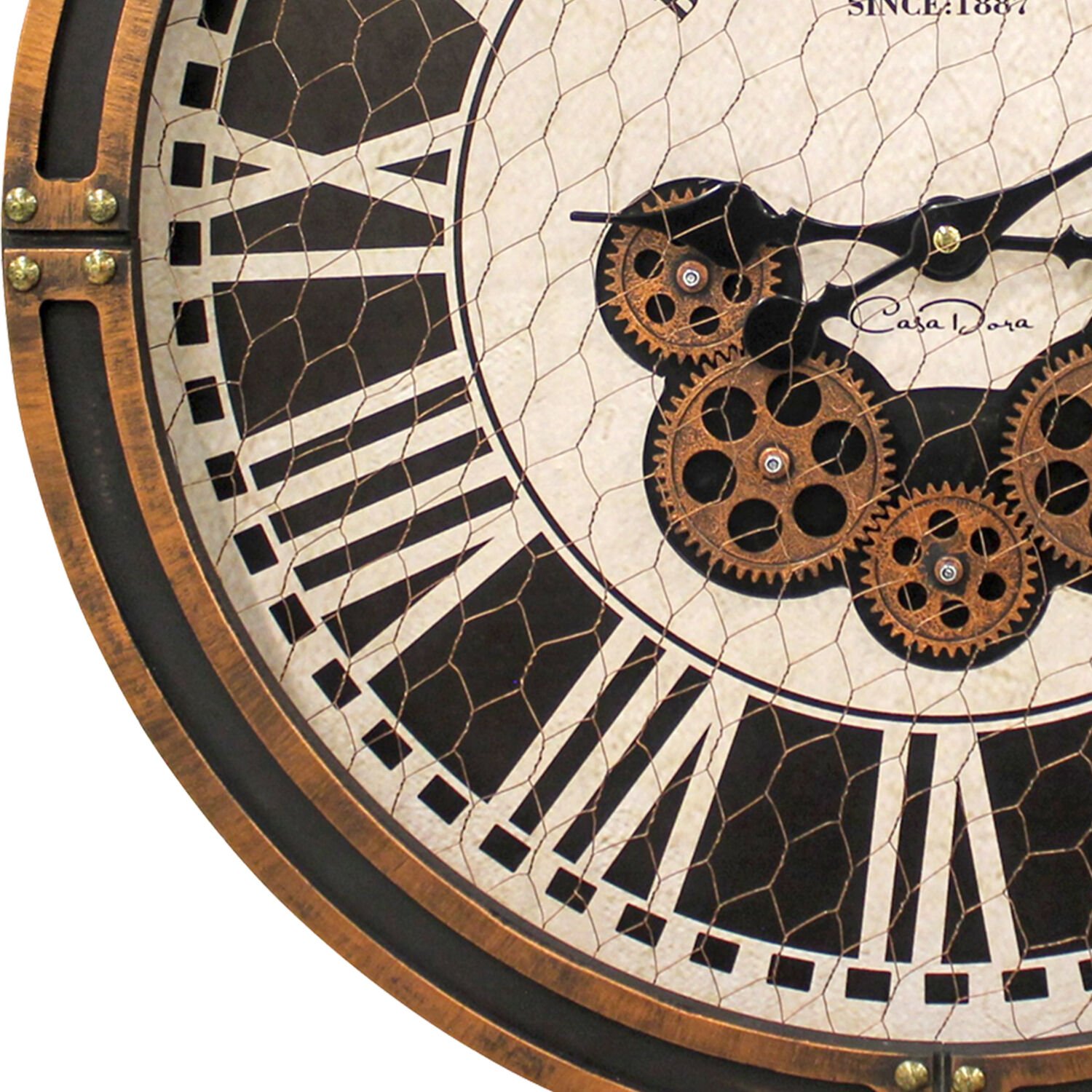 Duvar Saati, Roma Rakamlı, Ahşap Çarklı, Bakır Eskitme, Eskitme - 60 cm