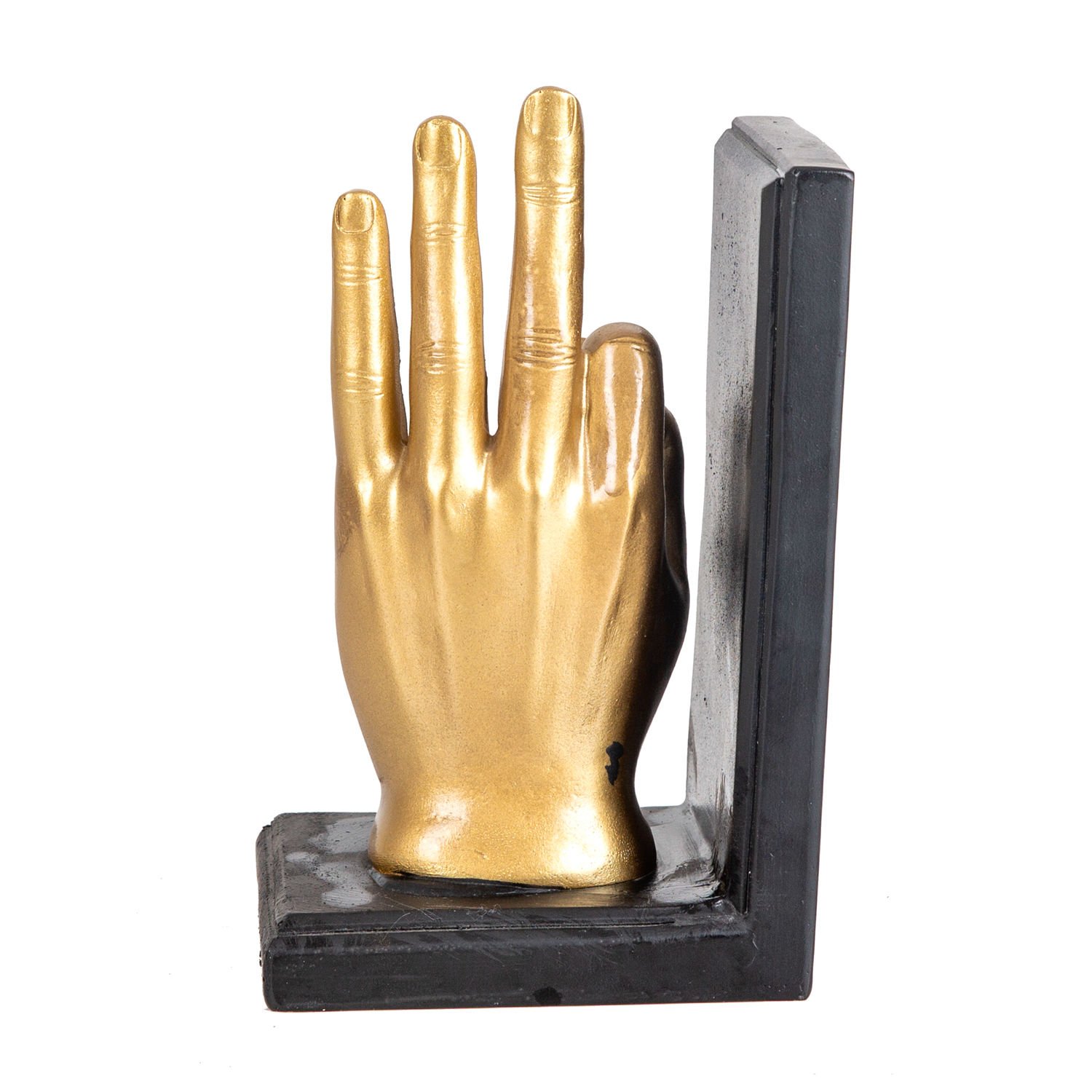 Dekoratif Polyester Siyah Kaide içinde "Ok." El Figürü Siyah-Altın Eskitme 10 x 18 Cm.