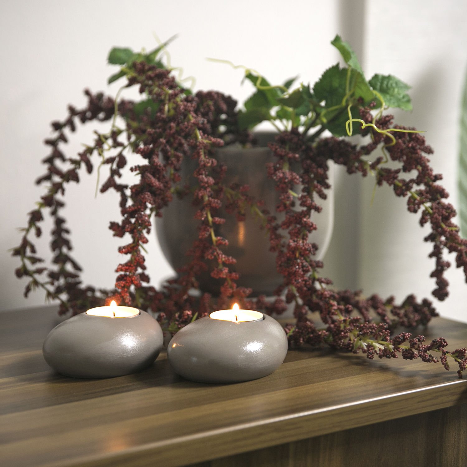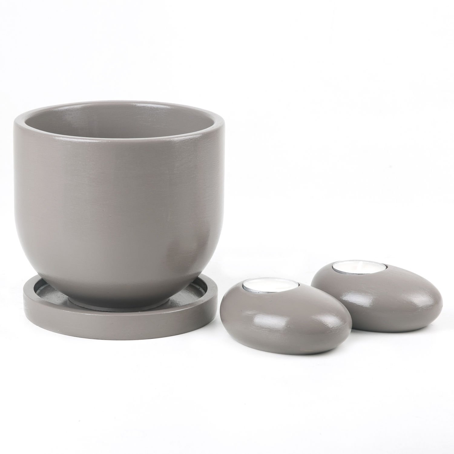 El Yapımı Pürüzsüz Yüzeyli Beton Çiçek Saksı + Beton Mumluk Set. (bej)
