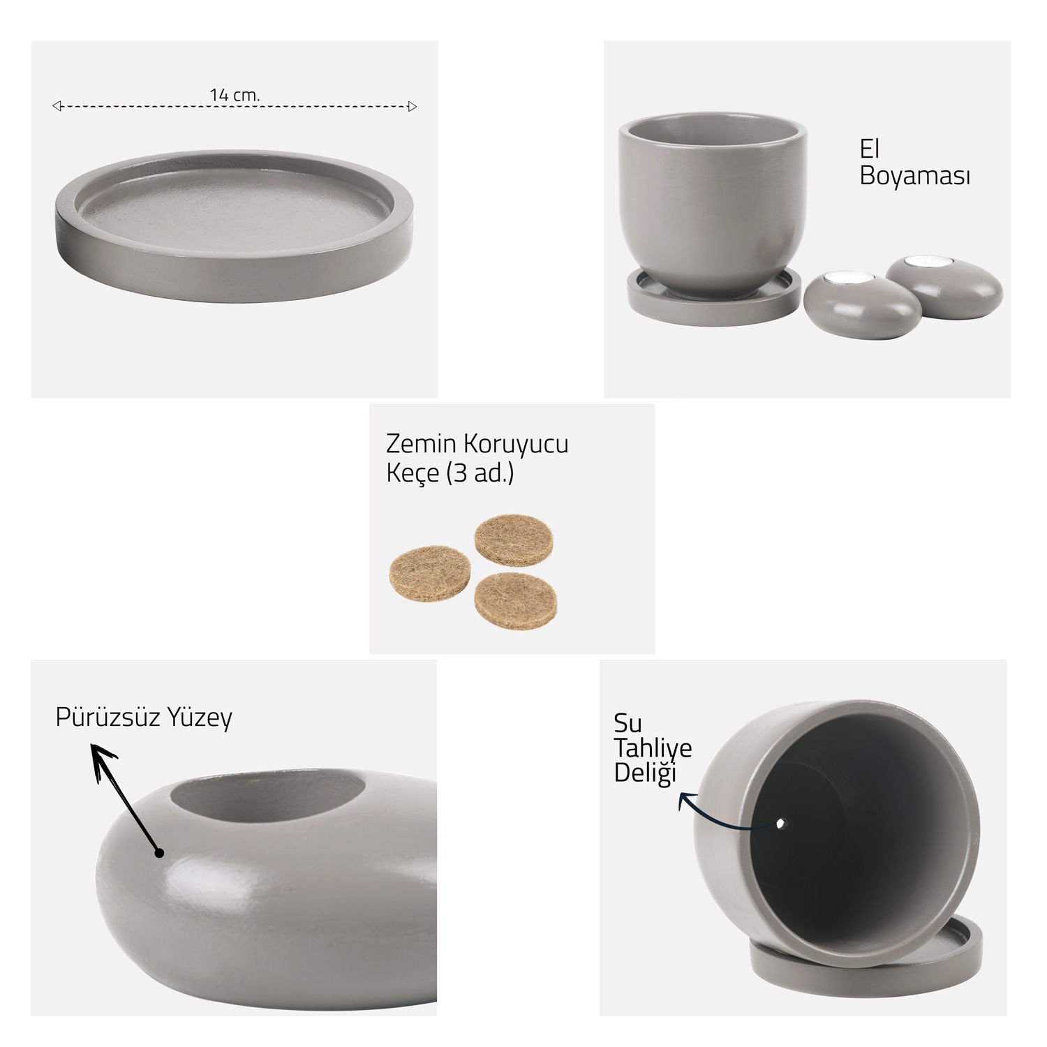 Her saksının altında bir drenaj deliği vardır. Bu drenaj deliği sayesinde, su topraktan kolayca geçer ve saksının aşırı sulanmasını önler. Bu sayede saksınız daha uzun ömürlü ve dayanıklı olacaktır.