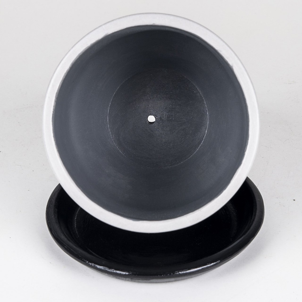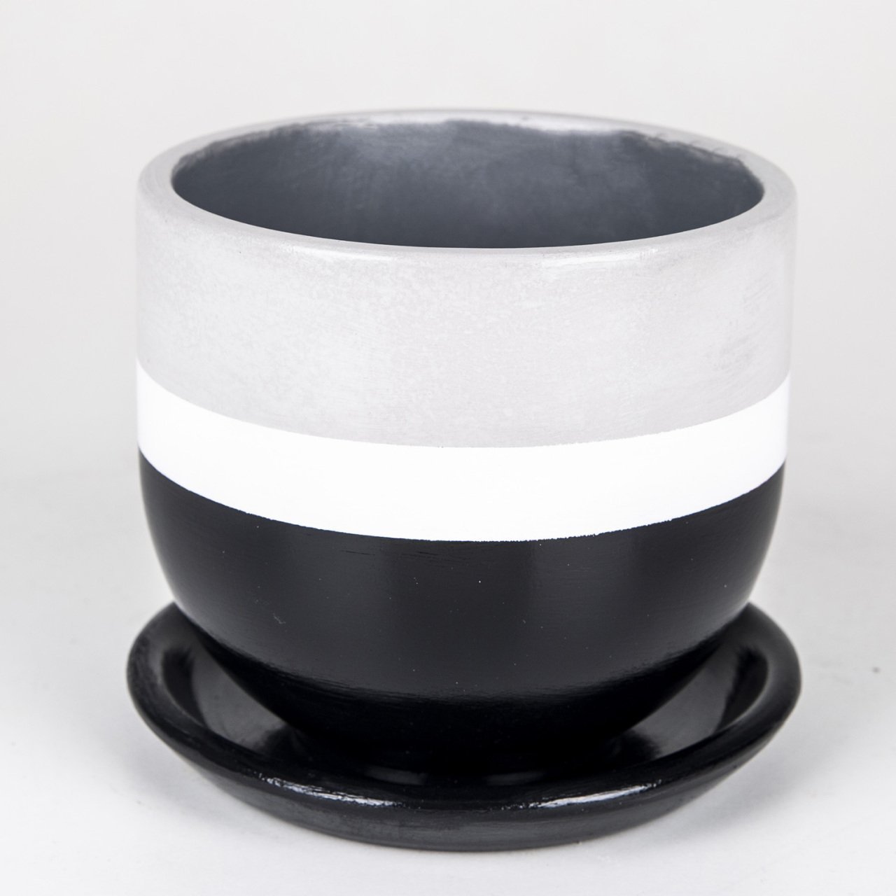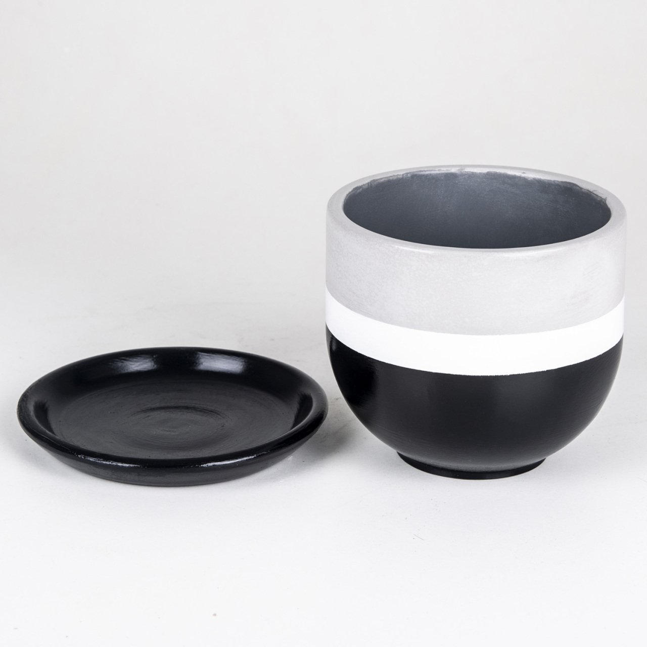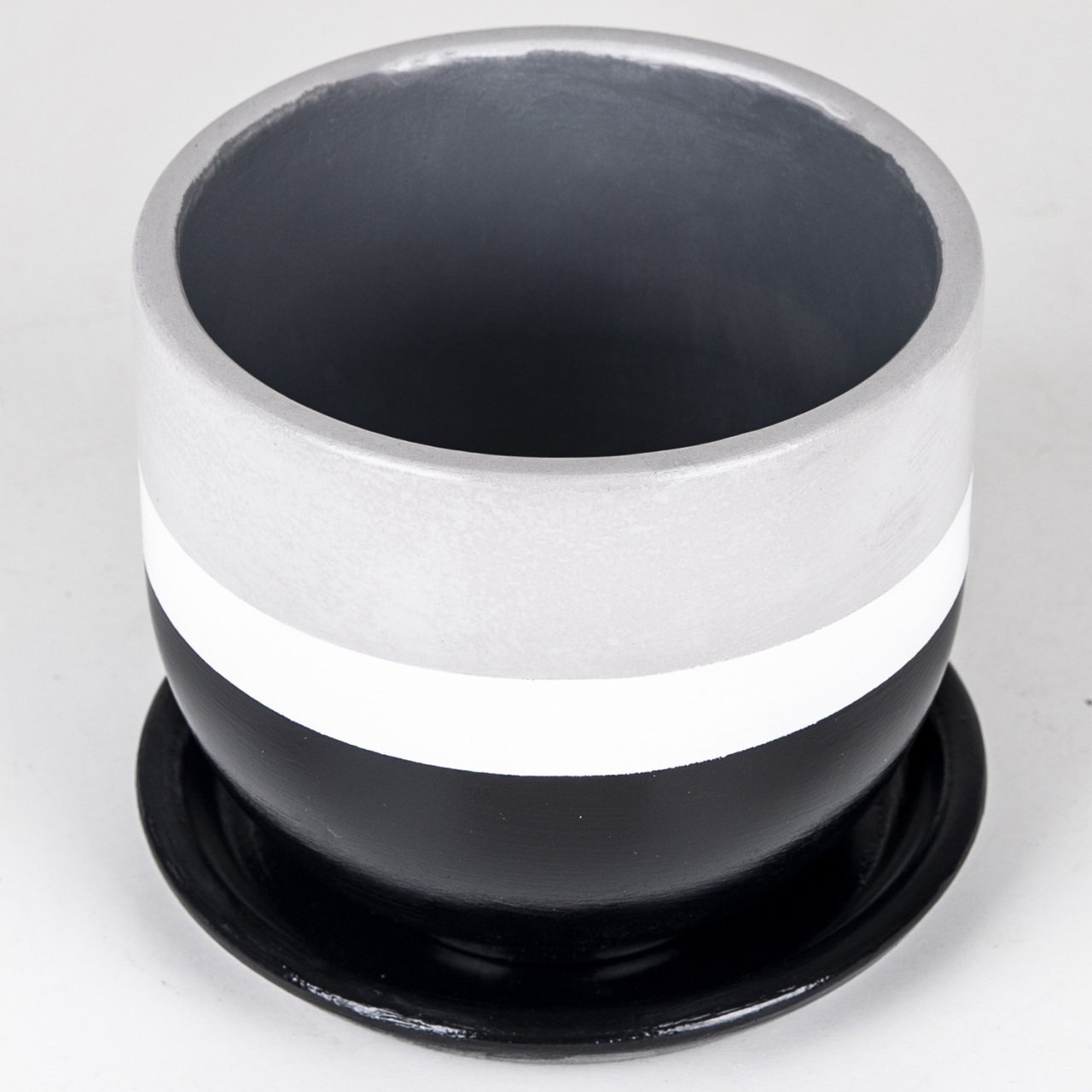 El Yapımı Siyah Beyaz Gri Tabaklı Delikli Beton Saksı 15x13 Cm 1,5 Lt