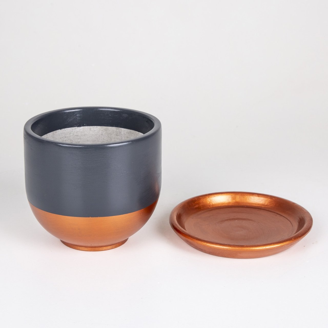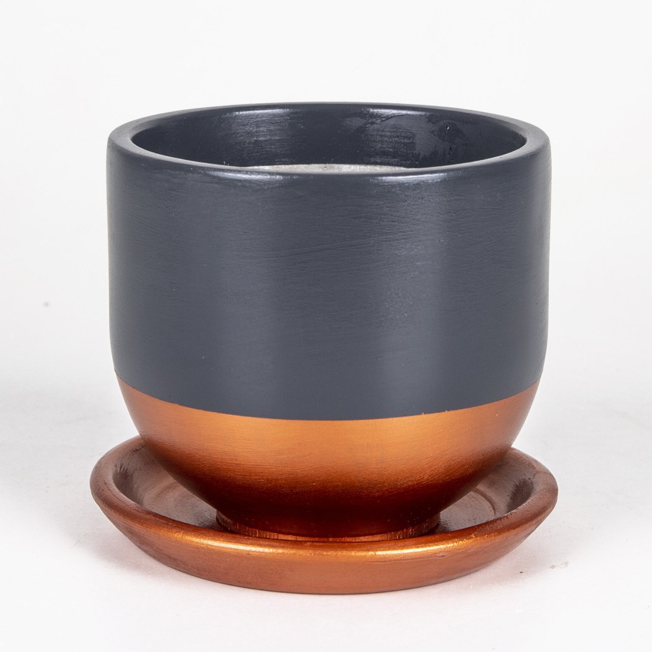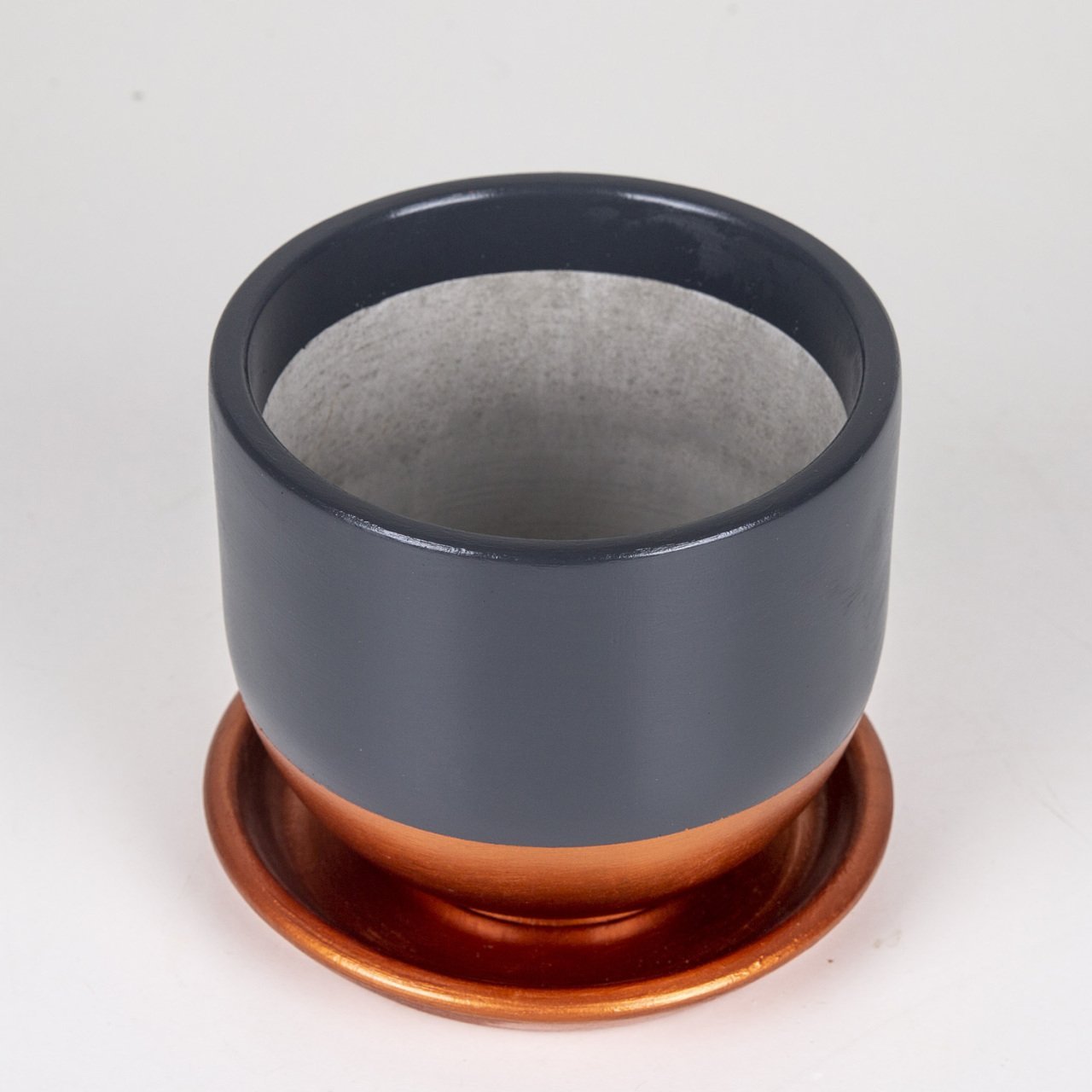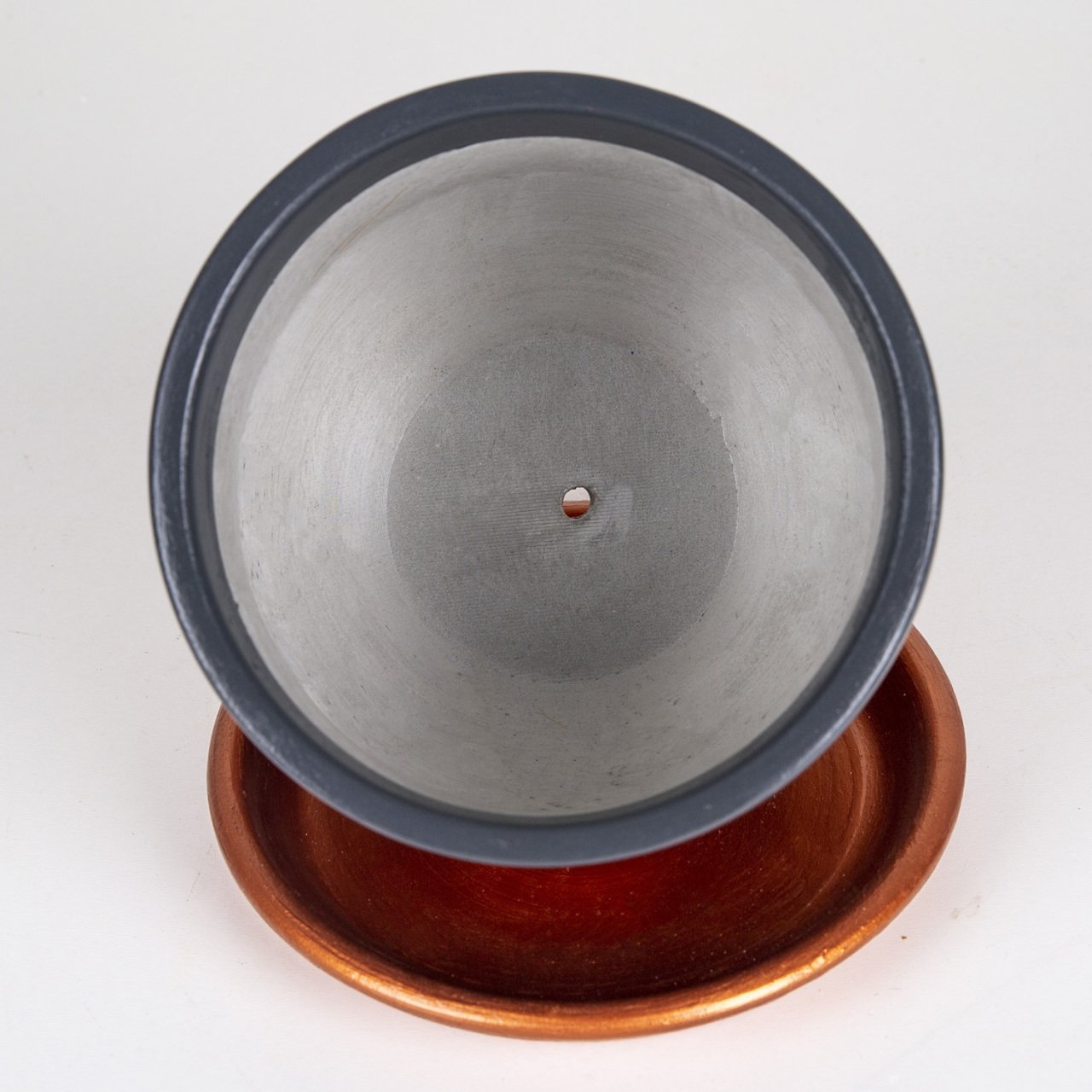 El Yapımı Tabaklı Delikli Beton Saksı Antrasit Bakır 15x13 Cm