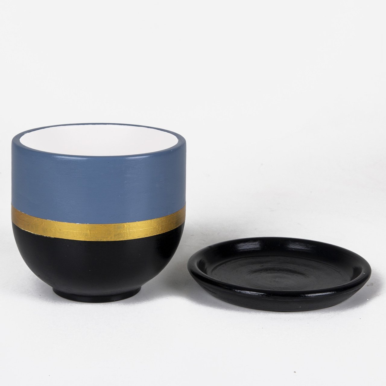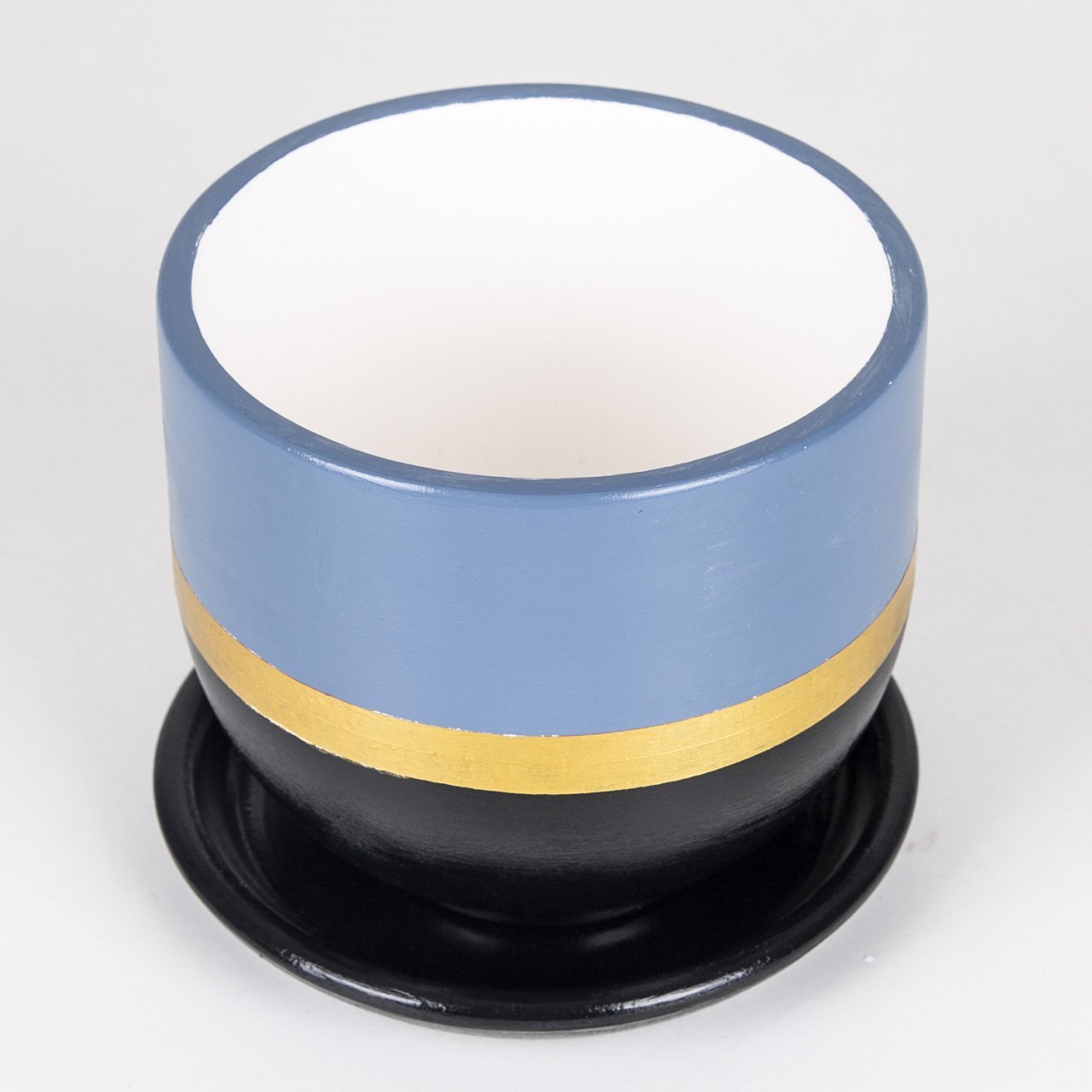El Yapımı Tabaklı Delikli Beton Saksı Ege Mavisi Siyah 15x13 Cm
