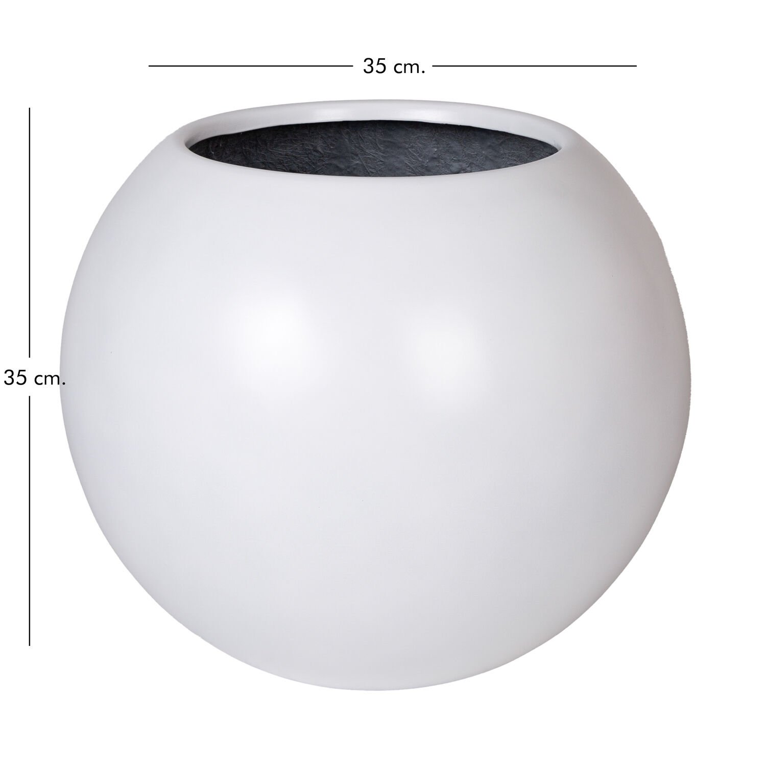 Fiber Saksı, Küre, Küçük, Beyaz - 35x35 cm