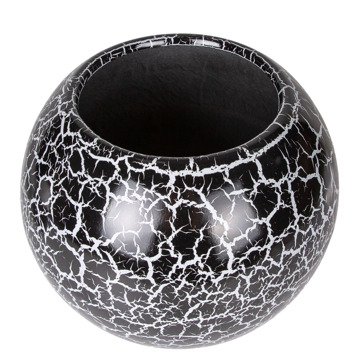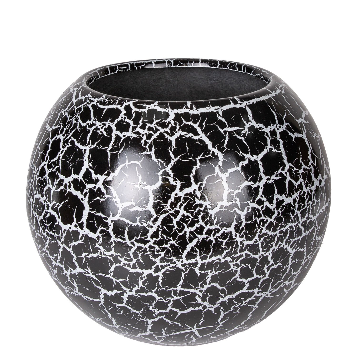 Fiber Saksı, Küre, Siyah Beyaz Çatlak Model - 42x34 cm