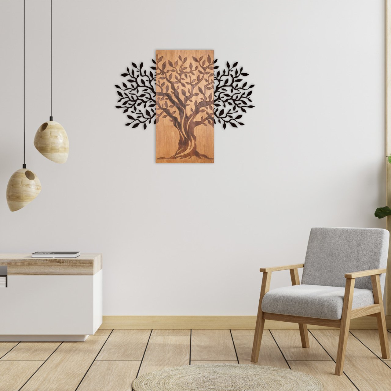 Figür Ağaç Ahşap/metal Dikdörtgen Duvar Pano 72x57,5 Cm