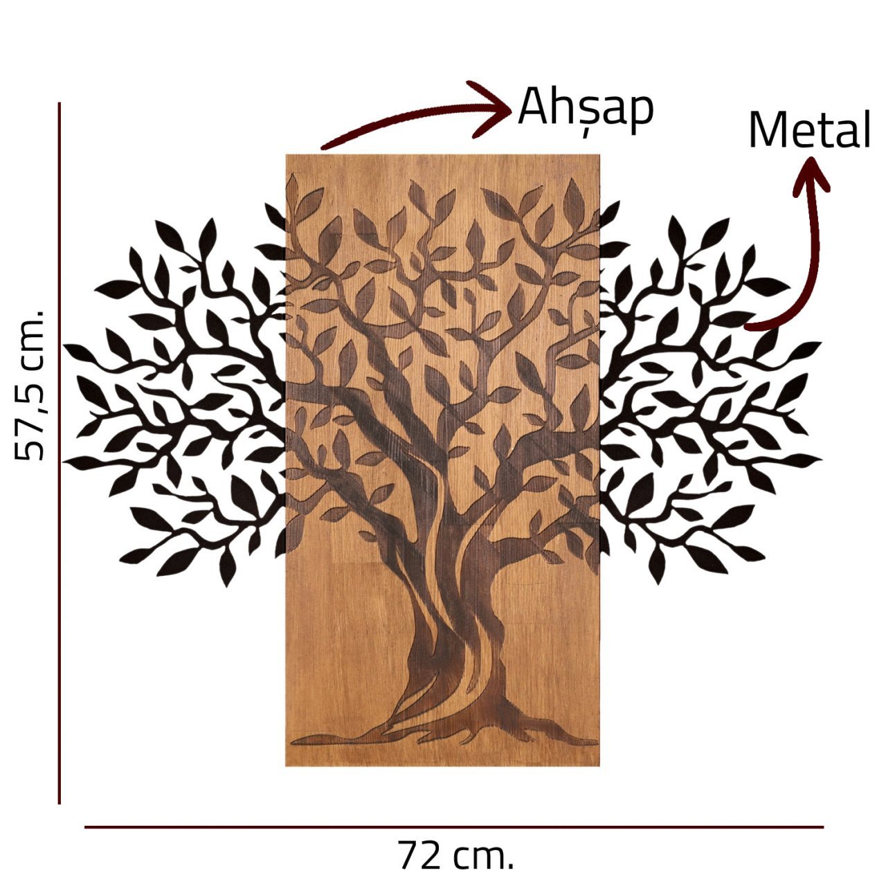 Figür Ağaç Ahşap/Metal Dikdörtgen Duvar Pano 72x57,5 cm.