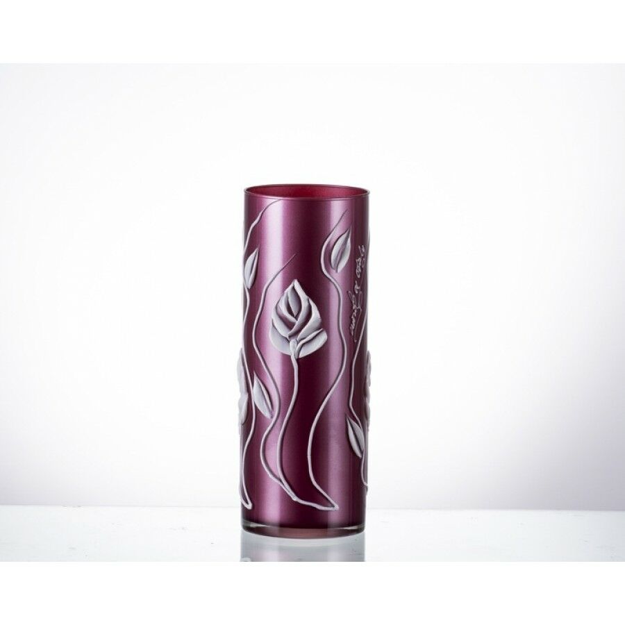 Fuşya Çiçekli K.Silindir Vazo 40cm.