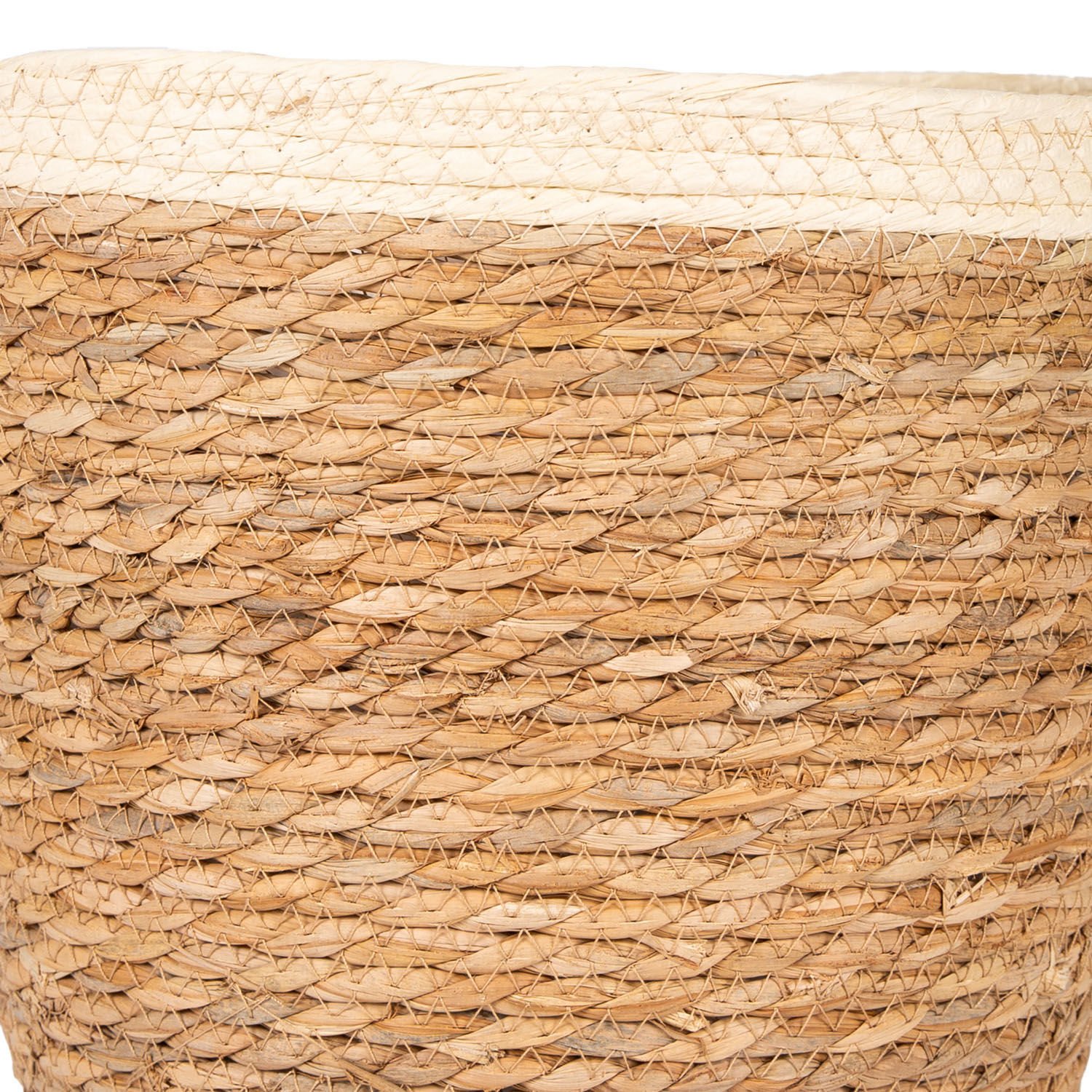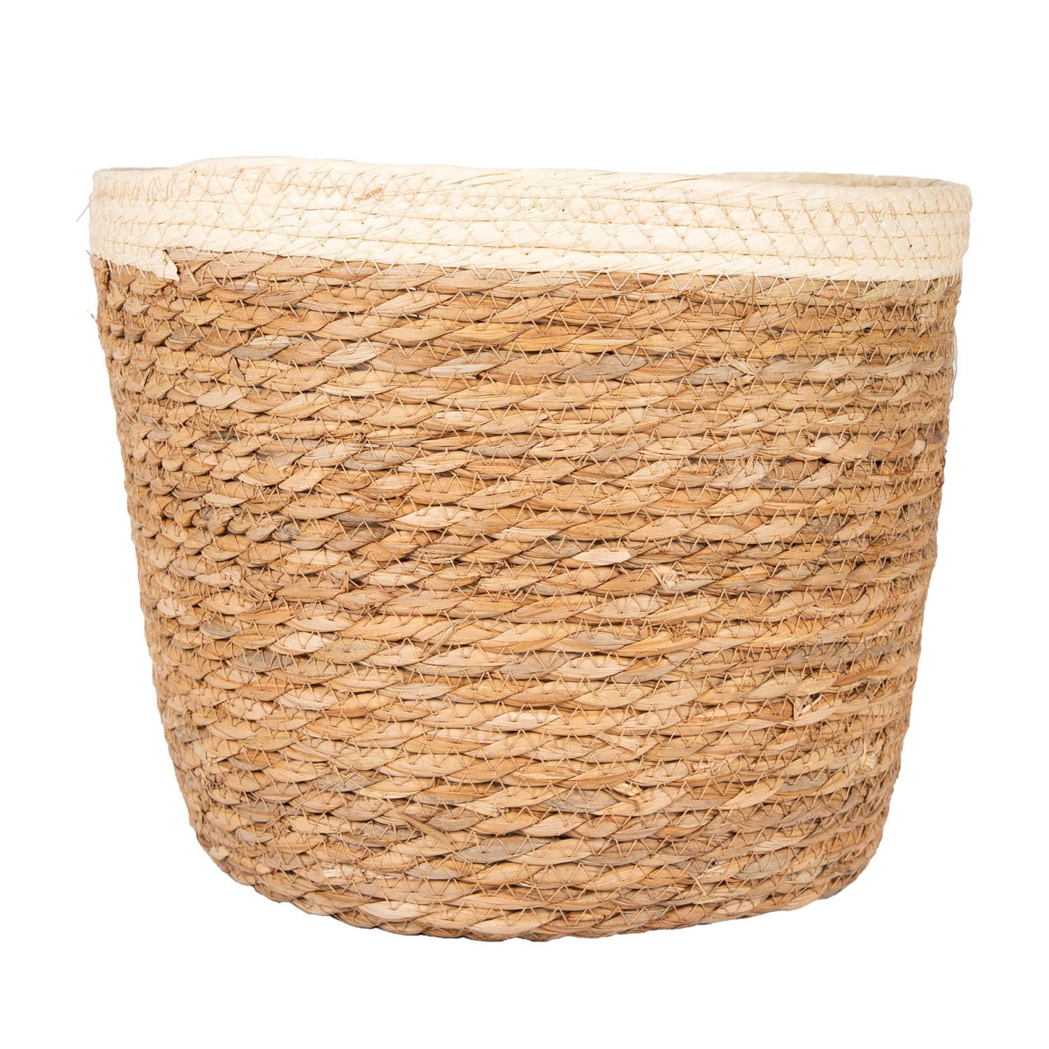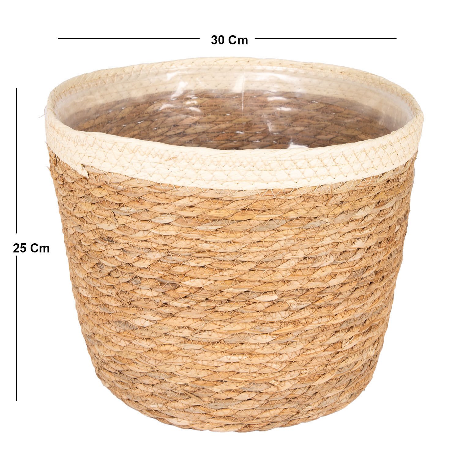 Hasır Sepet, Beyaz Kuşaklı, Naturel - Naylon İçli, 25x30 cm