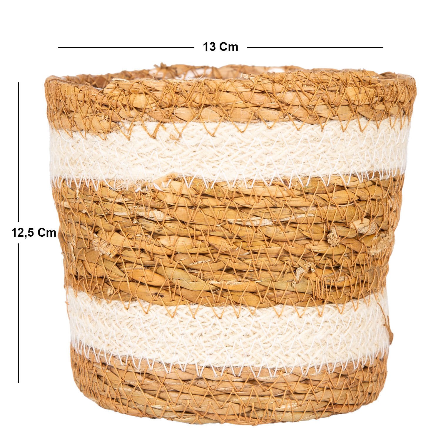 Hasır Sepet Beyaz Şeritli Naylon İçli Naturel 13x12,5 Cm.