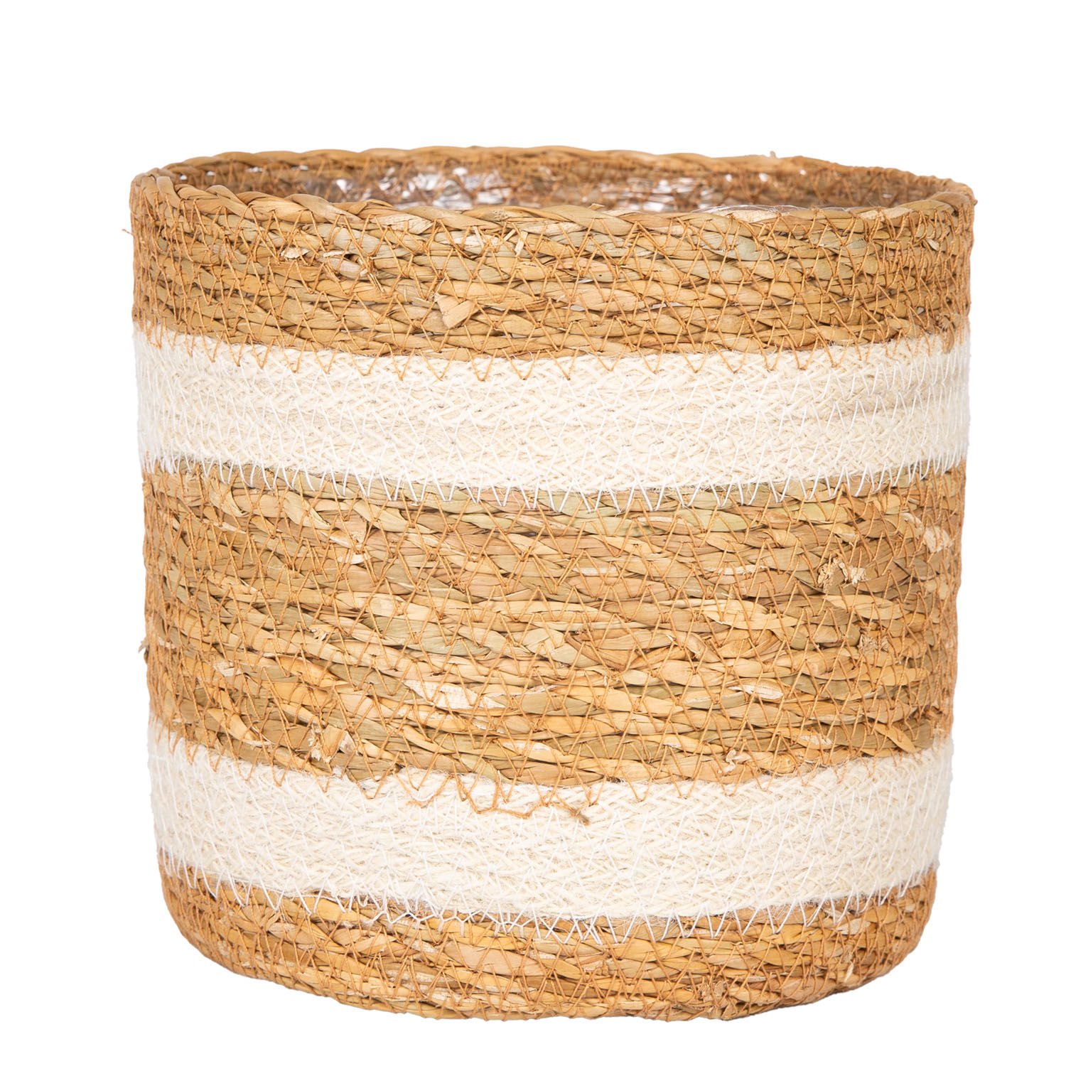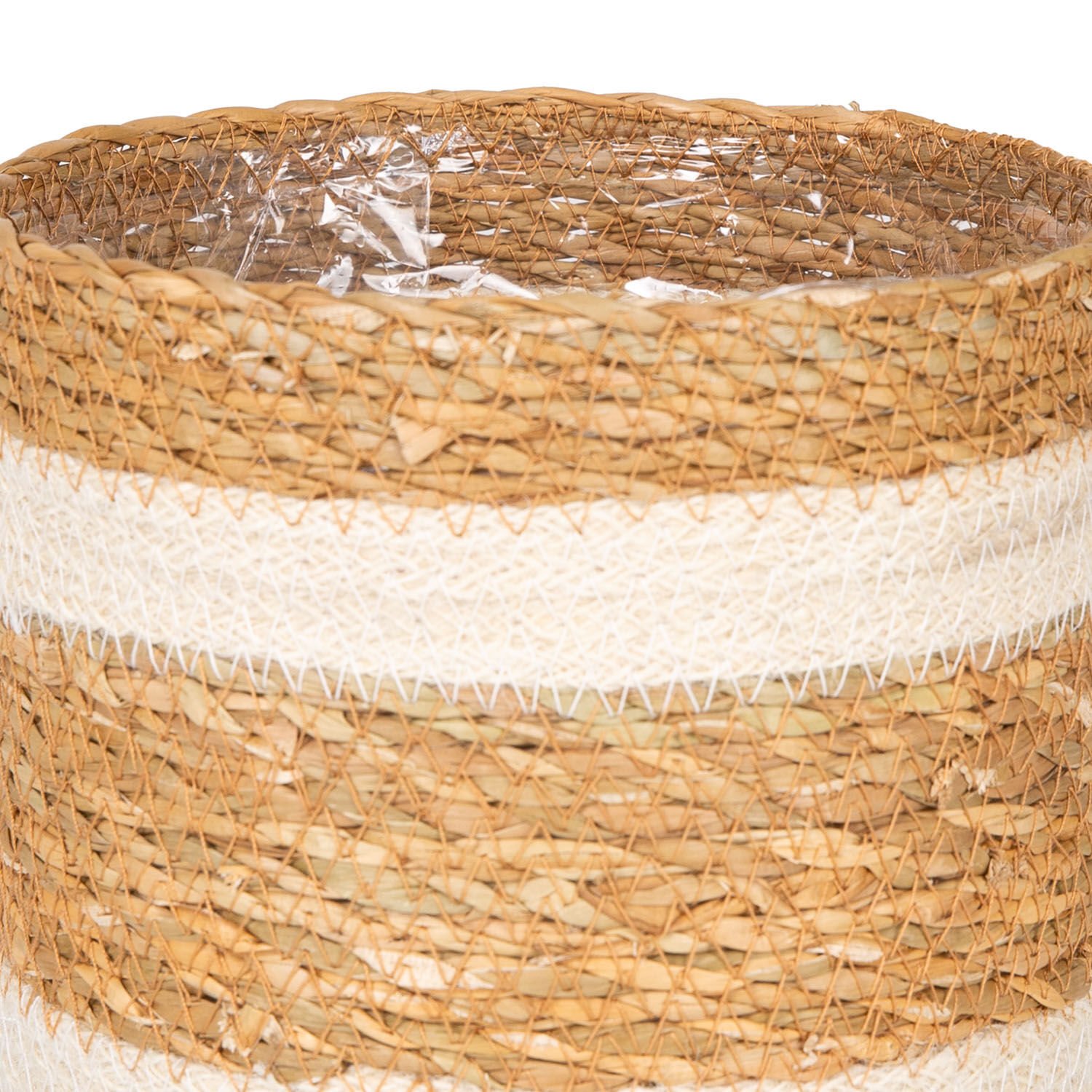 Doğal görünümüyle ortama sıcaklık katan Beyaz Şeritli Naylon İçli hasır dekoratif sepet, fonksiyonel depolama seçeneği sunan mükemmel bir tasarıma sahiptir. Bu sepetler mutfağınızın , odalarınızın , balkonlarınızın daha derli toplu ve güzel görünmesini sağlayacak ve ayrıca yapay çiçek , bitki ve ağaçlarınızı içine koyabileceğiniz çok fonksiyonlu kullanım alanı olan bir üründür. .