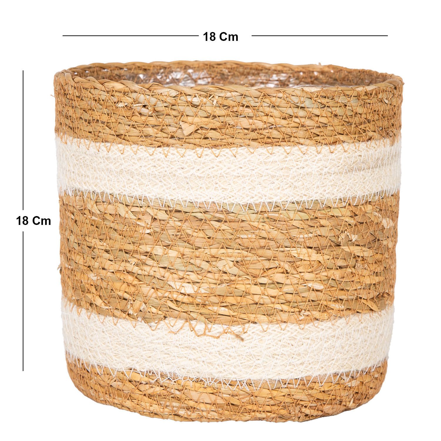 Hasır Sepet Beyaz Şeritli Naylon İçli Naturel 18X18 Cm.