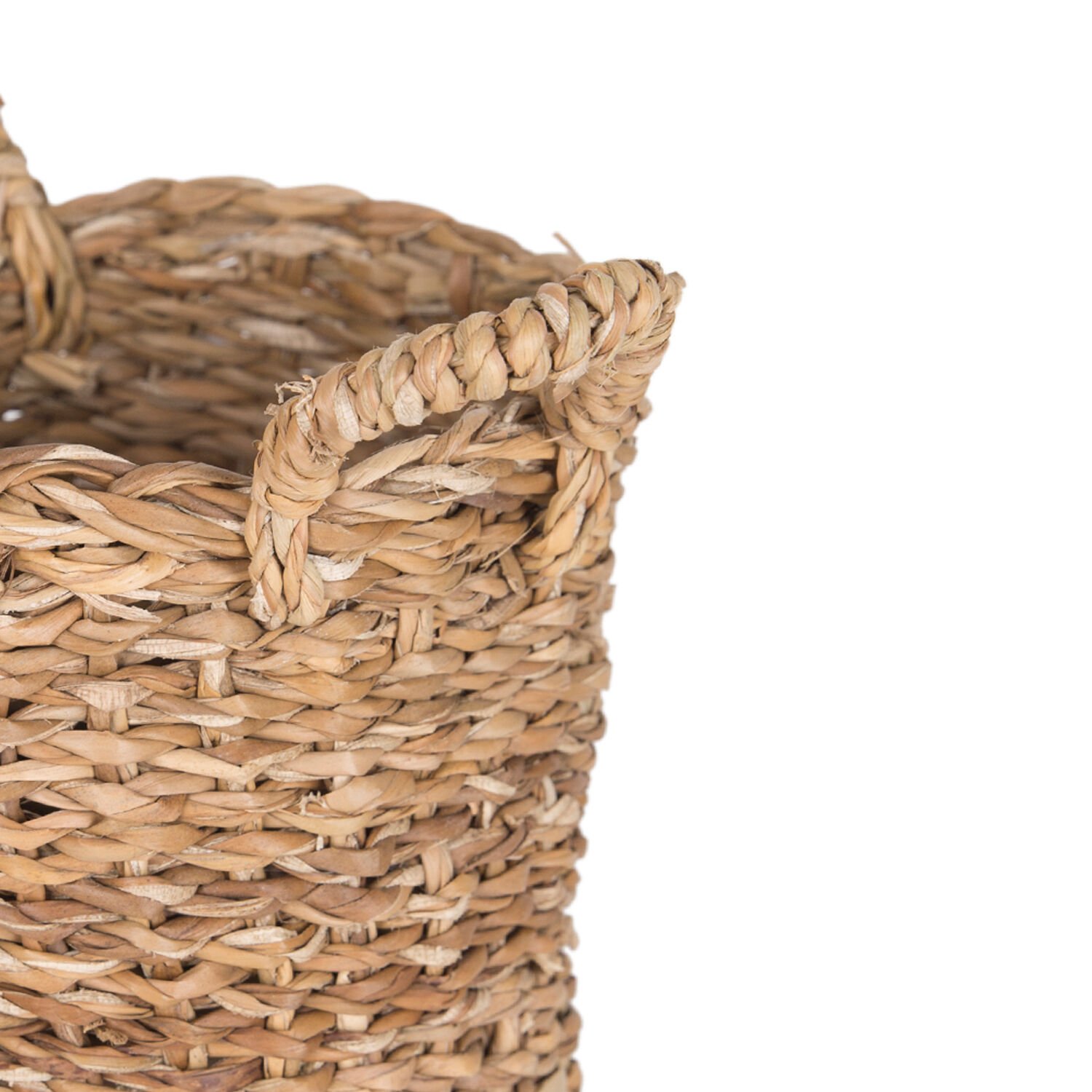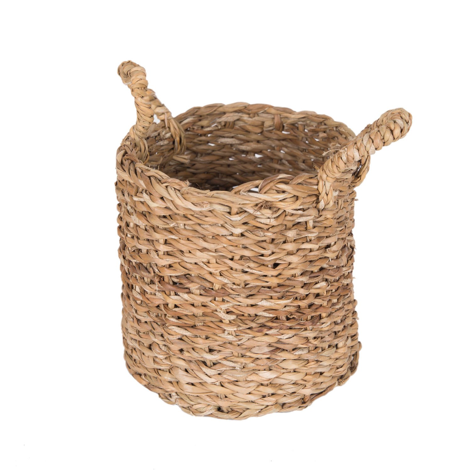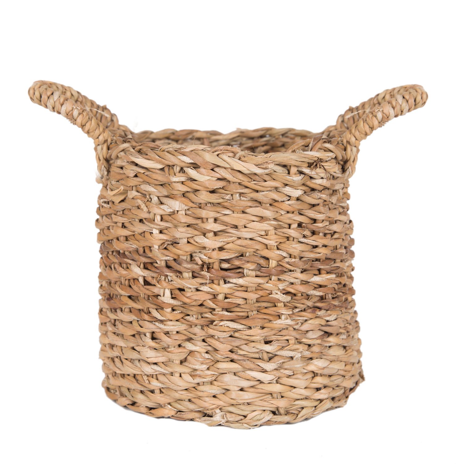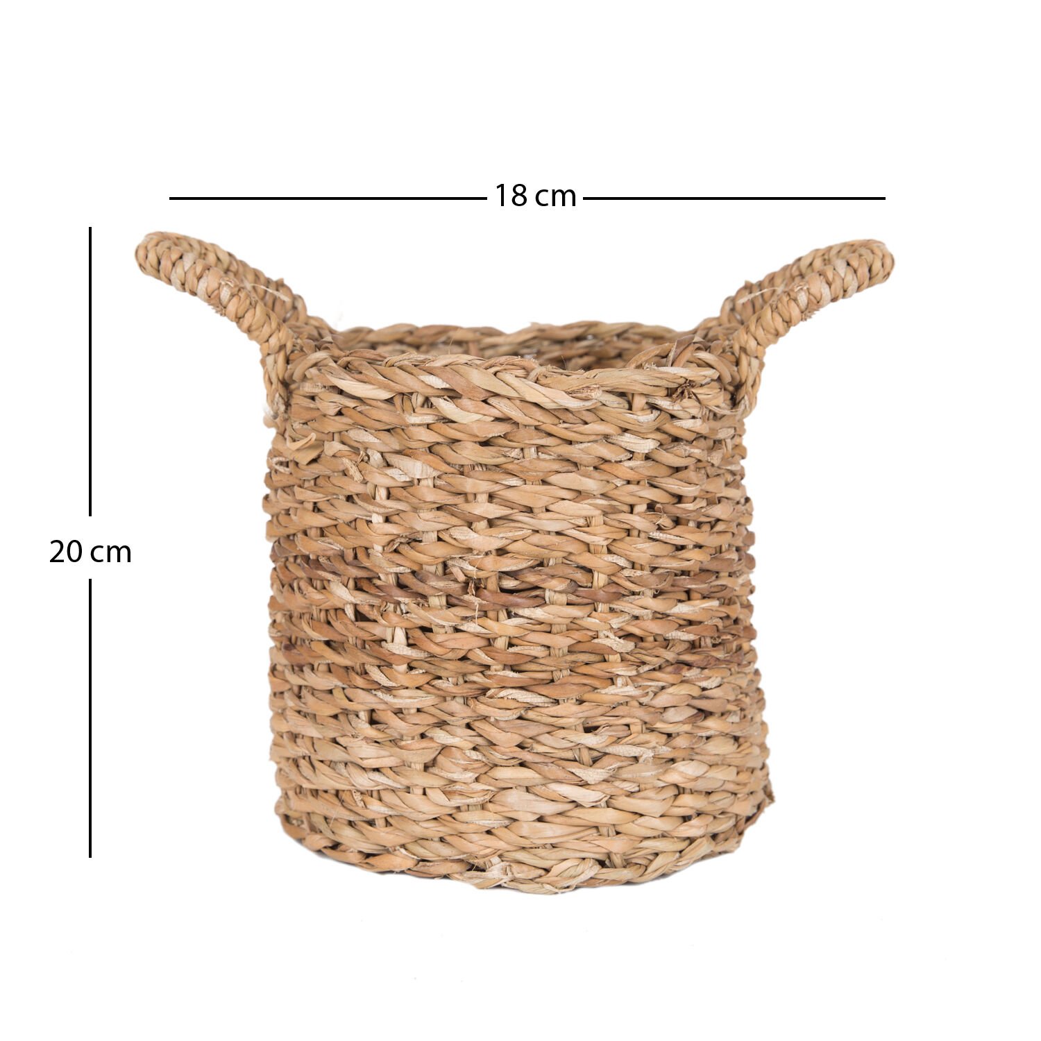 Hasır Sepet, Dekoratif, Yuvarlak, Kulplu, Natural - 18 x 20 cm