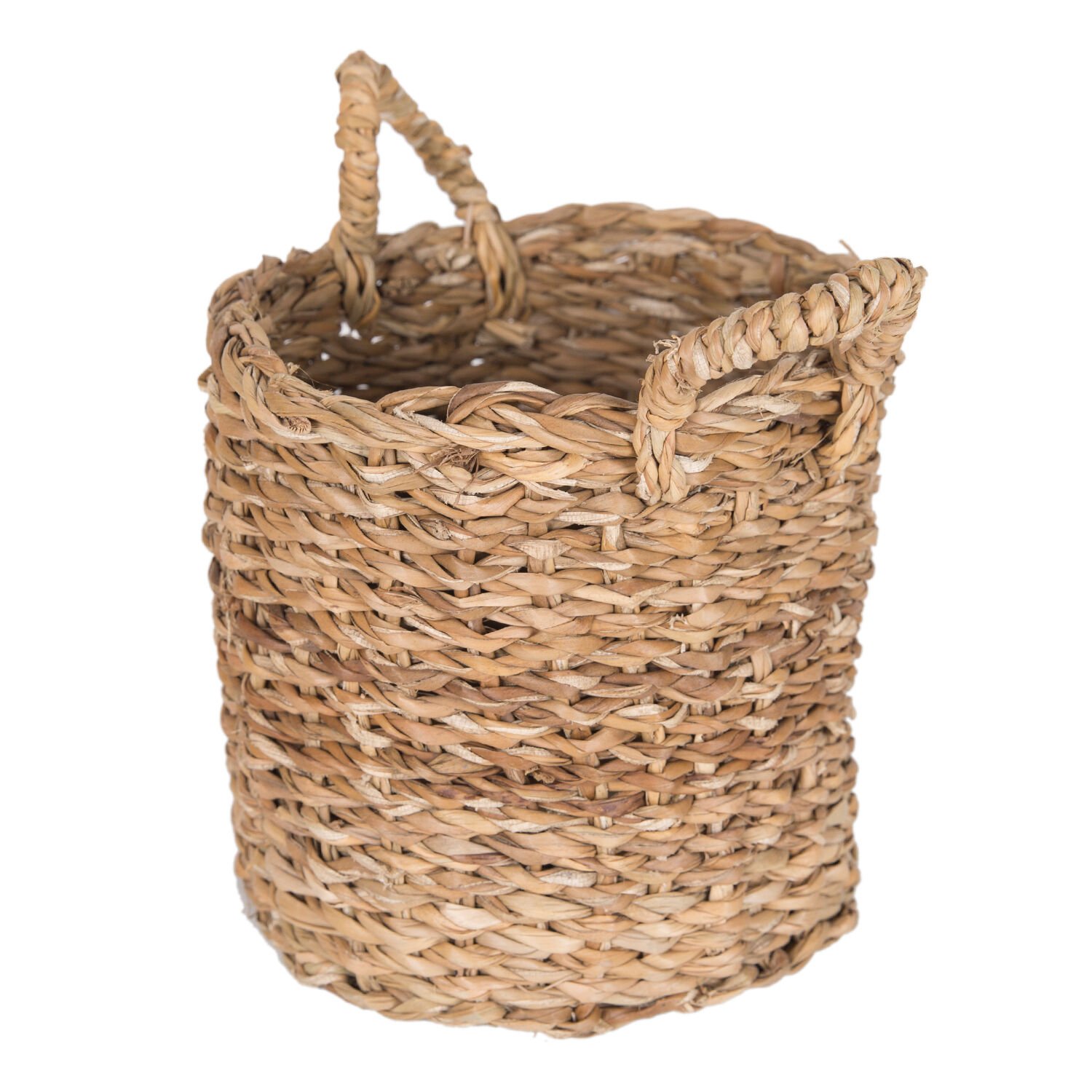 Dekoratif Yuvarlak Hasır Sepet Kulplu Natural 18 X 20 Cm.