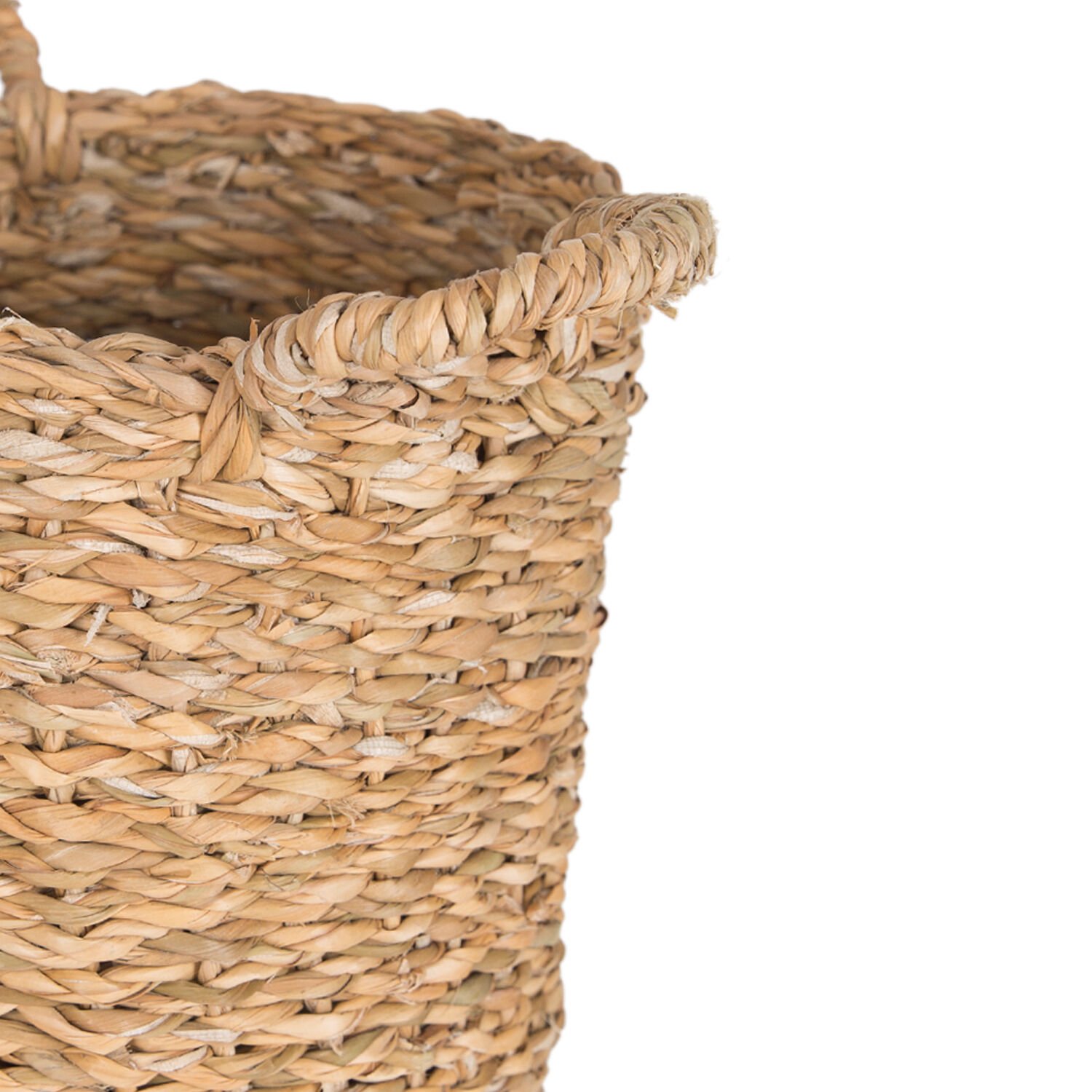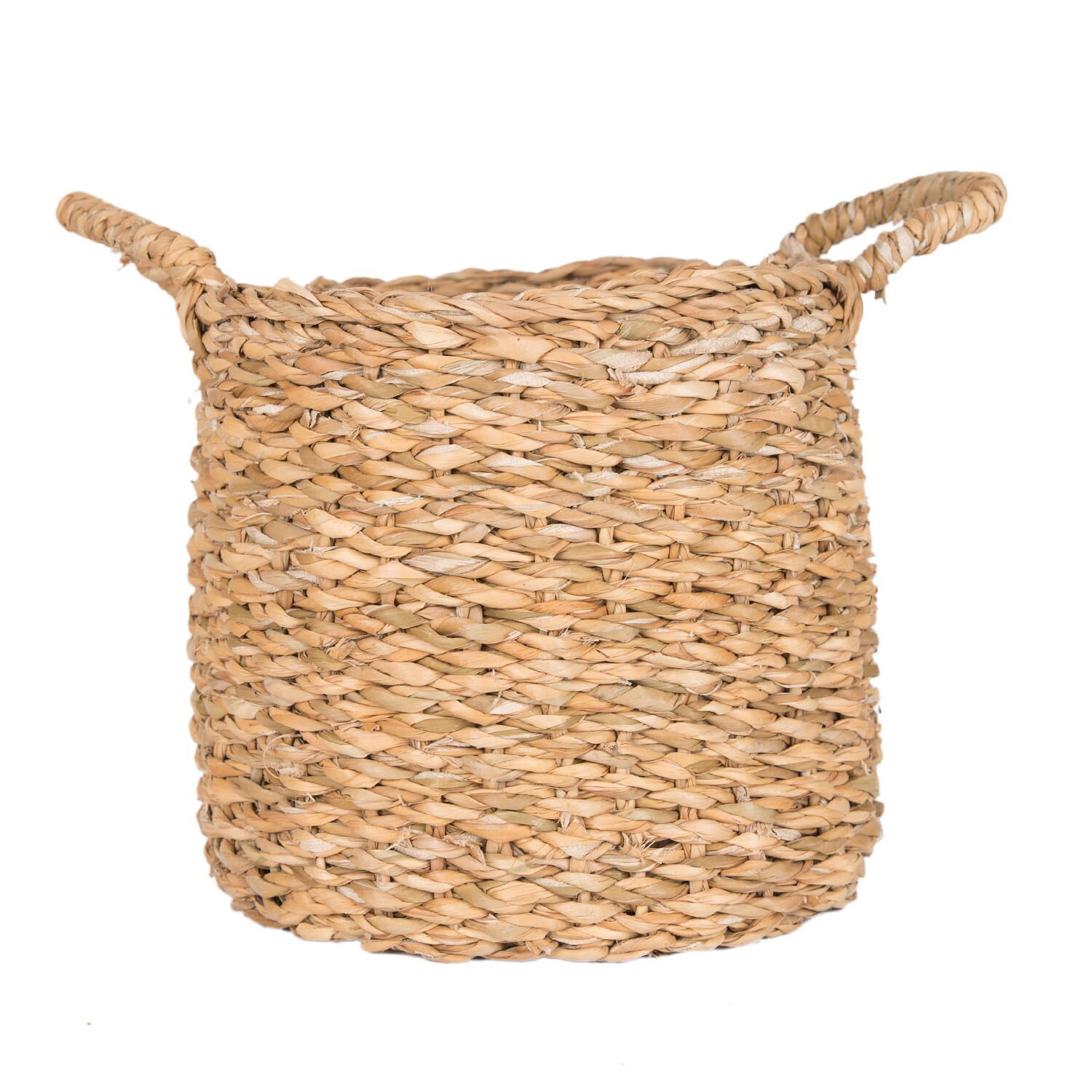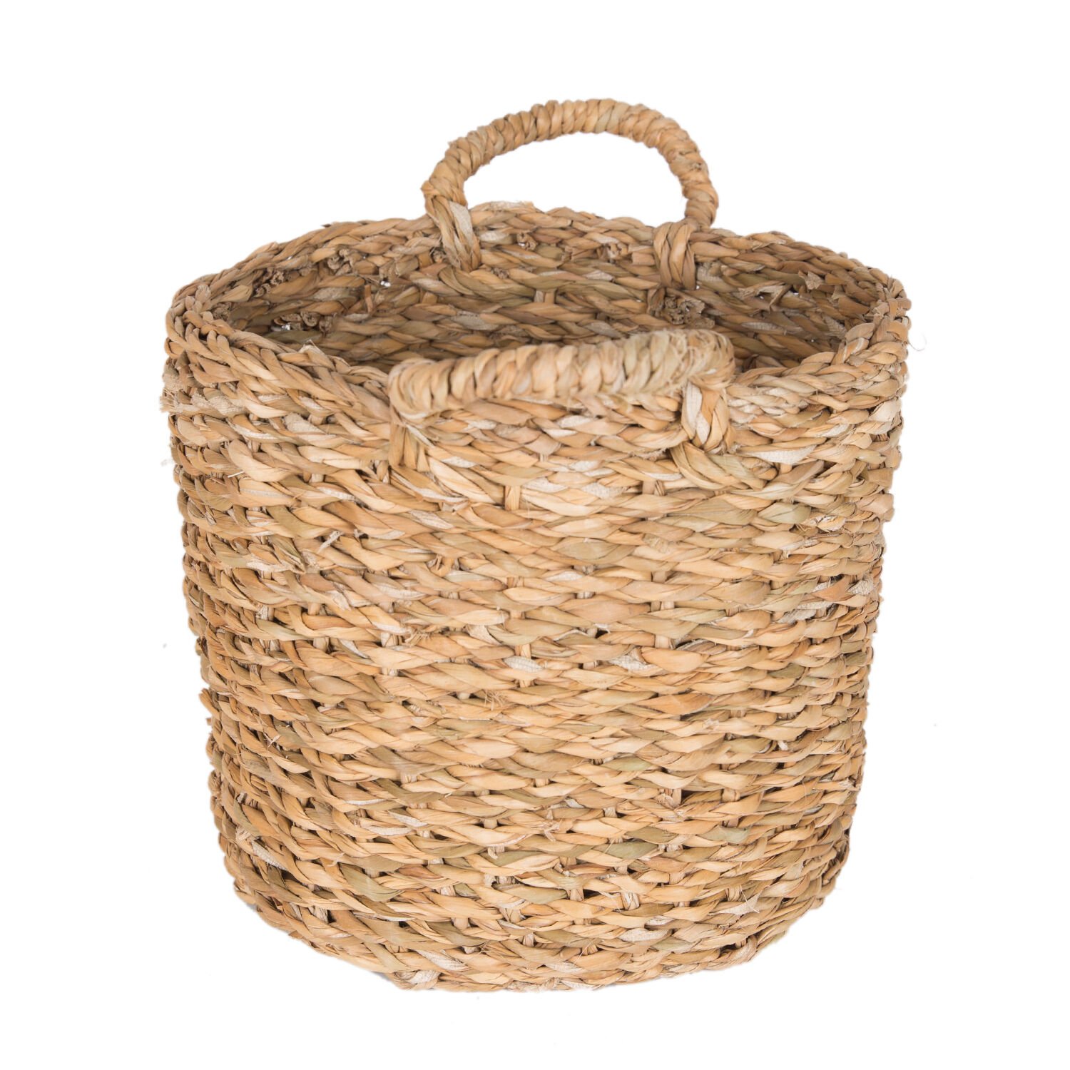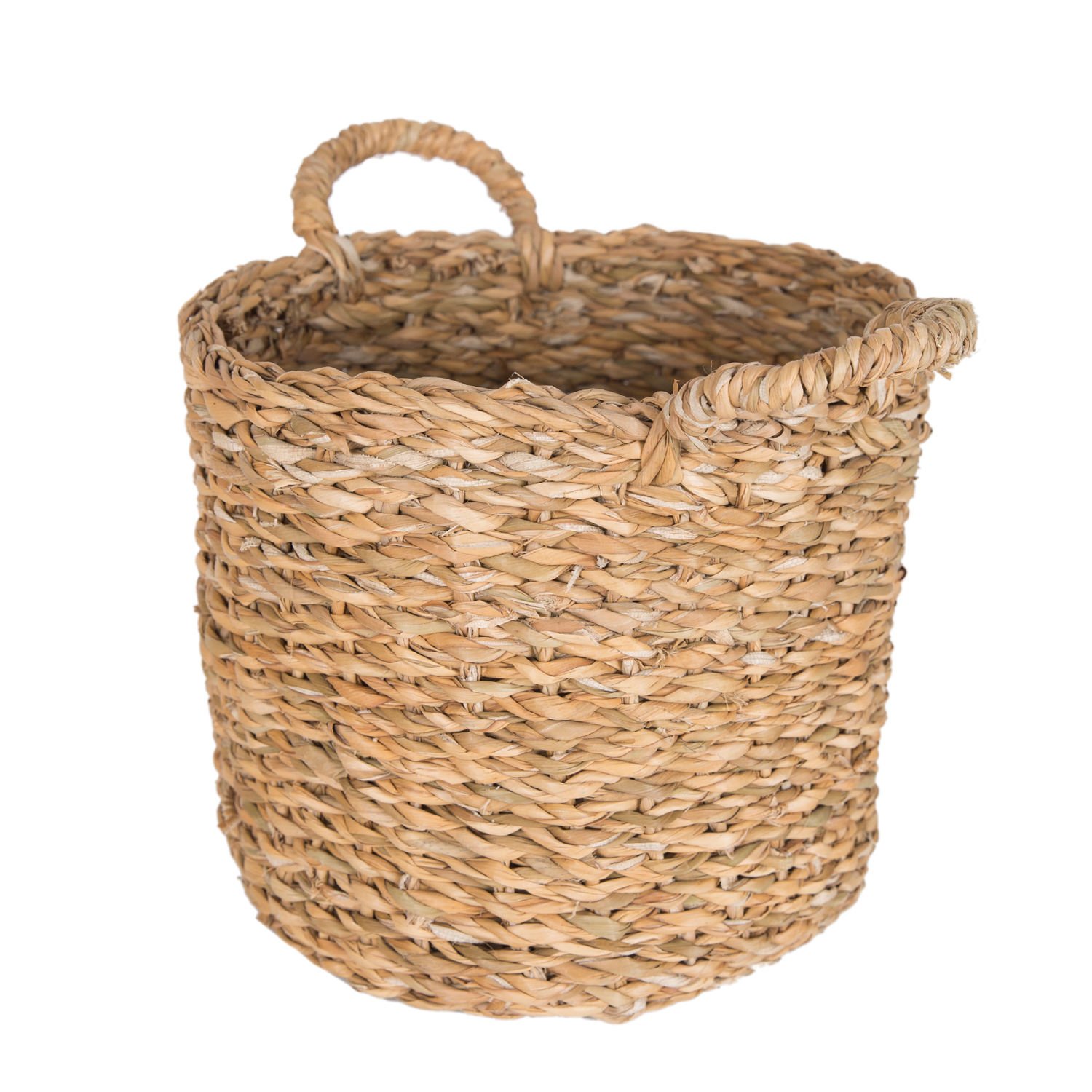 Dekoratif Yuvarlak Hasır Sepet Kulplu Natural 20 x 24 Cm.