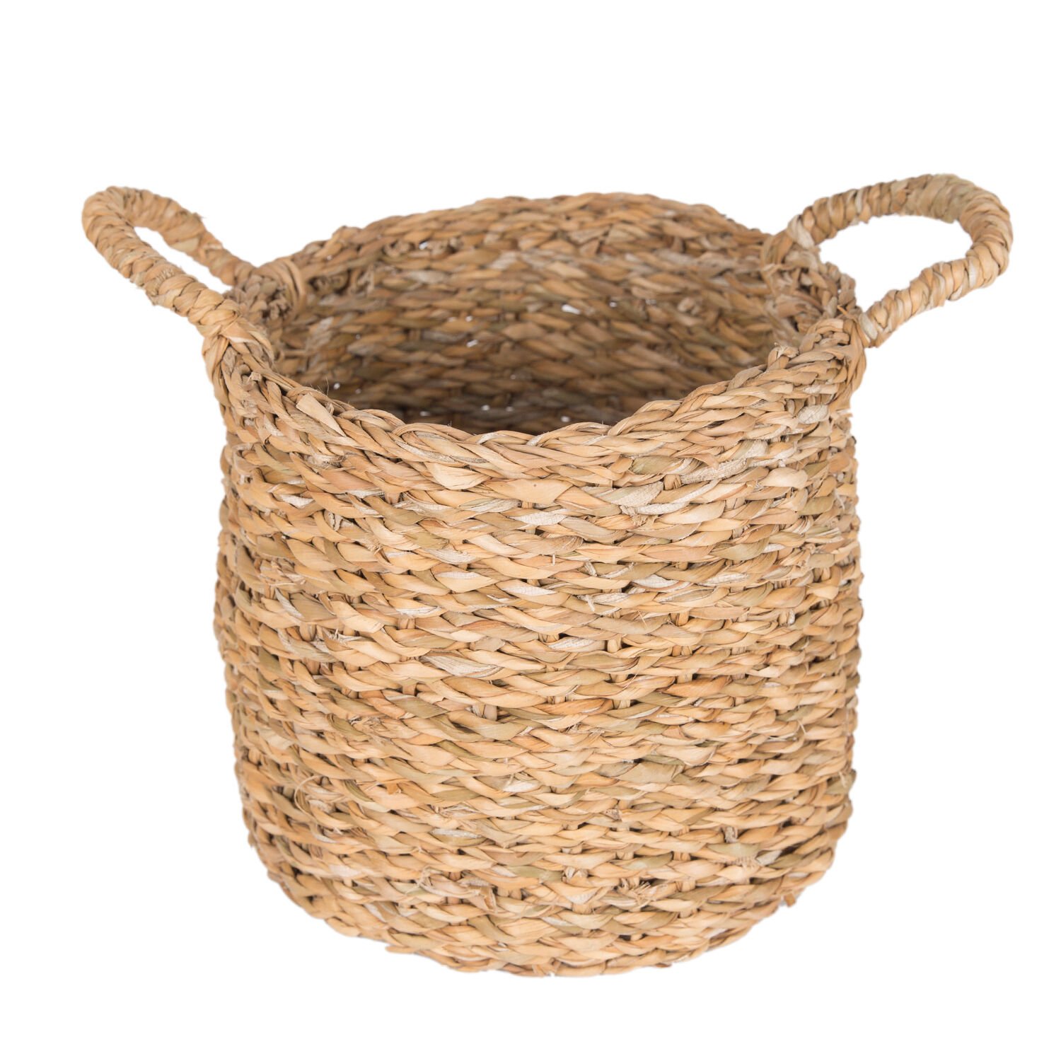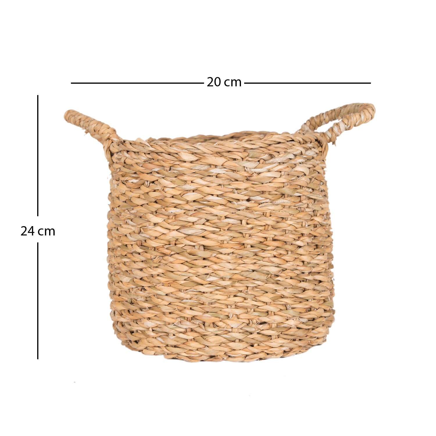 Hasır Sepet, Dekoratif, Yuvarlak, Kulplu, Natural - 20 x 24 cm