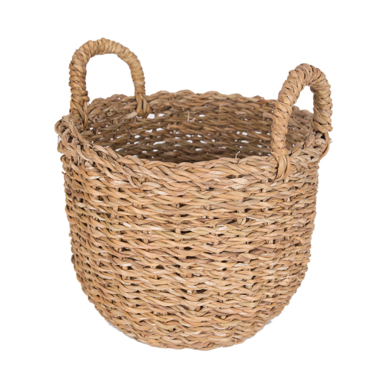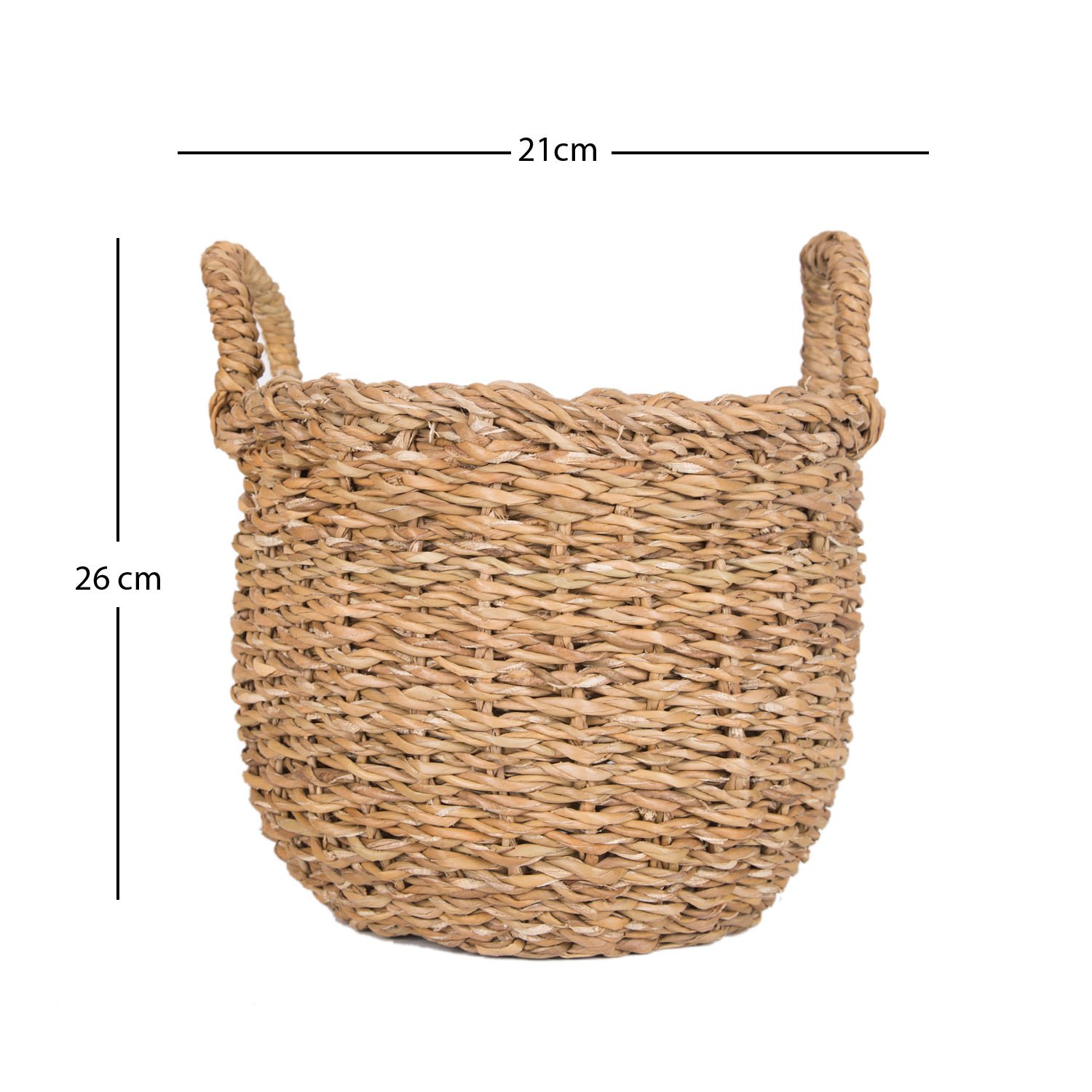 Hasır Sepet, Dekoratif, Yuvarlak, Kulplu, Natural - 21 x 26 cm