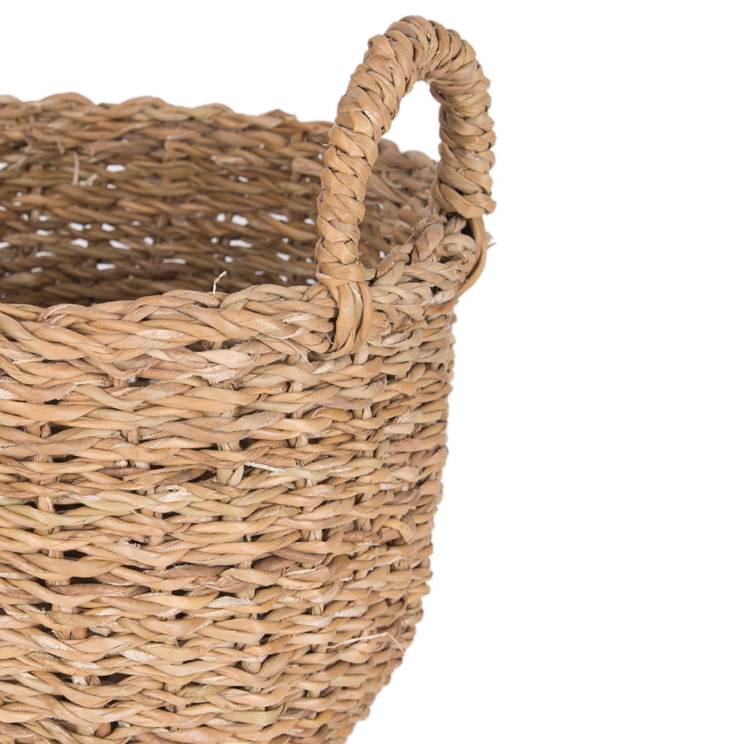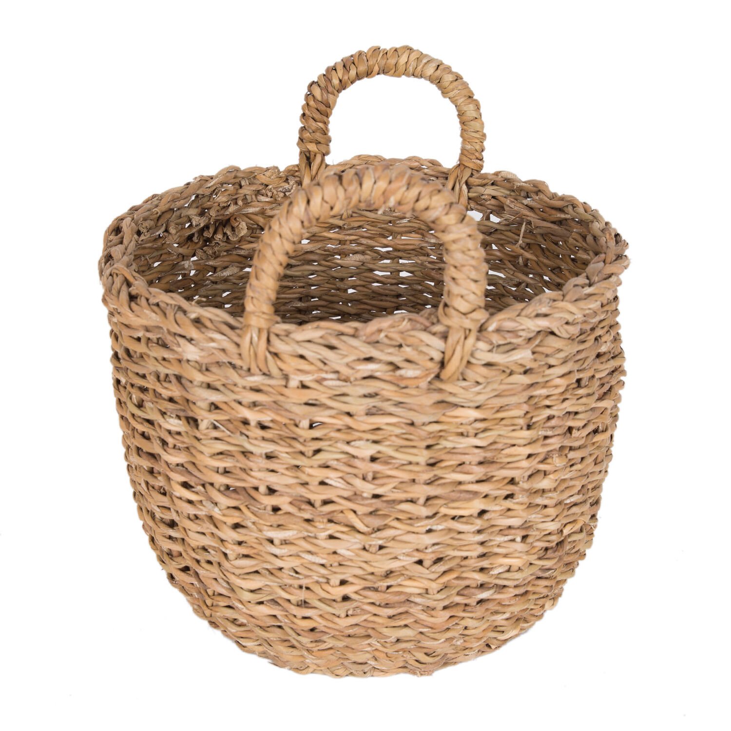 Dekoratif Yuvarlak Hasır Sepet Kulplu Natural 21 X 26 Cm.