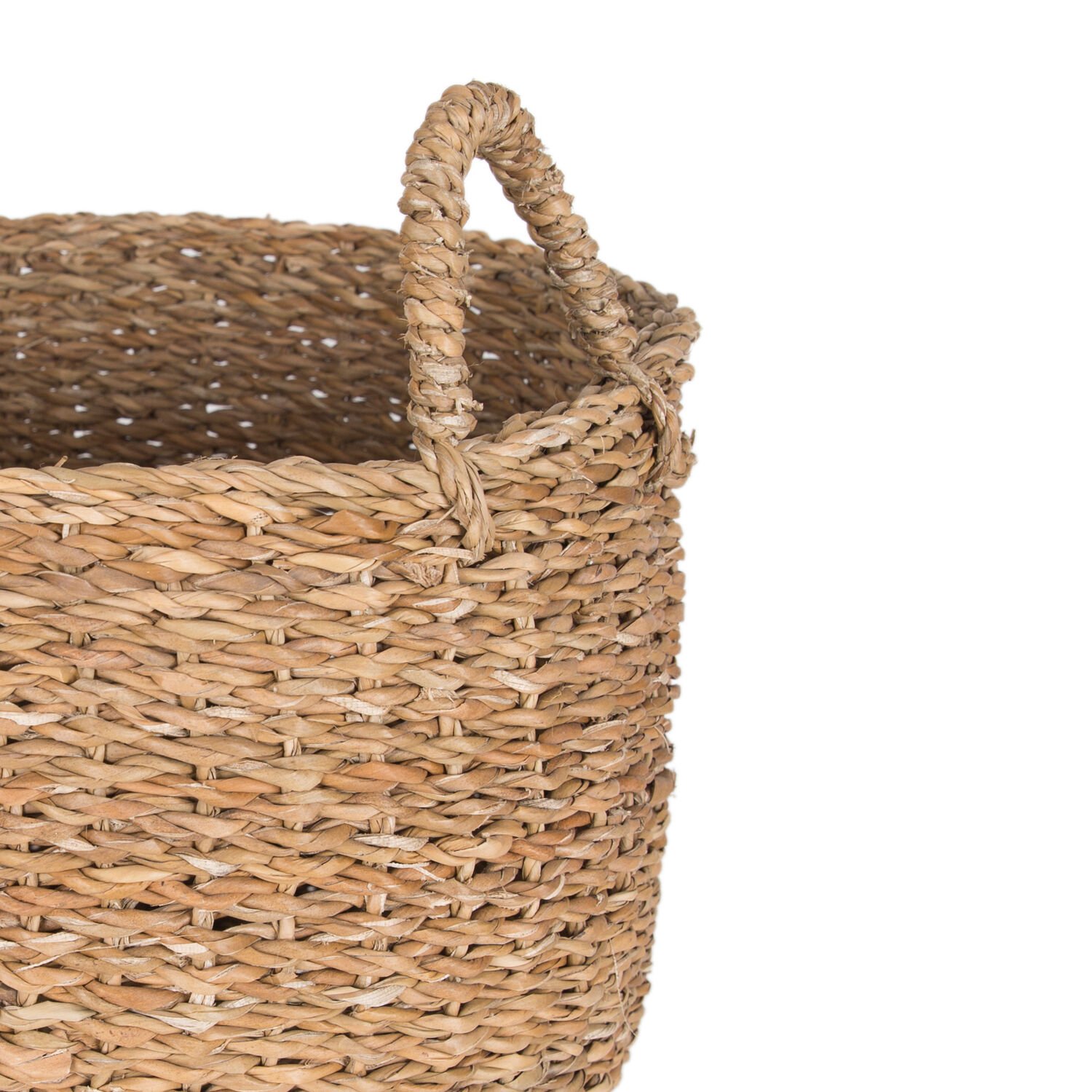 Dekoratif Yuvarlak Hasır Sepet Kulplu Natural 36 X 30 Cm.