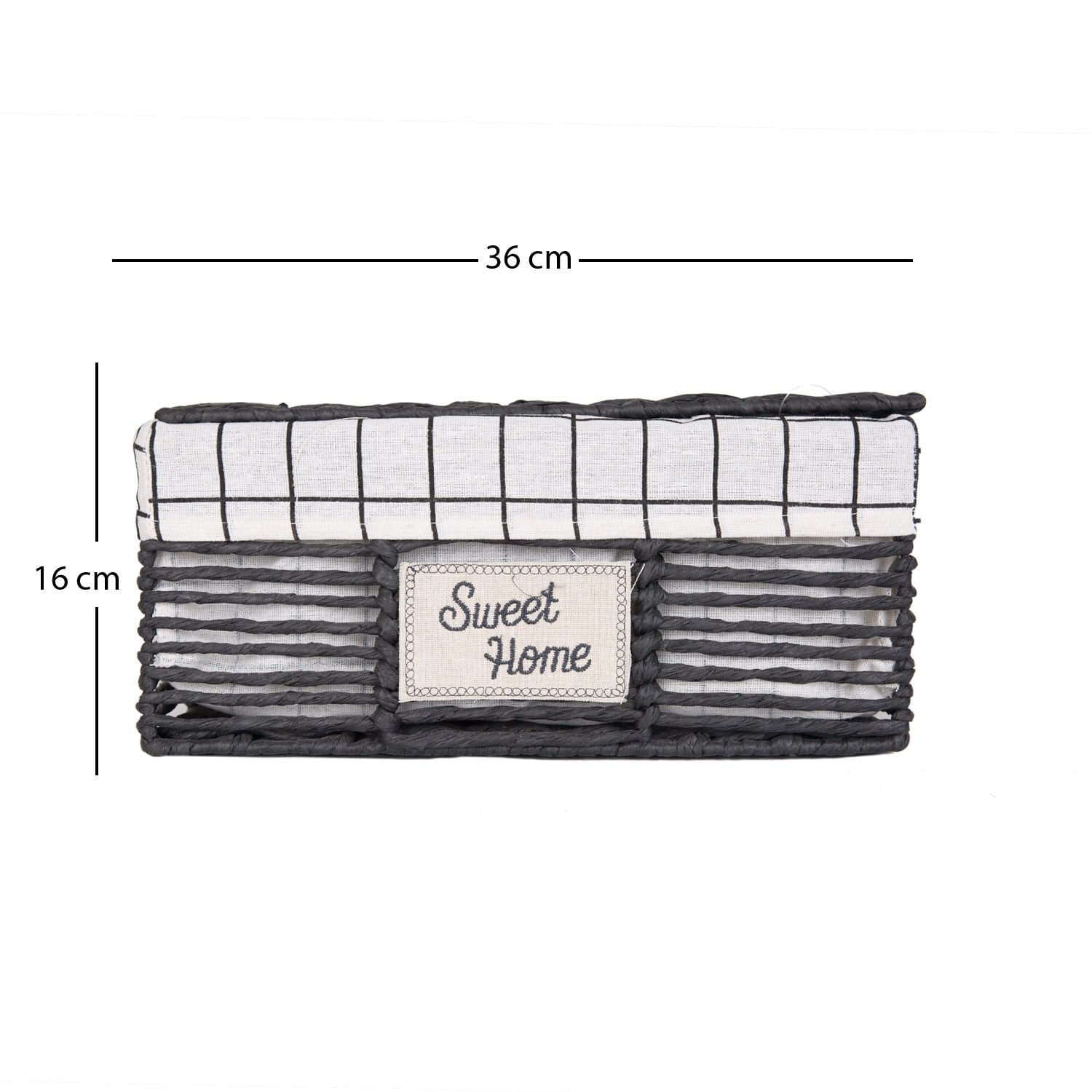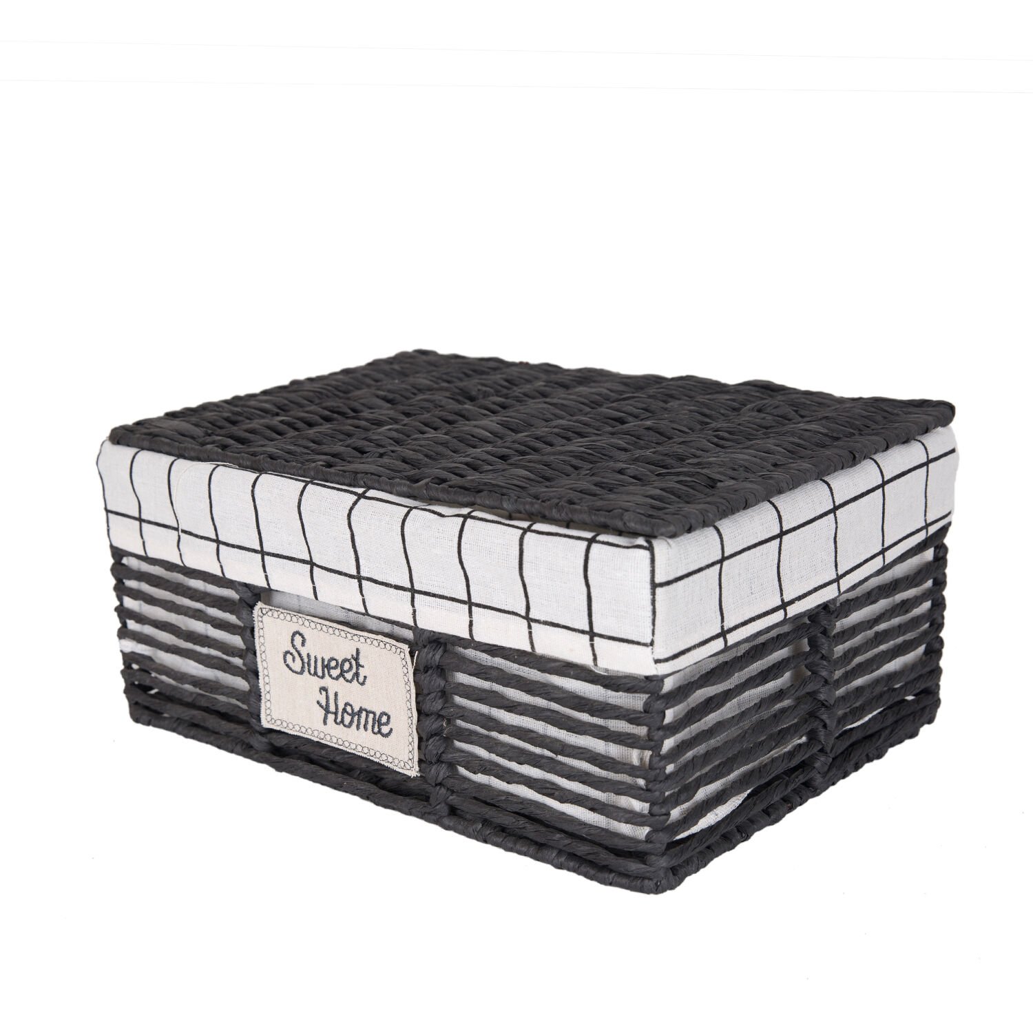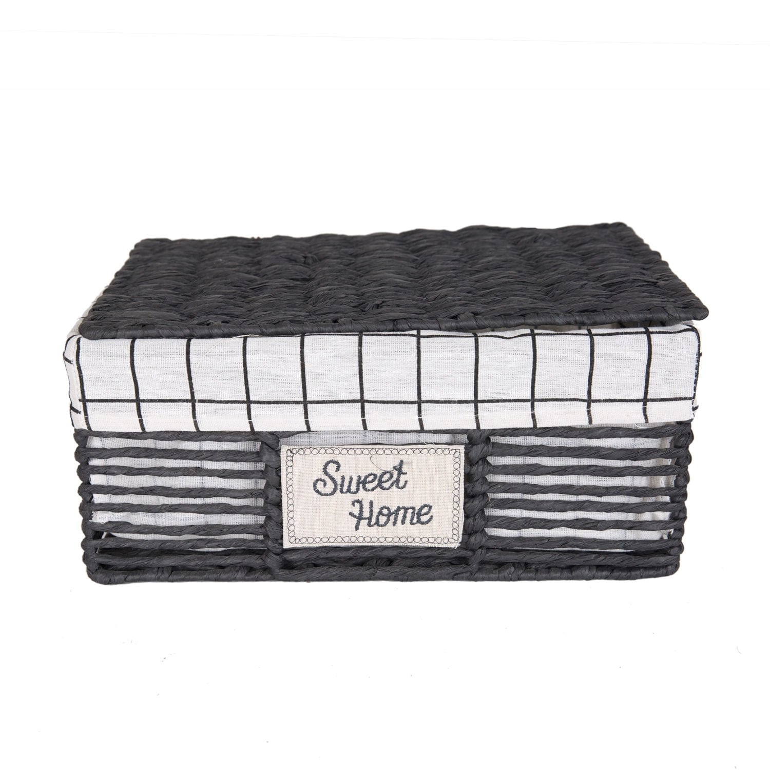 Hasır Sepet, Dikdörtgen, Sweethome, Kapaklı, Siyah - Beyaz Kare Kumaş İçli, 36 x 16 x 25 cm