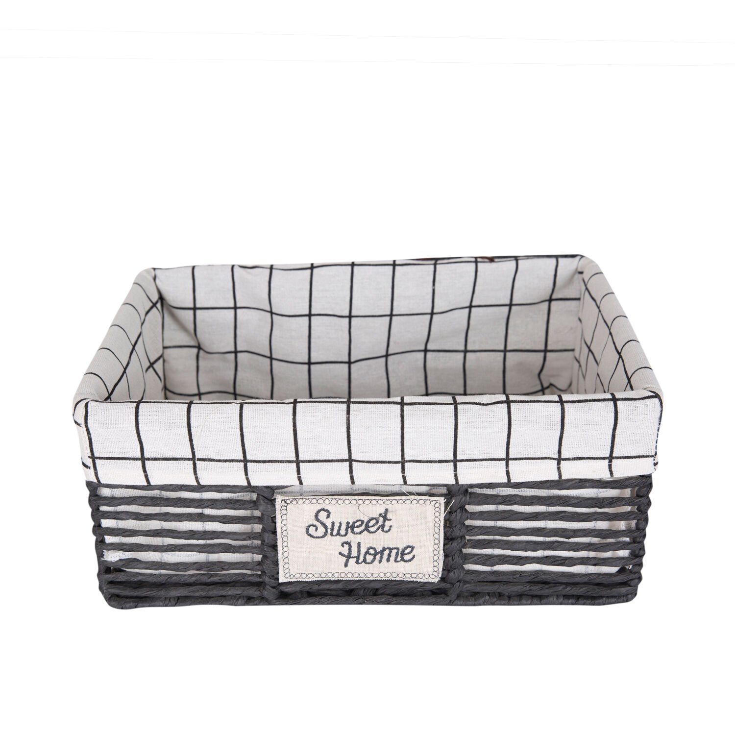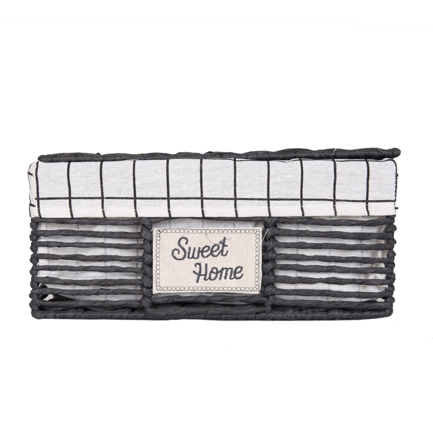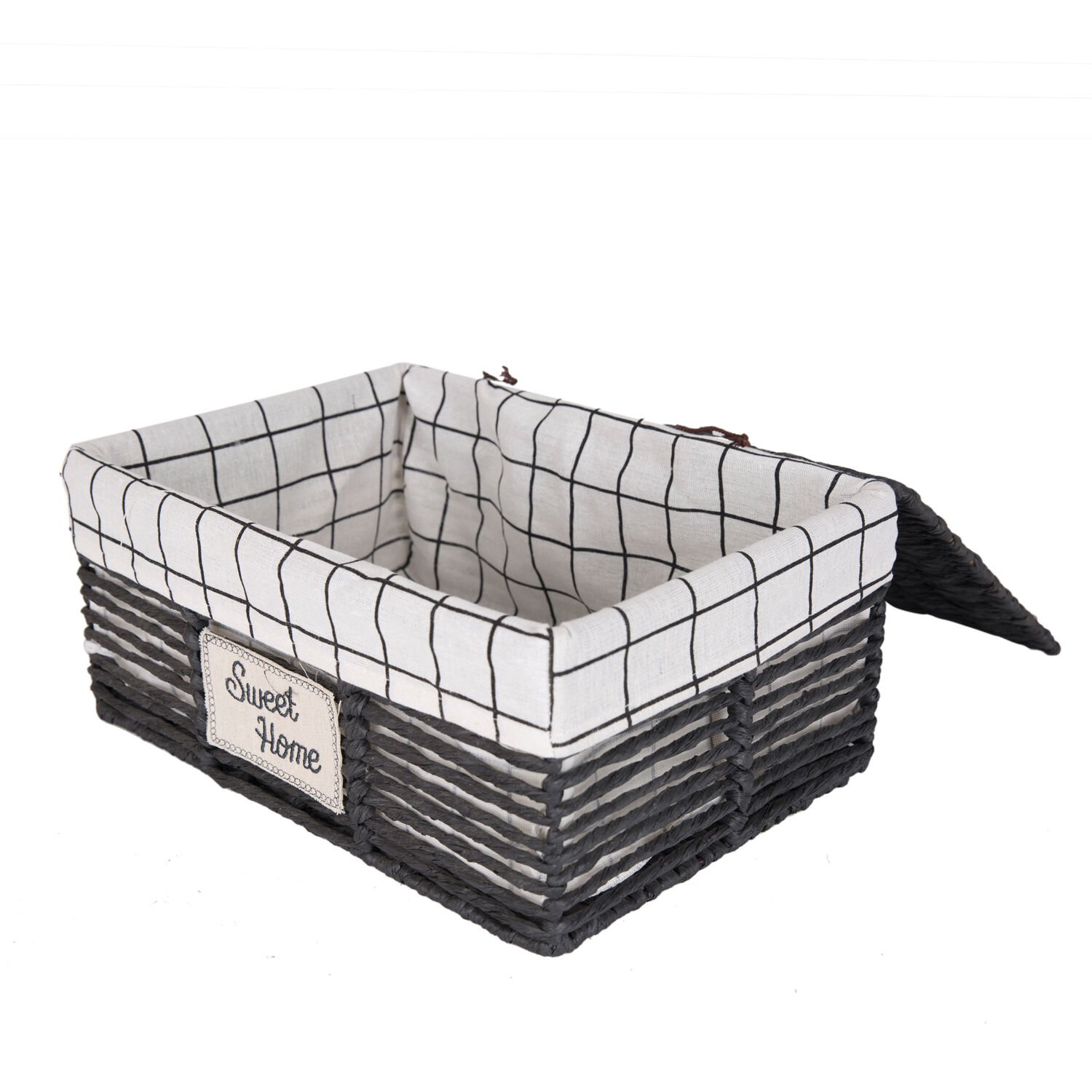 Hasır Sepet, Dikdörtgen, Sweethome, Kapaklı, Siyah - Beyaz Kare Kumaş İçli, 36 x 16 x 25 cm