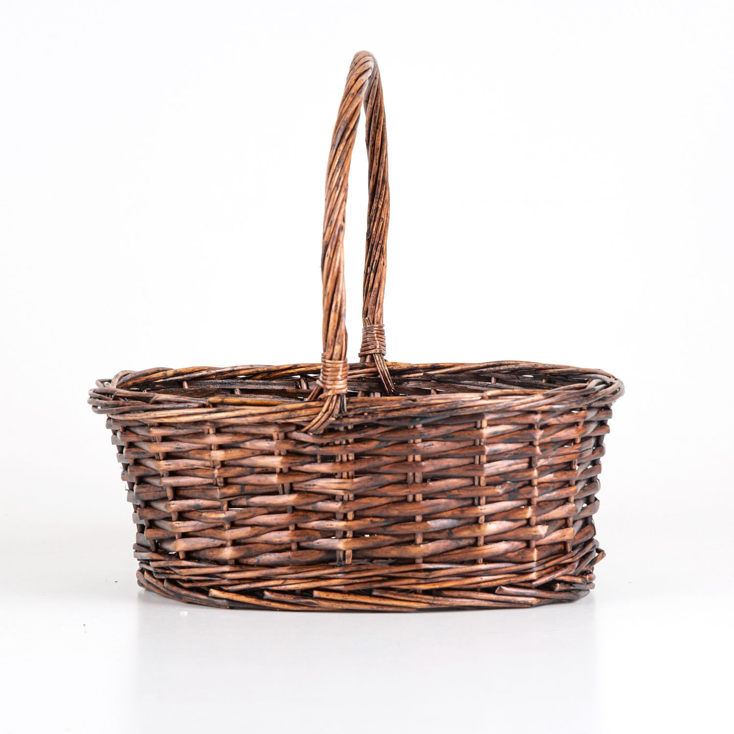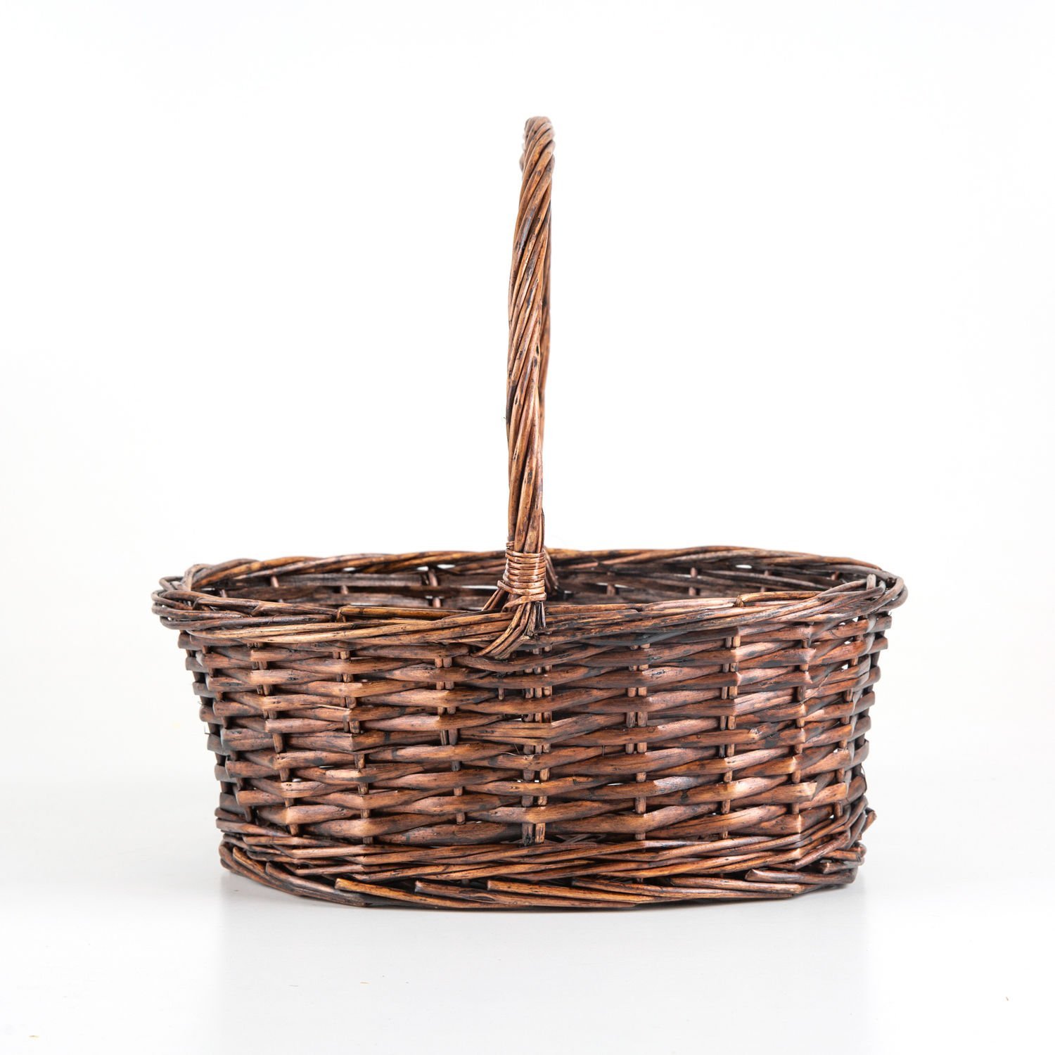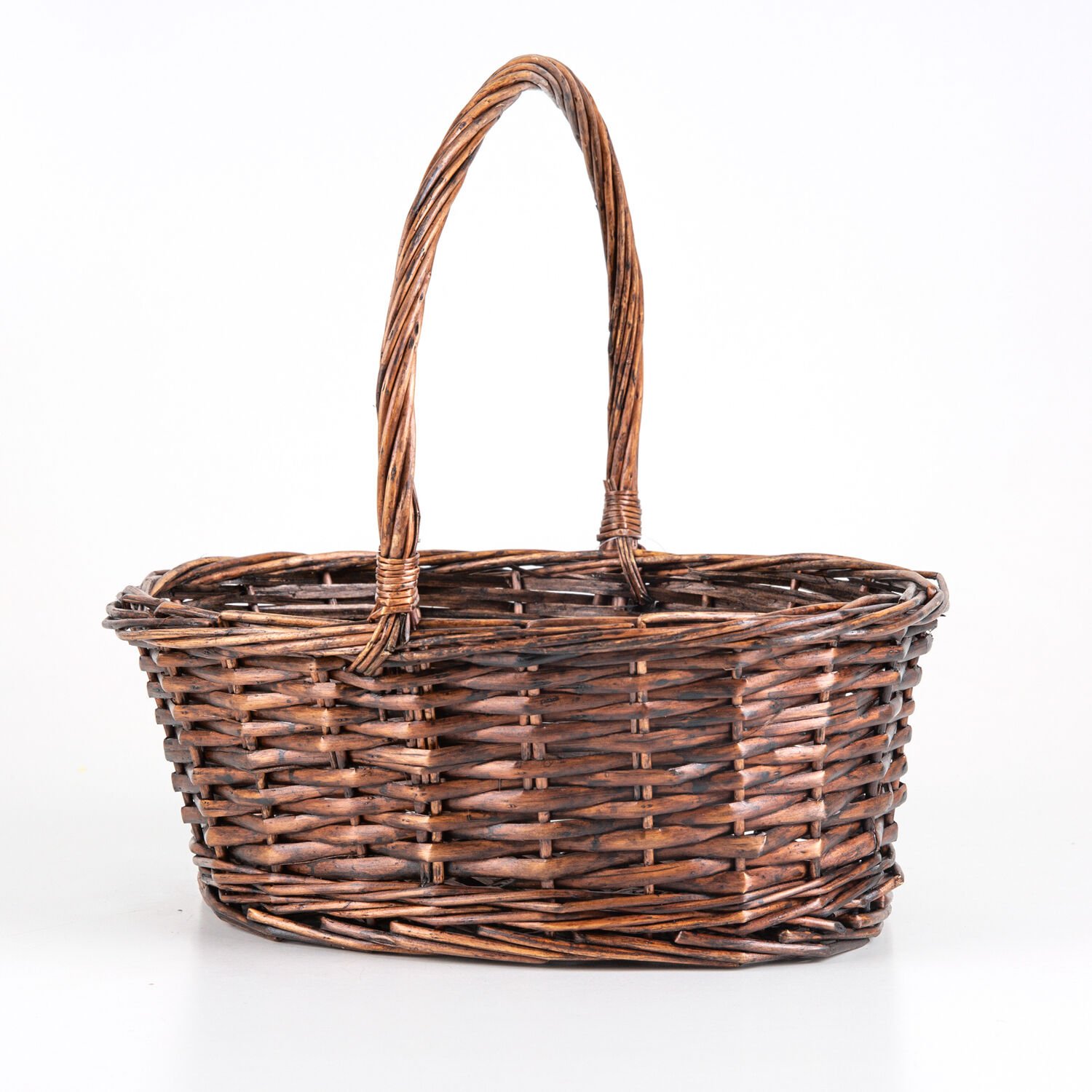 Oval Hasır Sepet Kulplu El Örmesi Kahverengi 33 x 32 Cm.