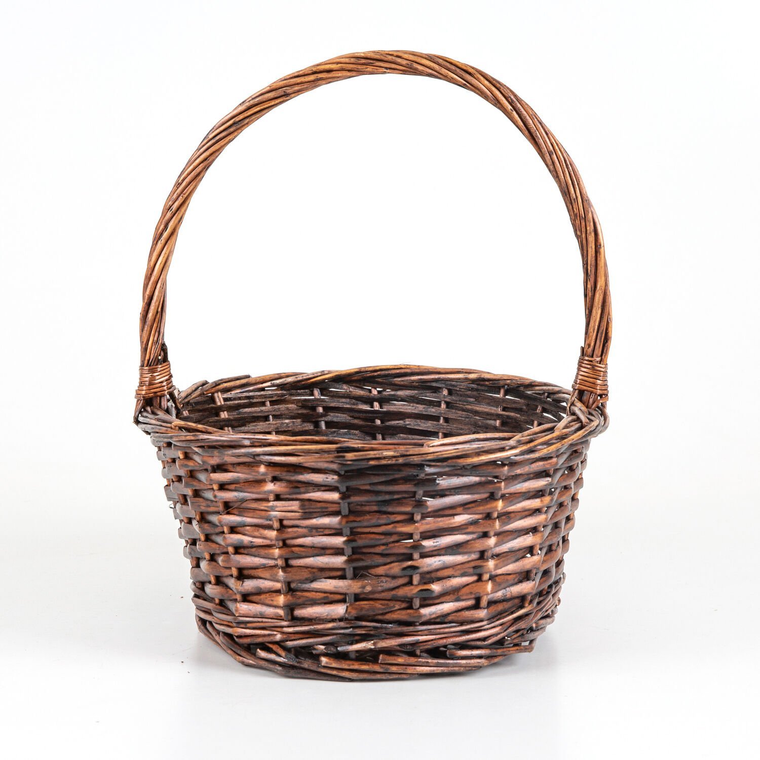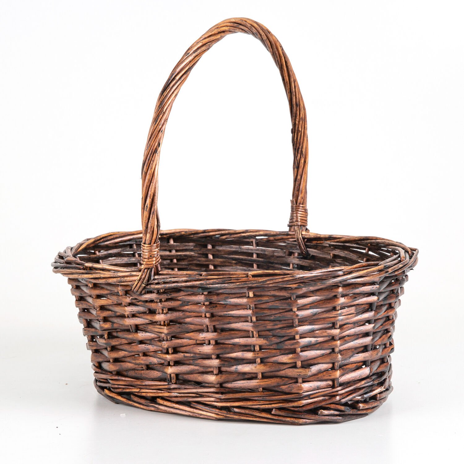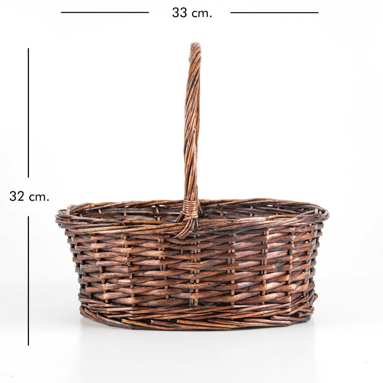 Oval Hasır Sepet Kulplu El Örmesi Kahverengi 33 x 32 Cm.