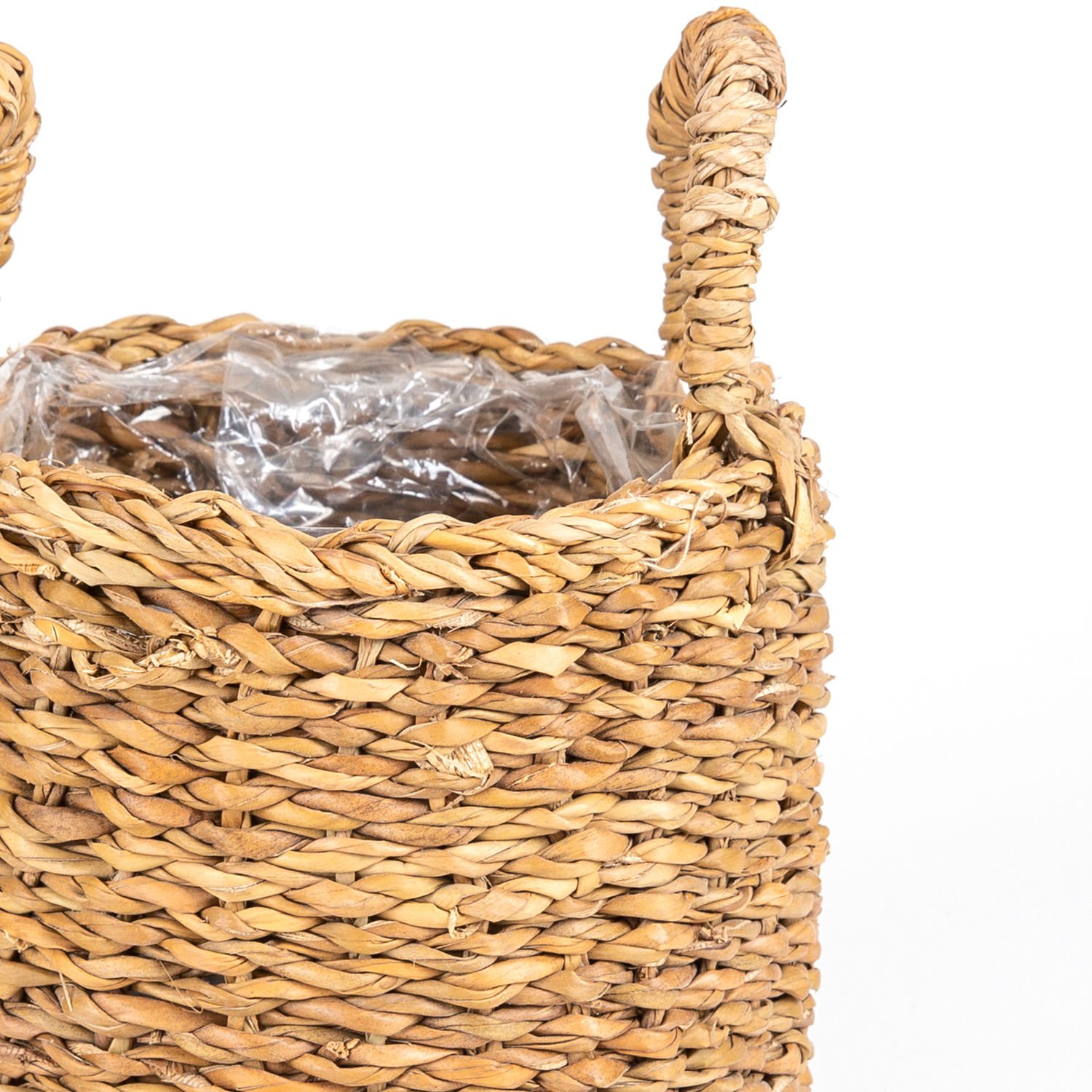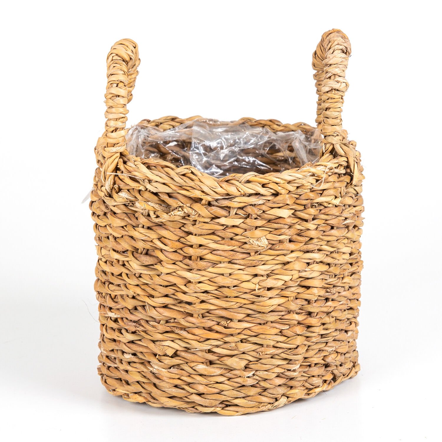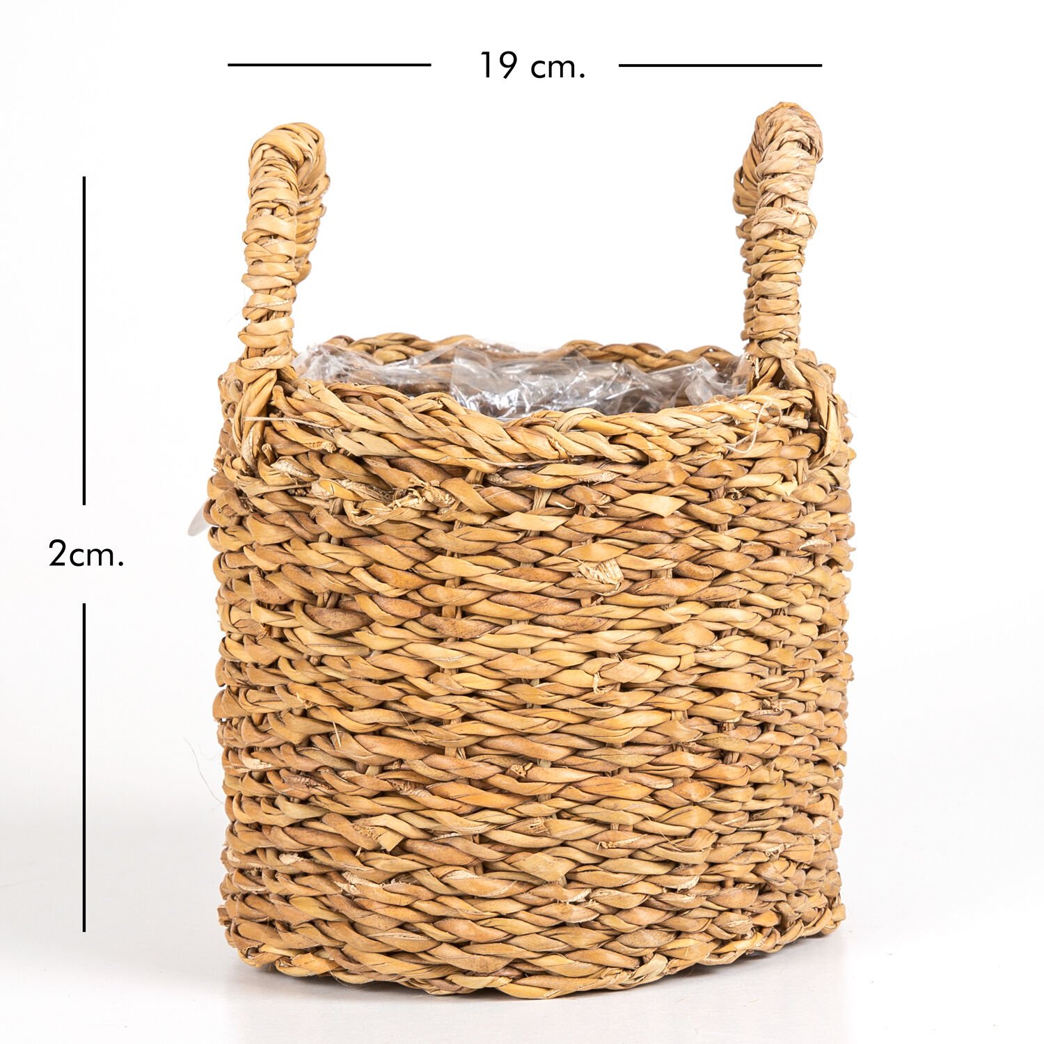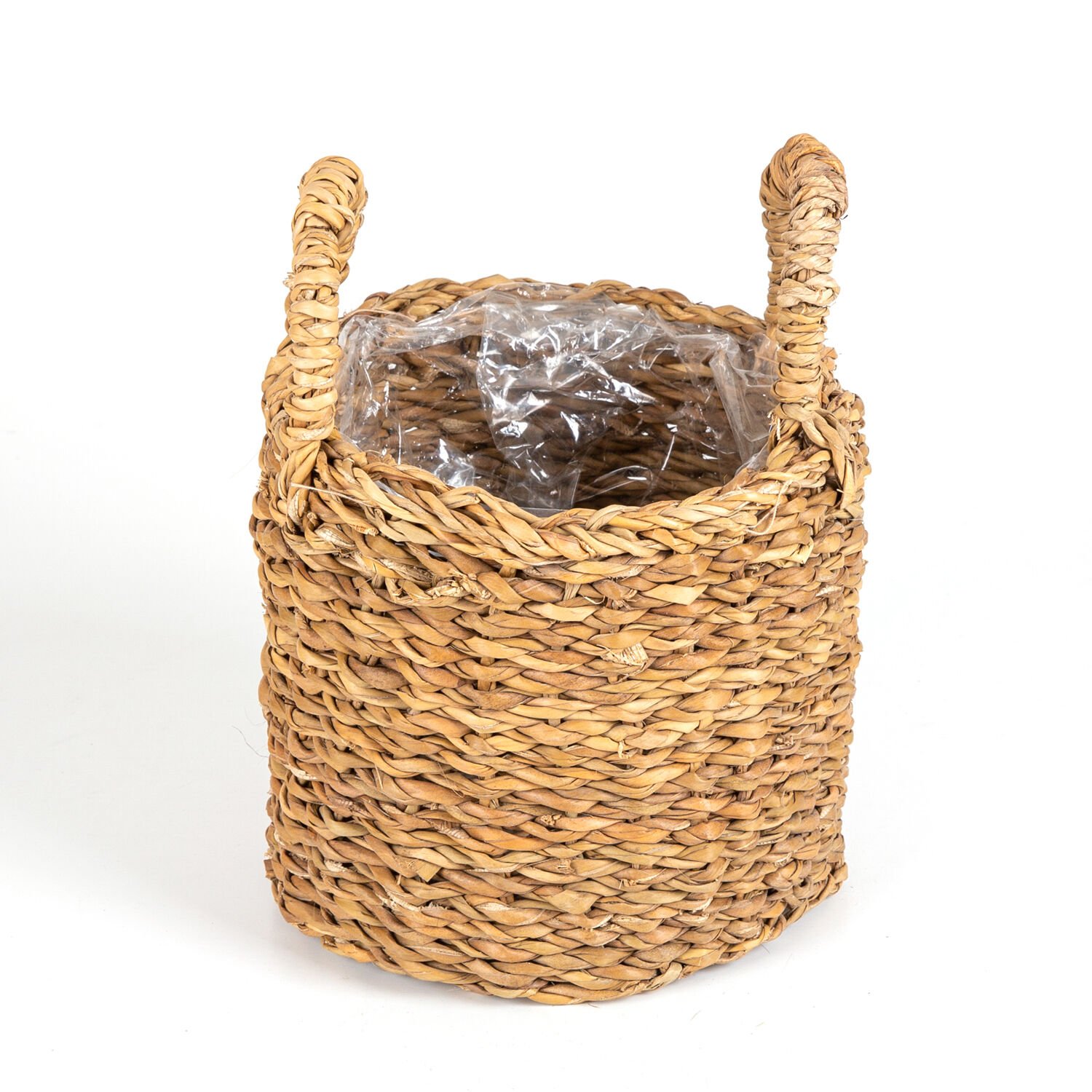 Kulplu İçi Naylonlu Hasır Sepet Natural 19 x 22 Cm.