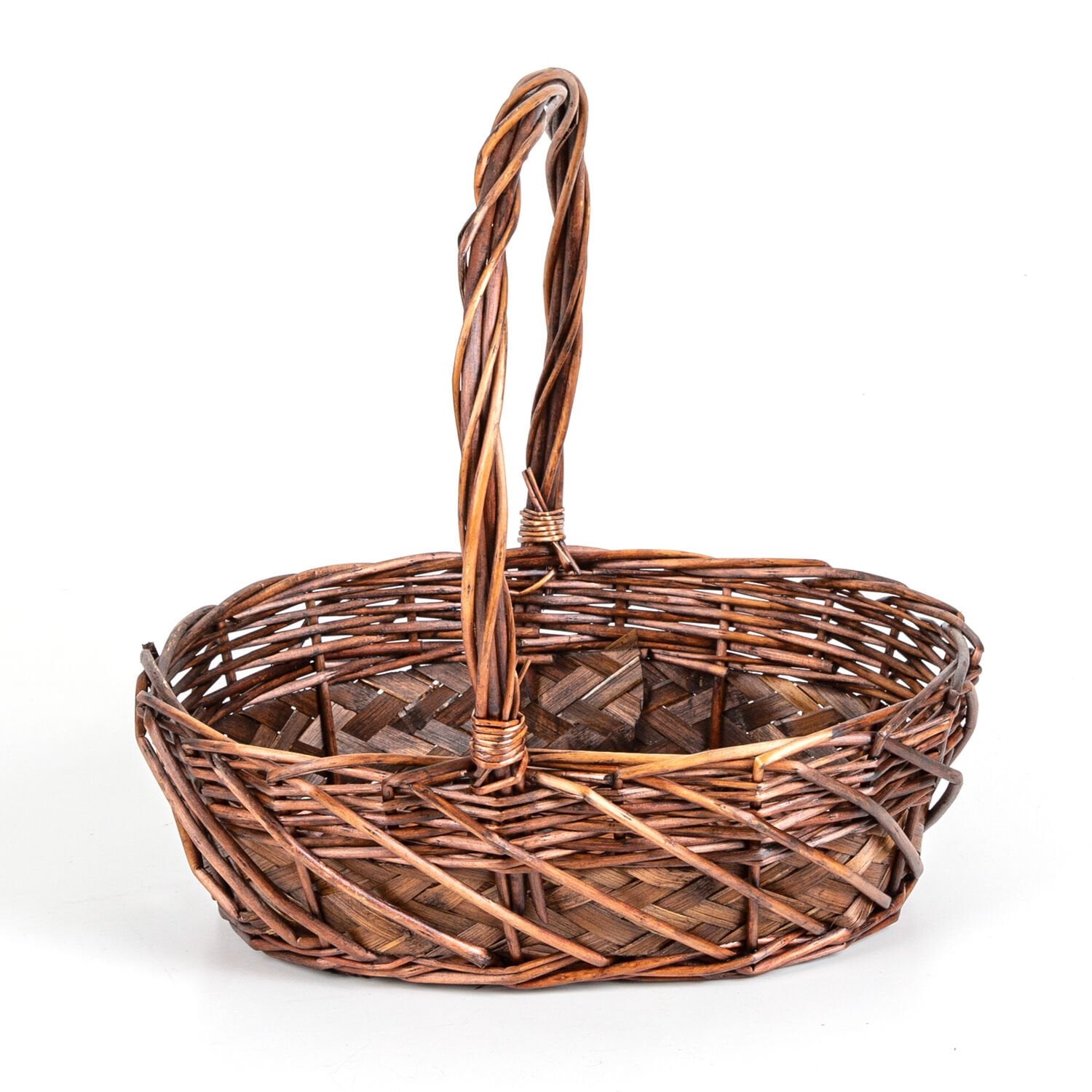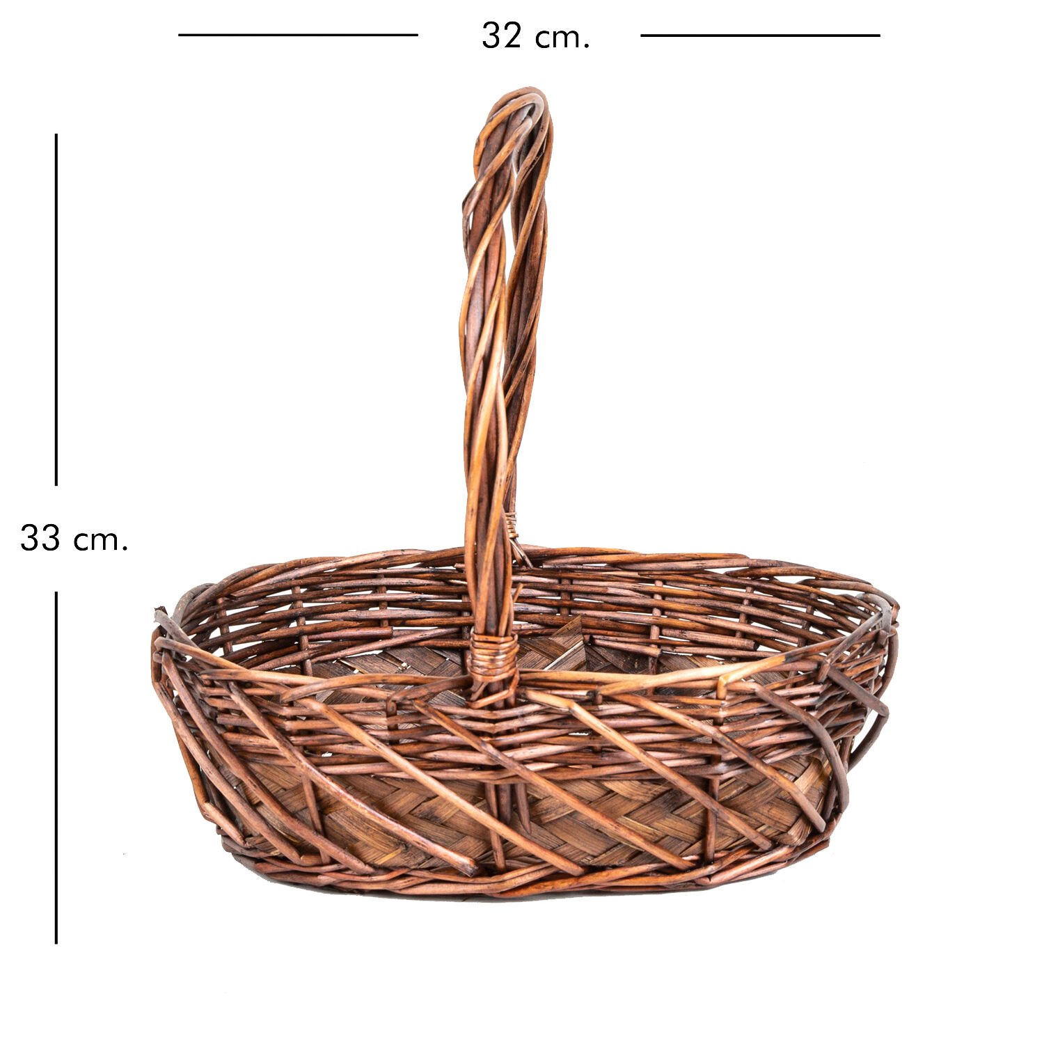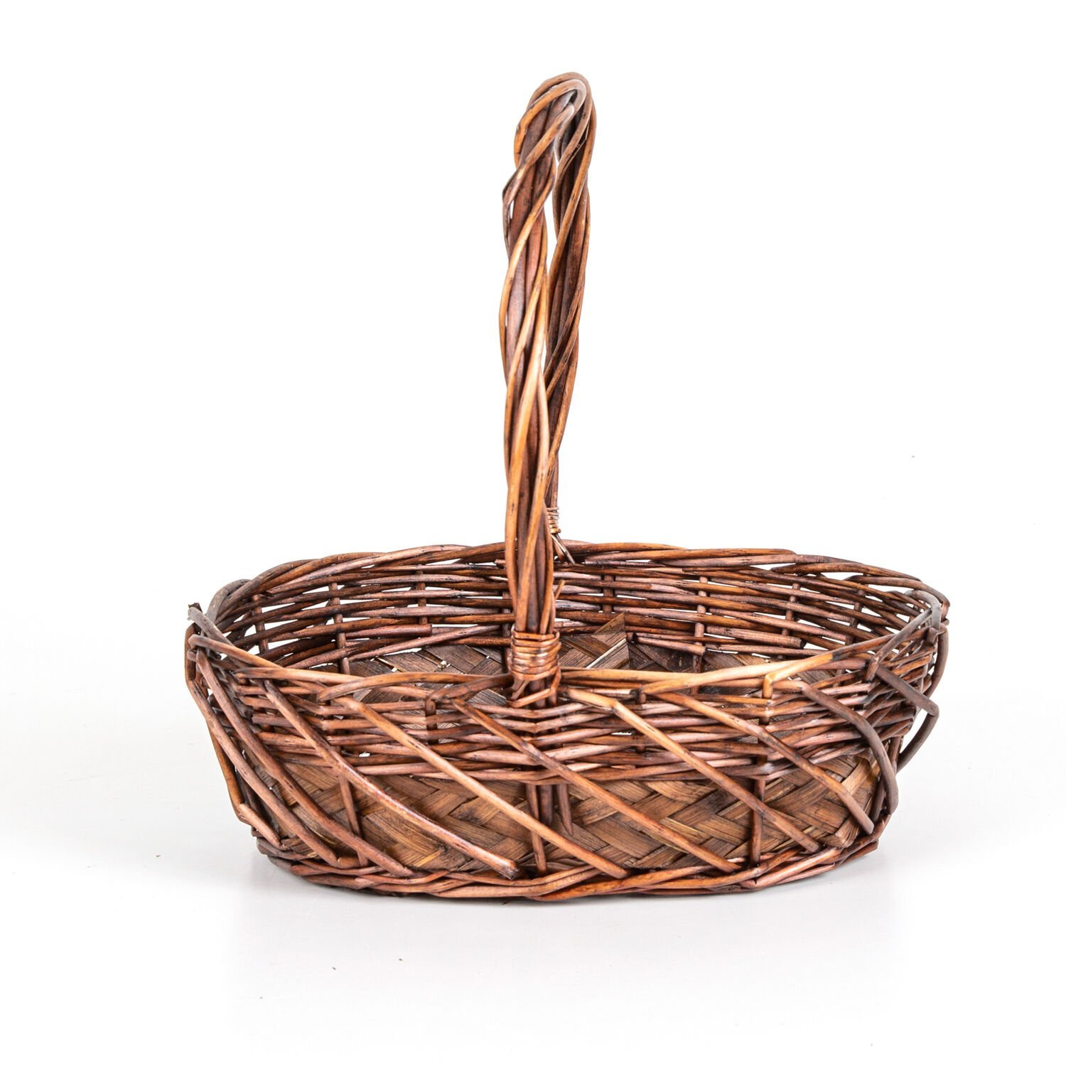 Oval Hasır Sepet Kulplu Hasır Kuşaklı El Örmesi Kahverengi 32 x 33 Cm.