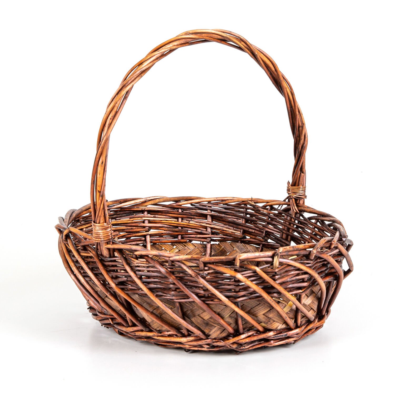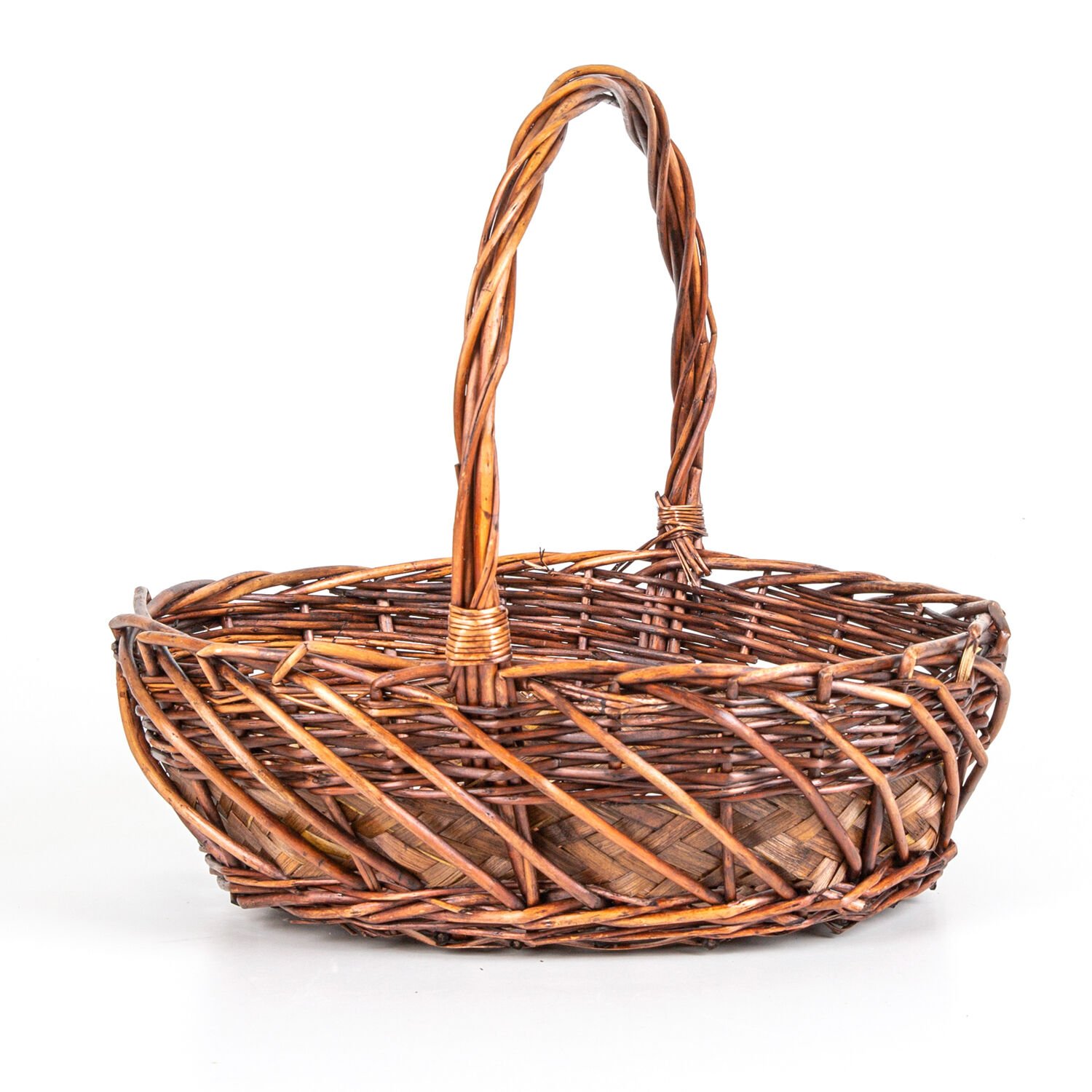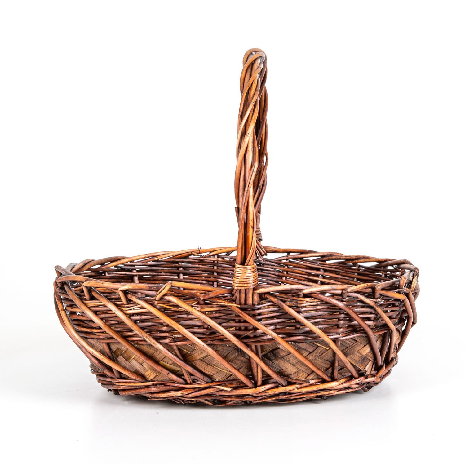Oval Hasır Sepet Kulplu Hasır Kuşaklı El Örmesi Kahverengi 40 x 36 Cm.