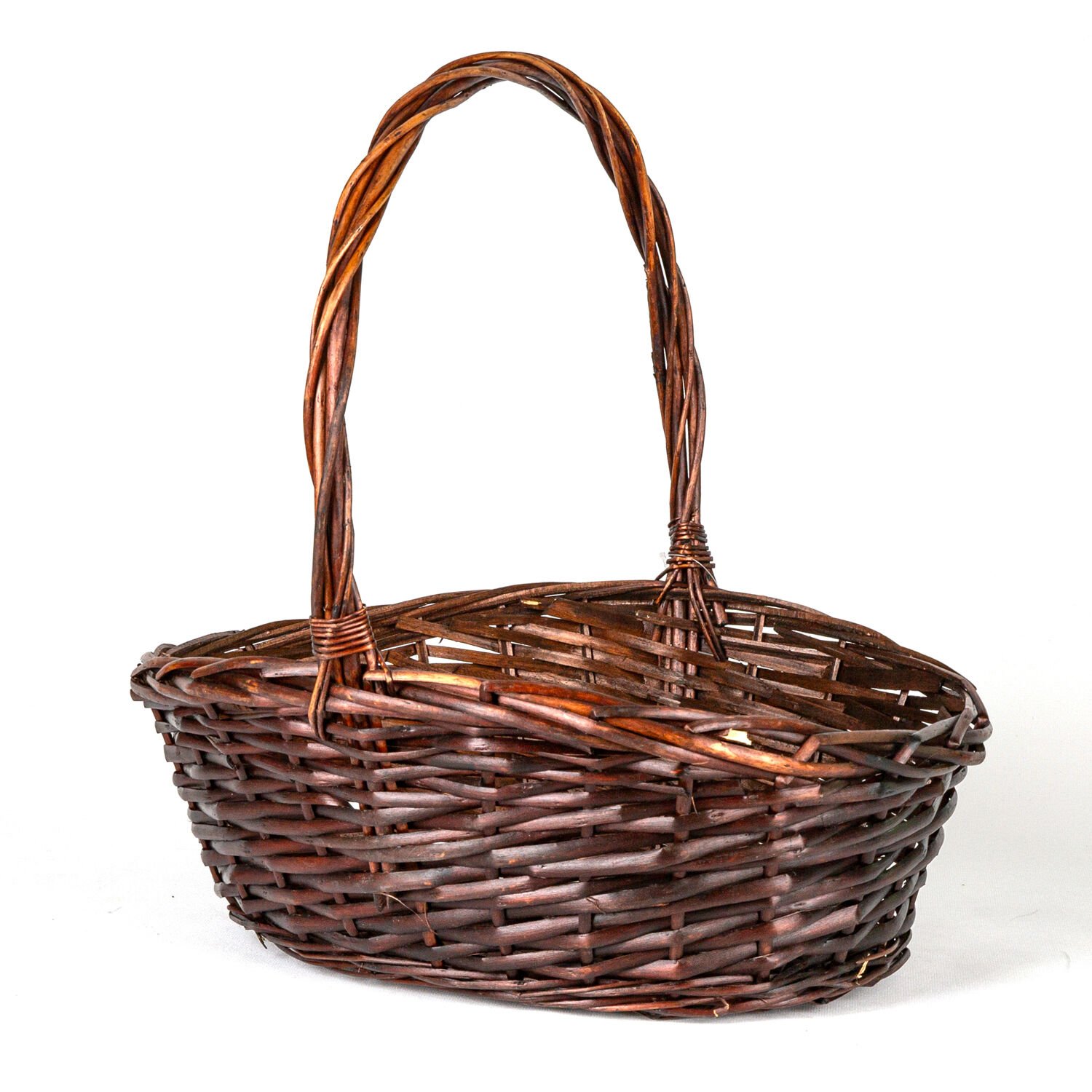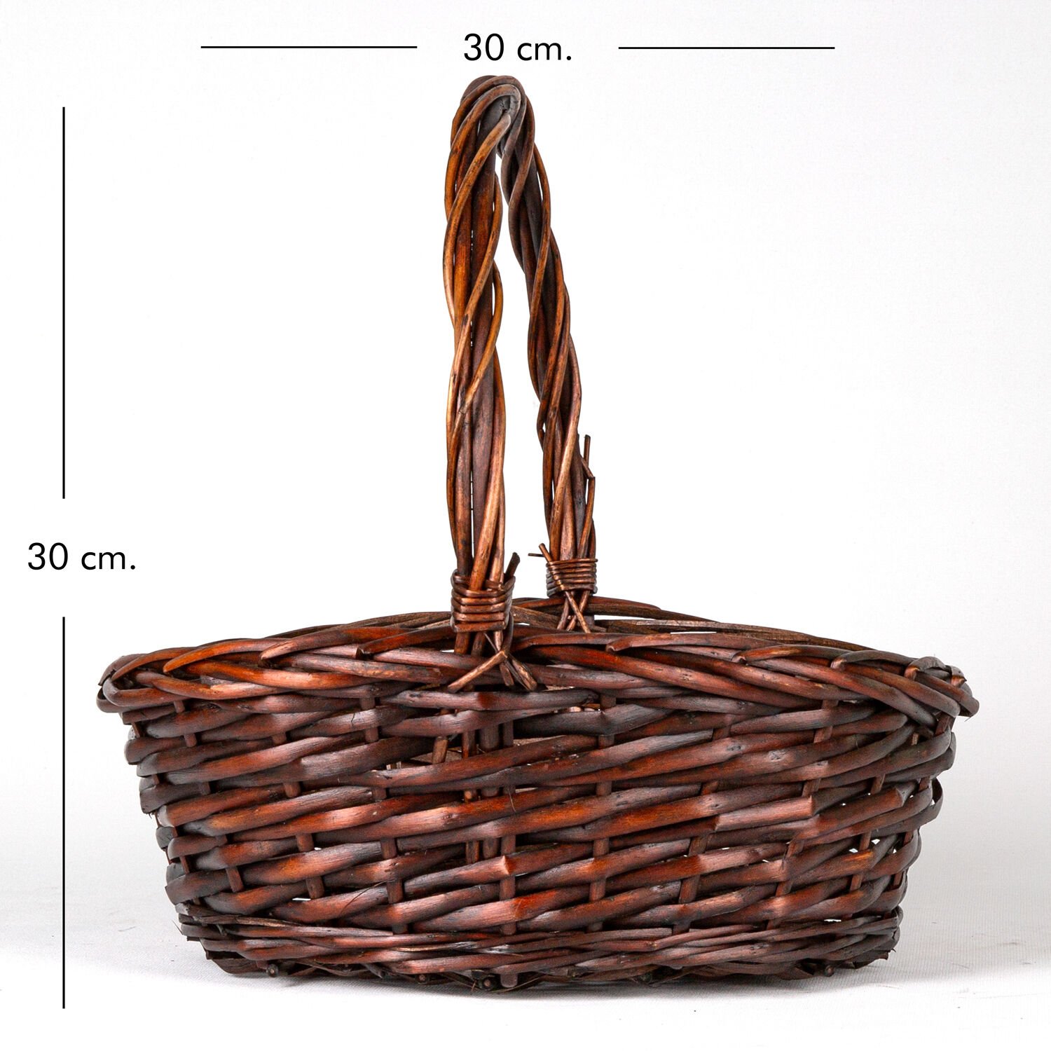 Oval Hasır Sepet Kulplu Kahverengi 30x30x25 Cm..